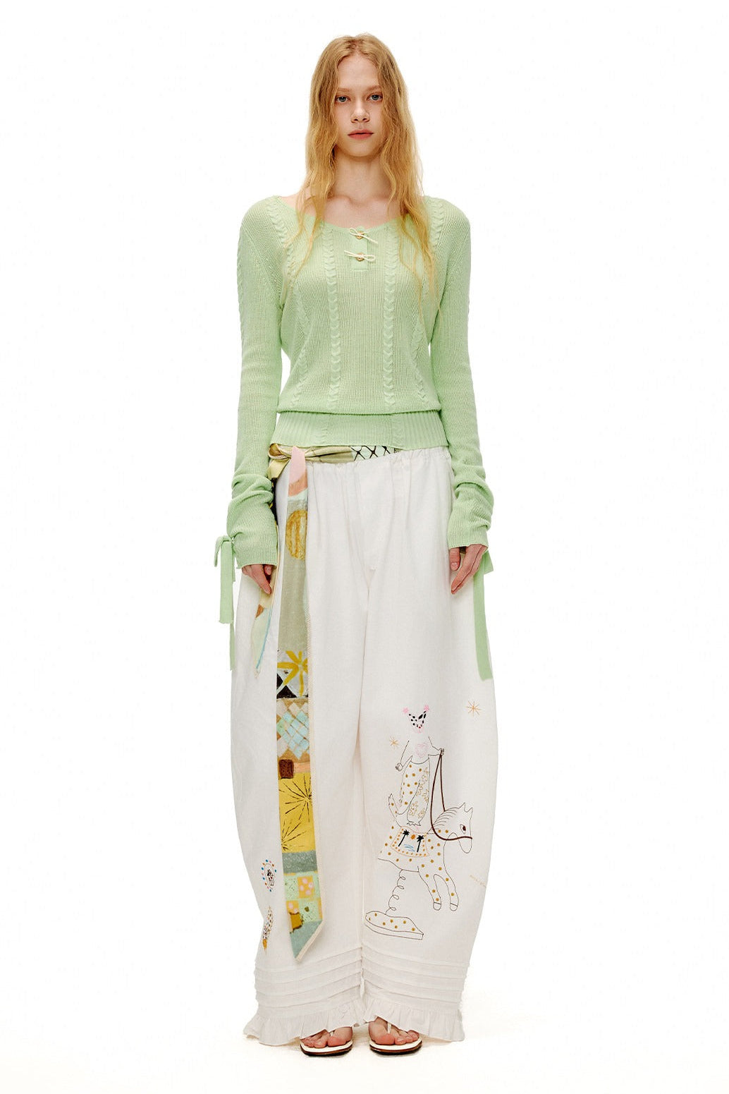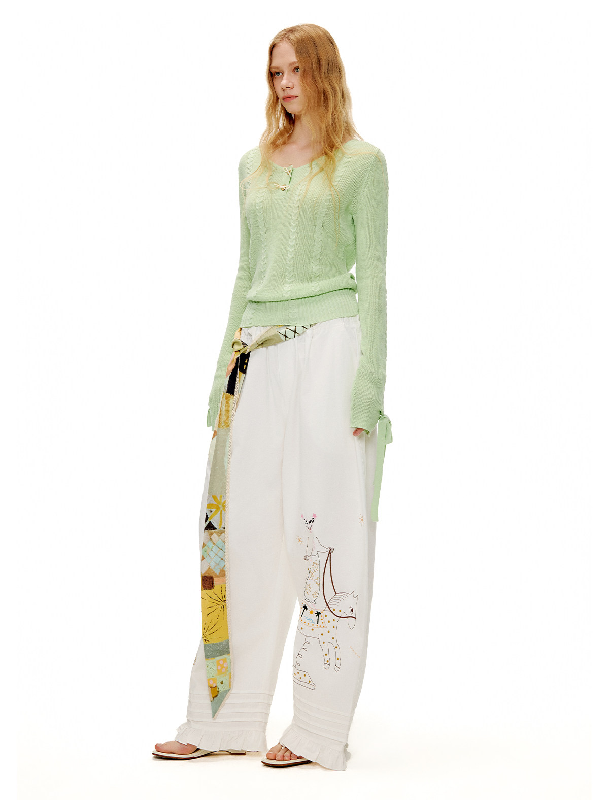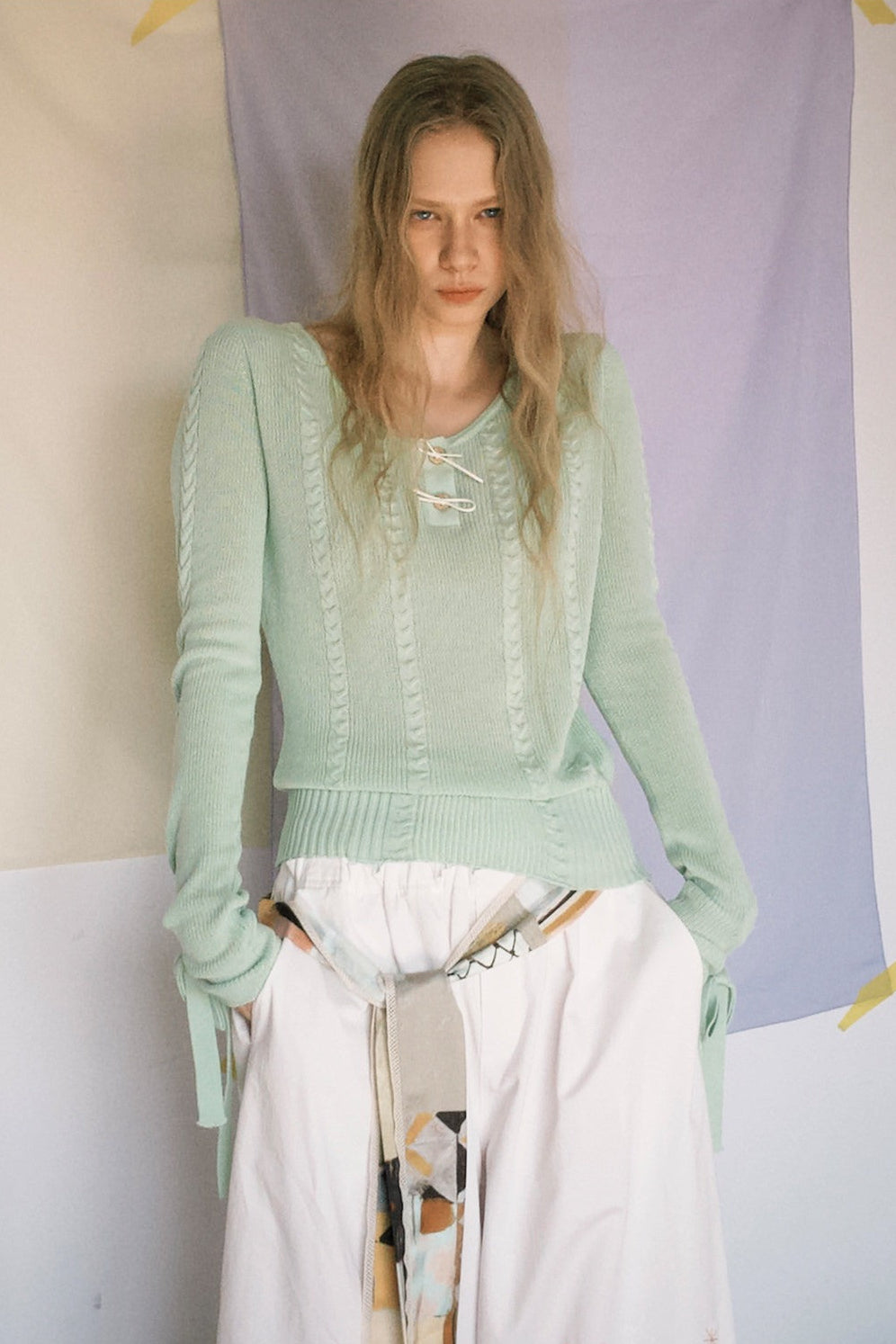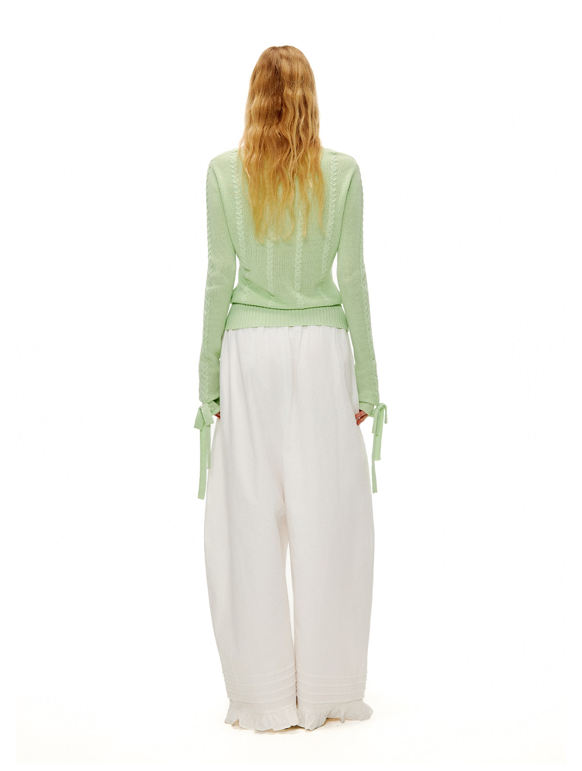 アップルグリーンケーブルニットセーター B4601
