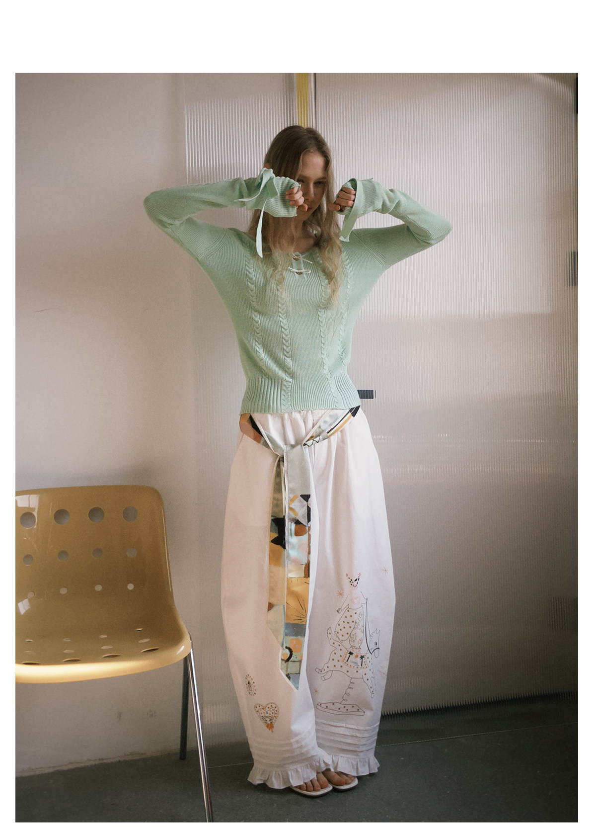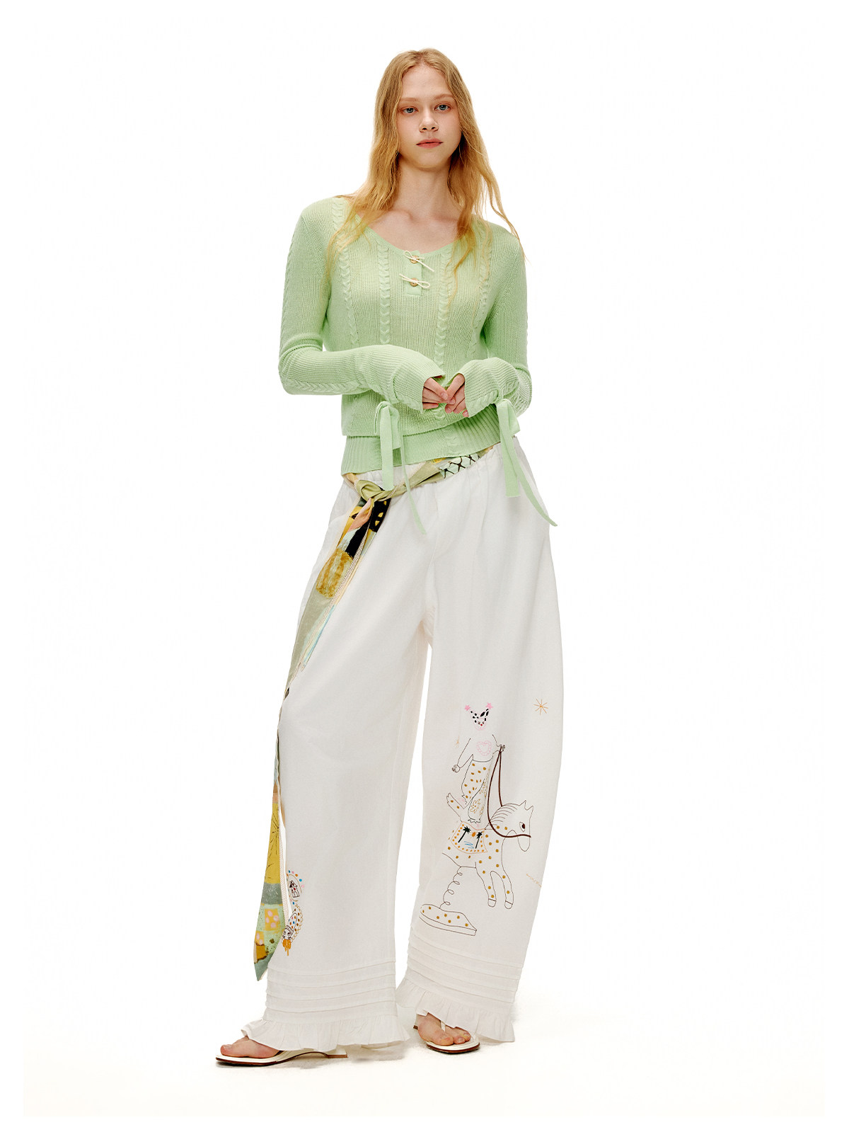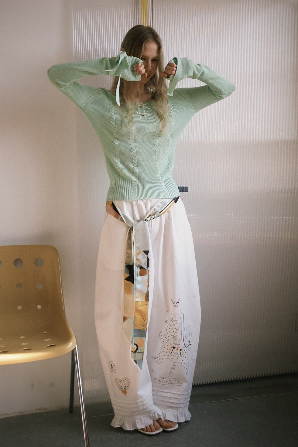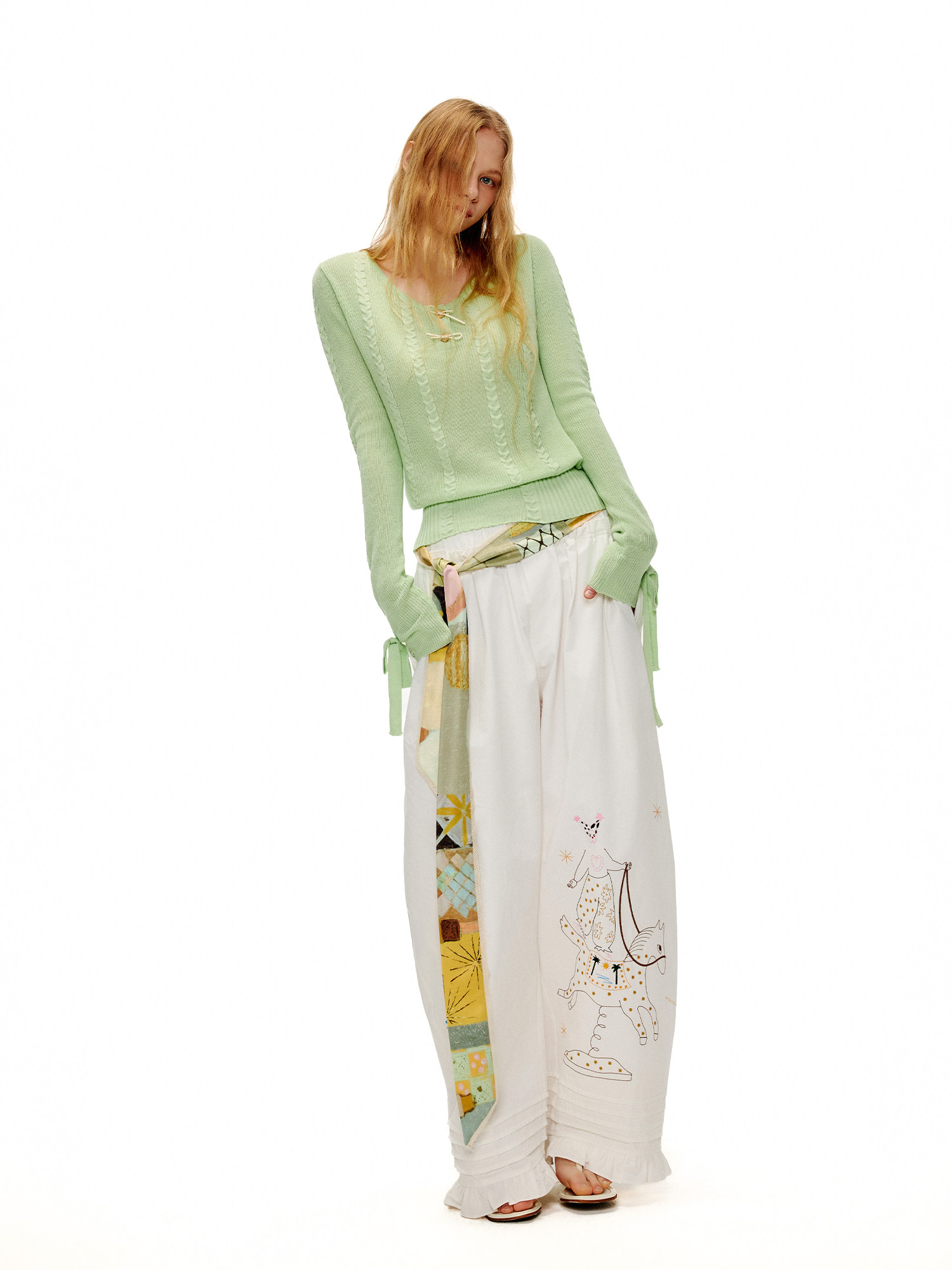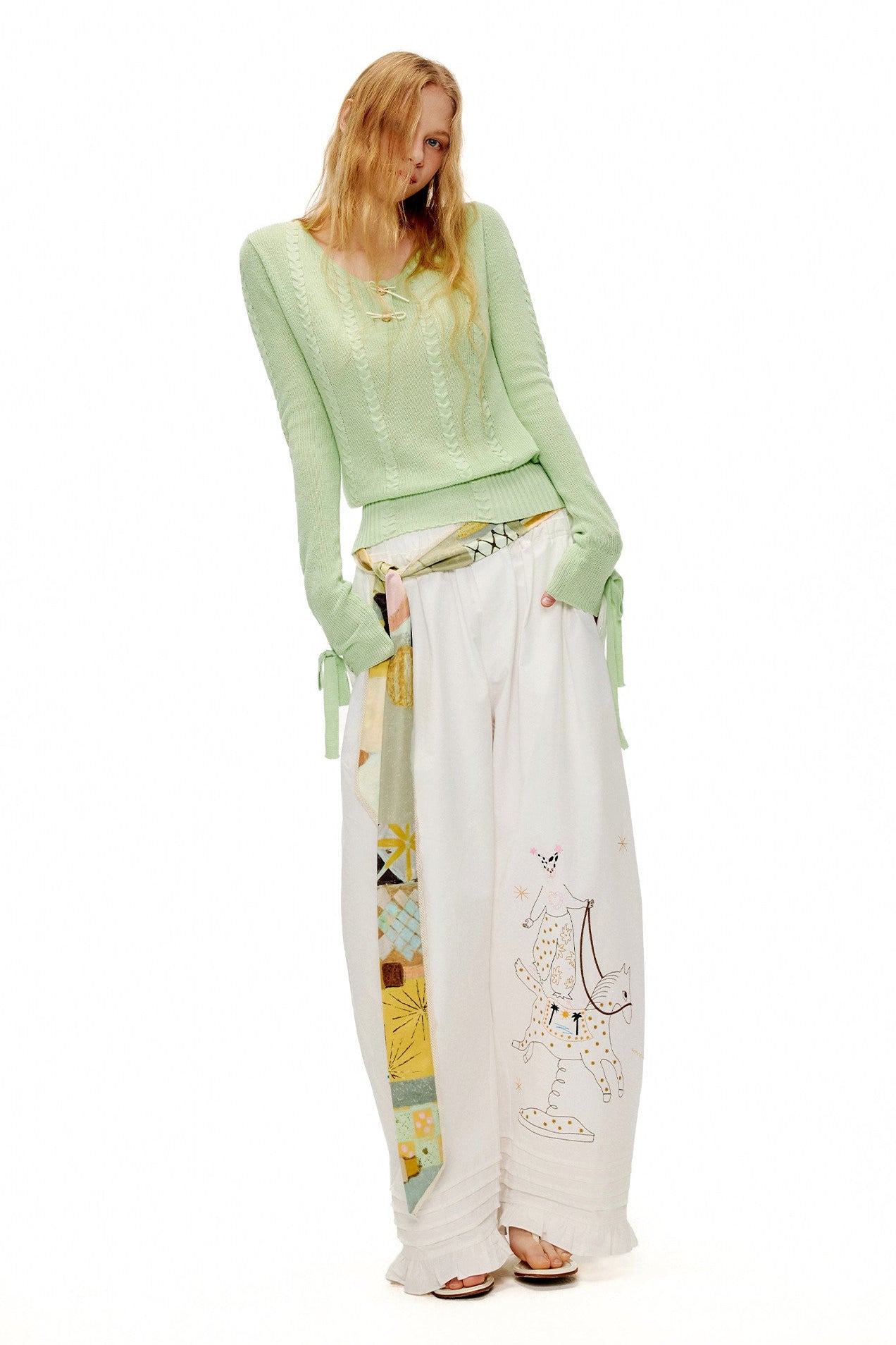 アップルグリーンケーブルニットセーター B4601