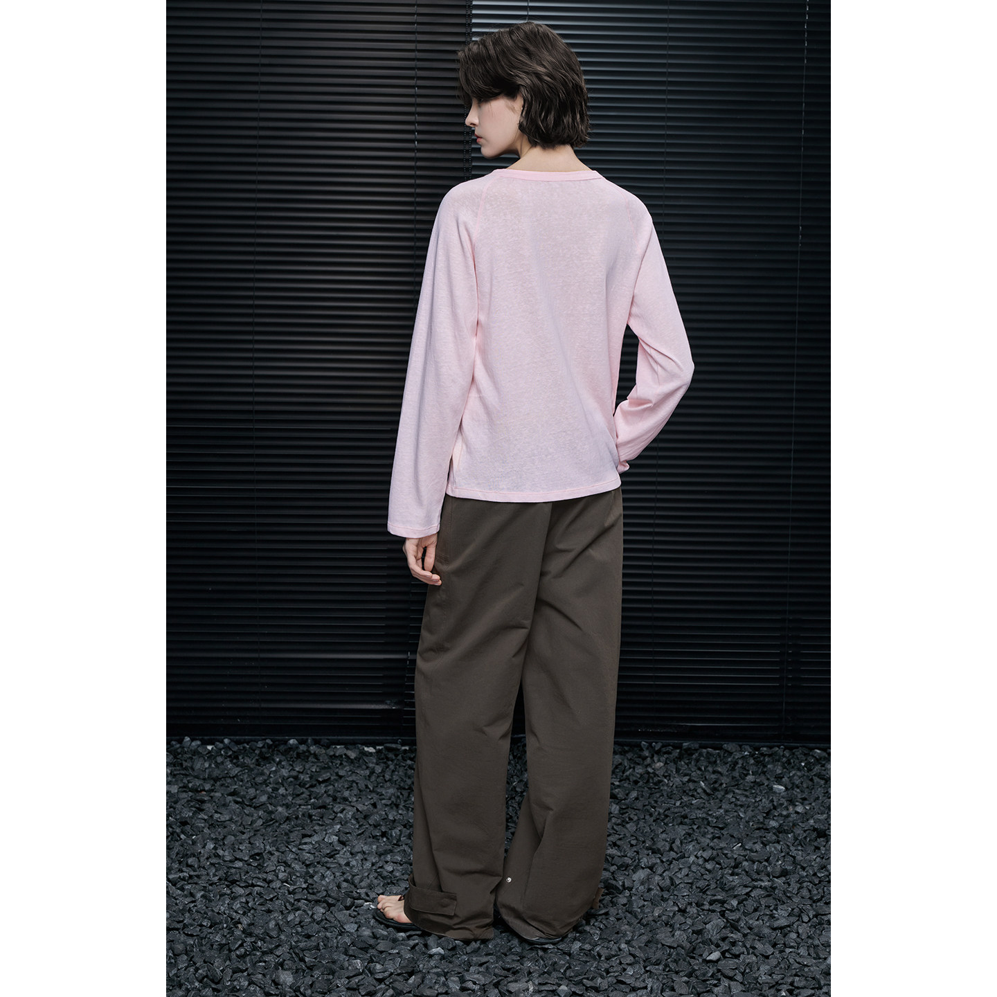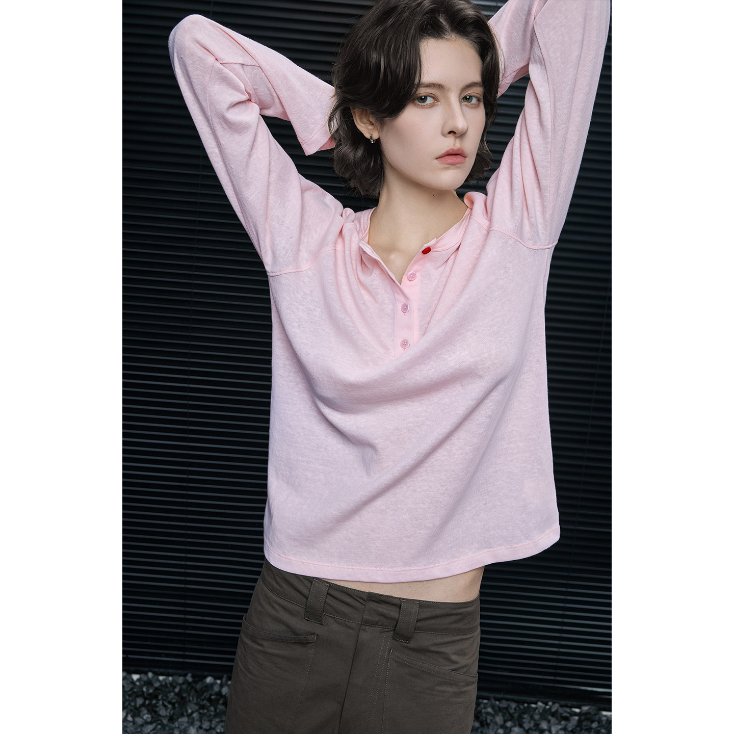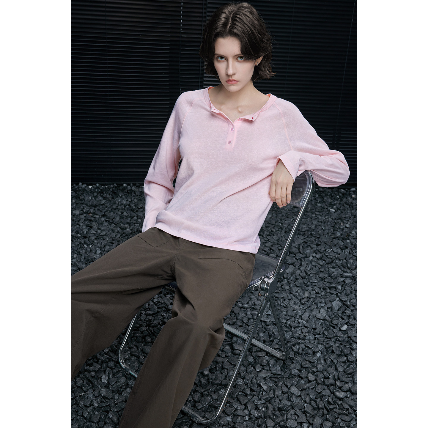 カラーブロックボタンラグランスリーブTシャツ B4624
