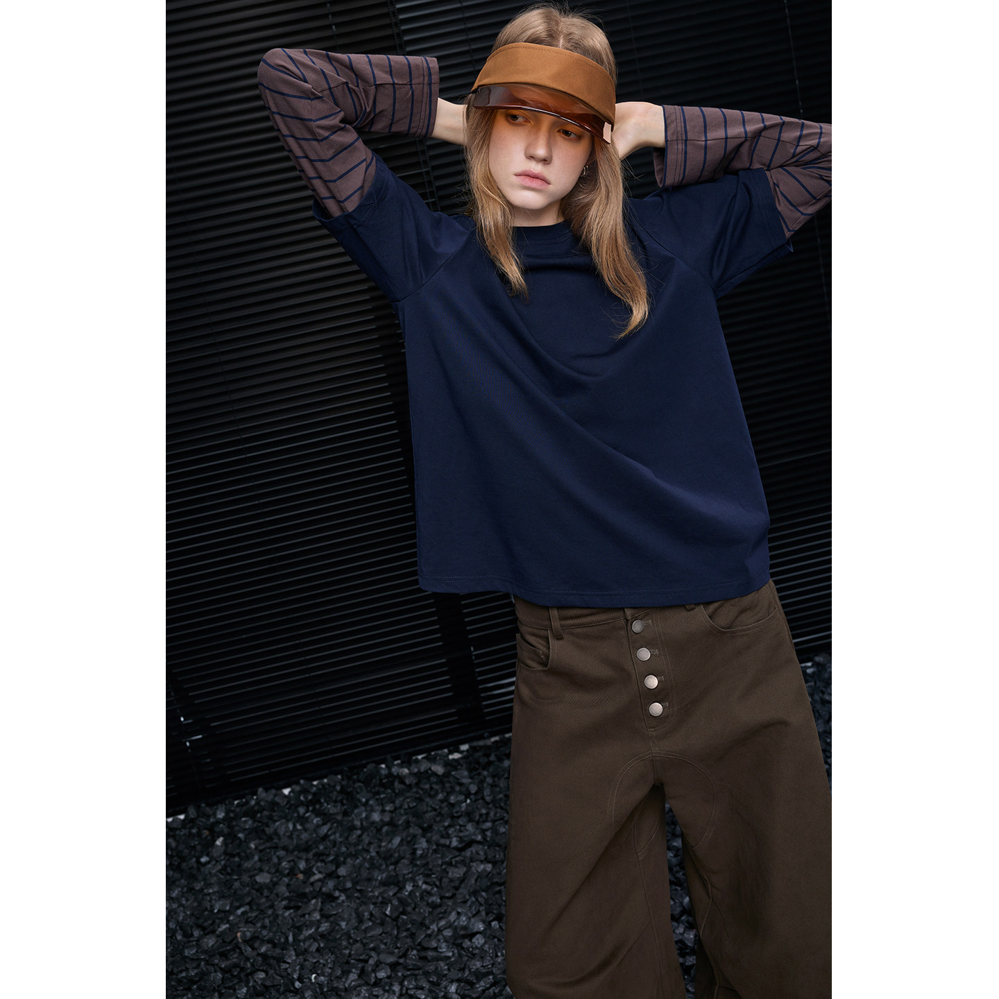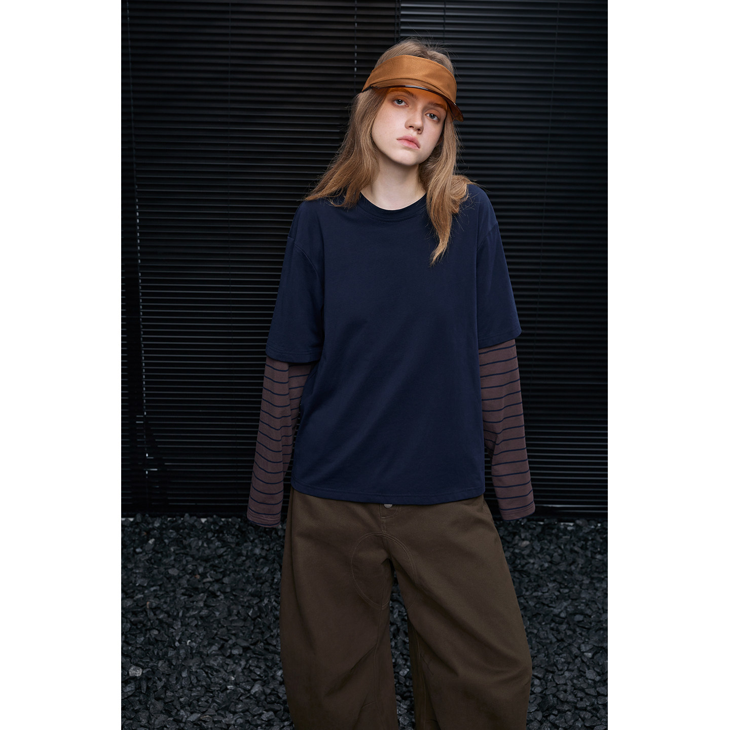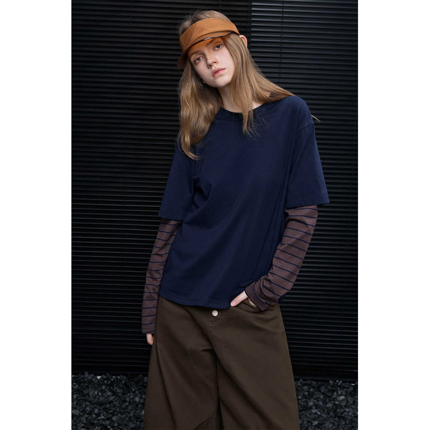 フェイクツーピースカラーブロックストライプTシャツ B4625