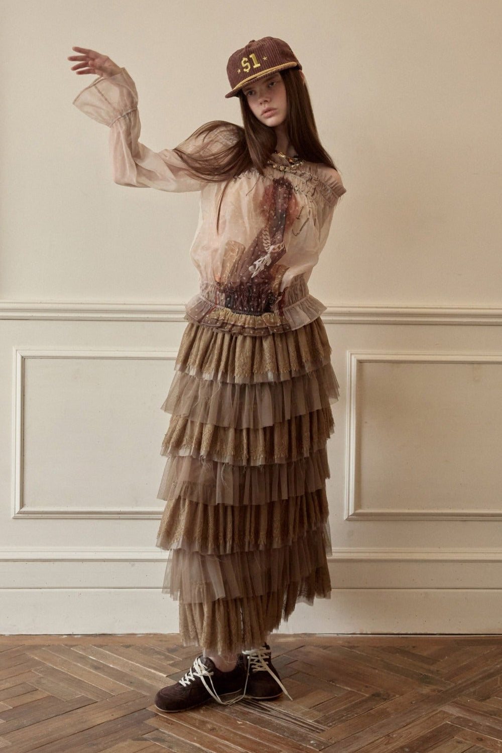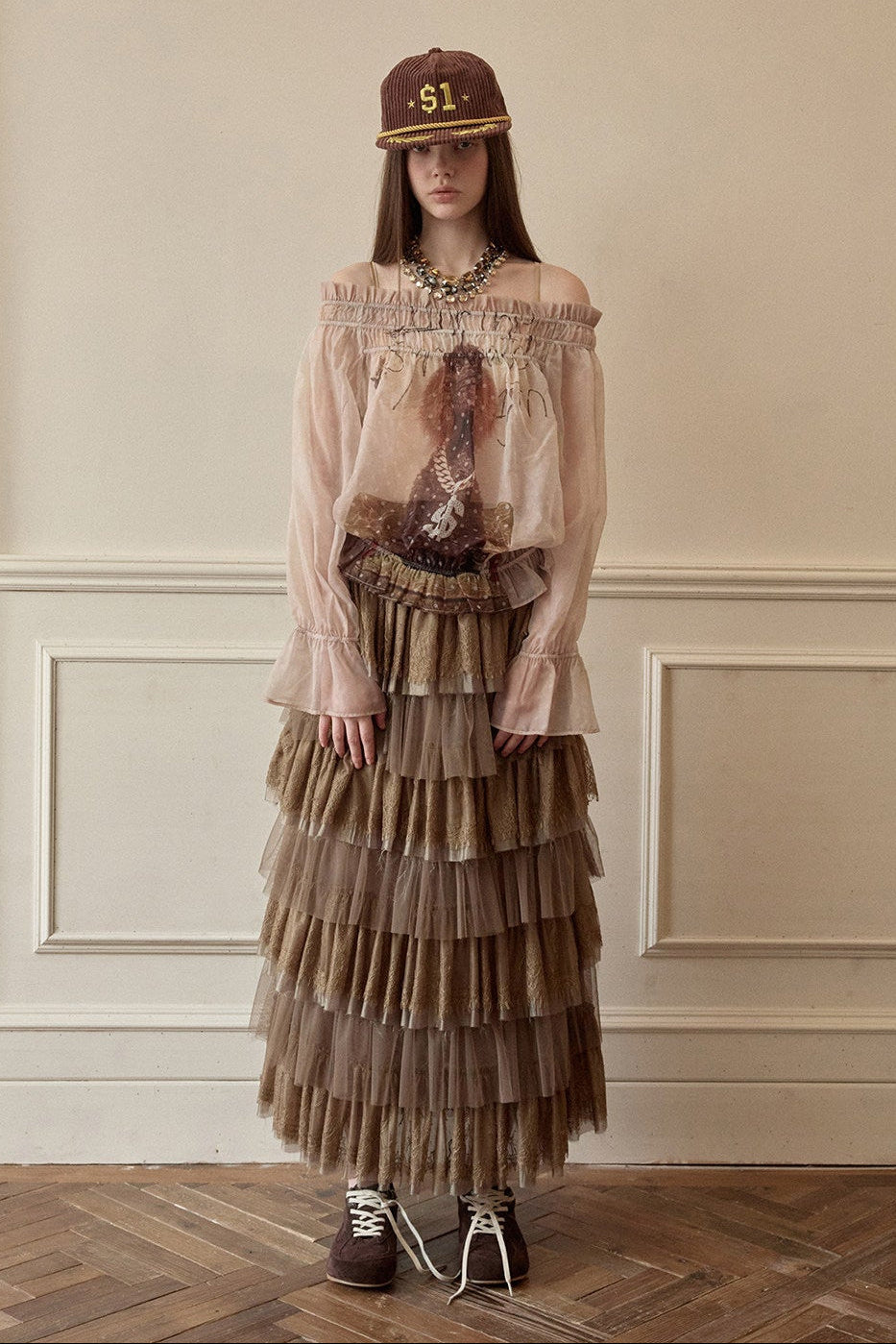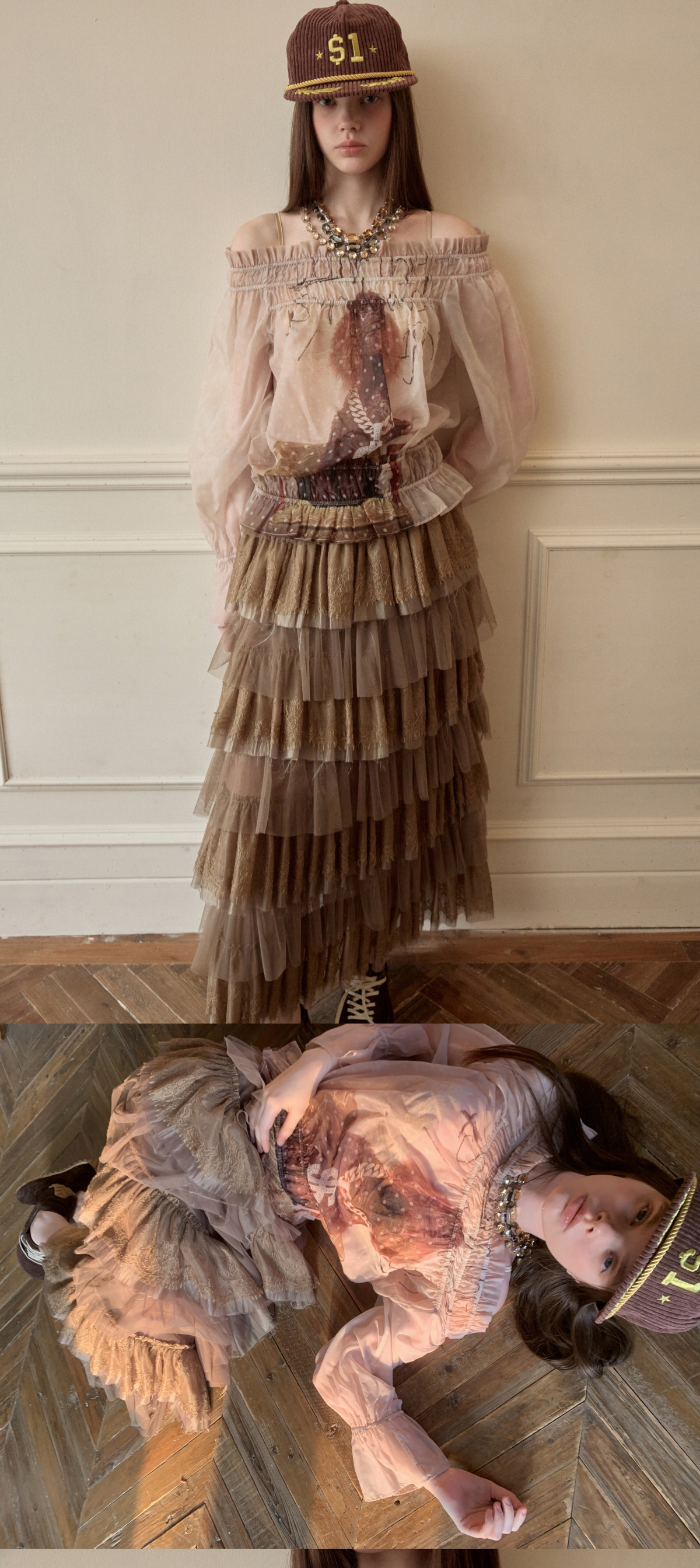 ネックラインと裾には、ナチュラルなフリルとレースのディティールをあしらい