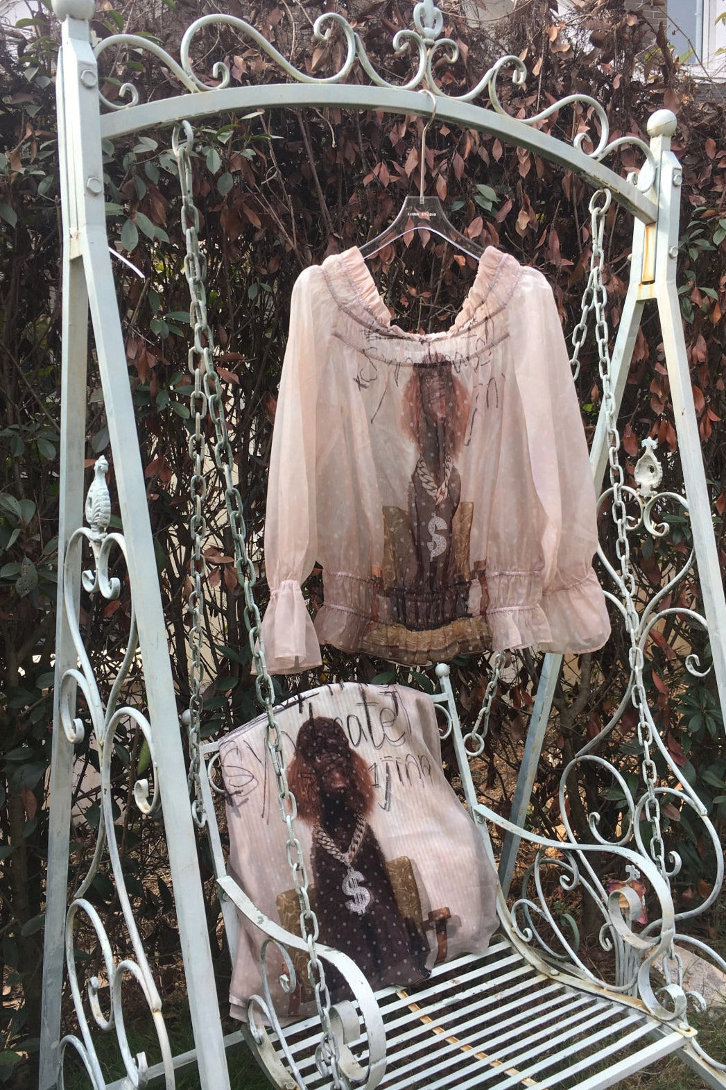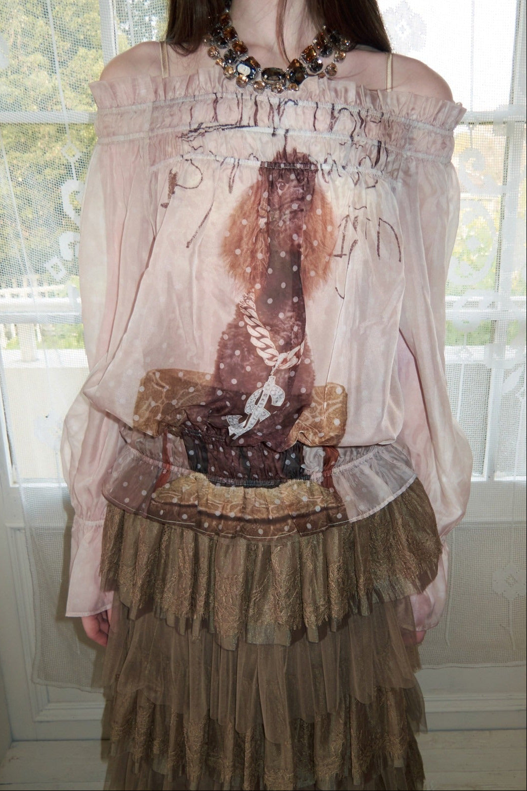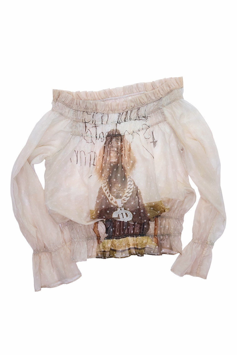 ドッグラブワンショルダーシフォンプリントトップス B4643