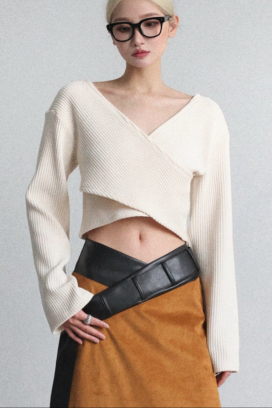 ピットストライプX長袖プルオーバーニットトップス B4651
