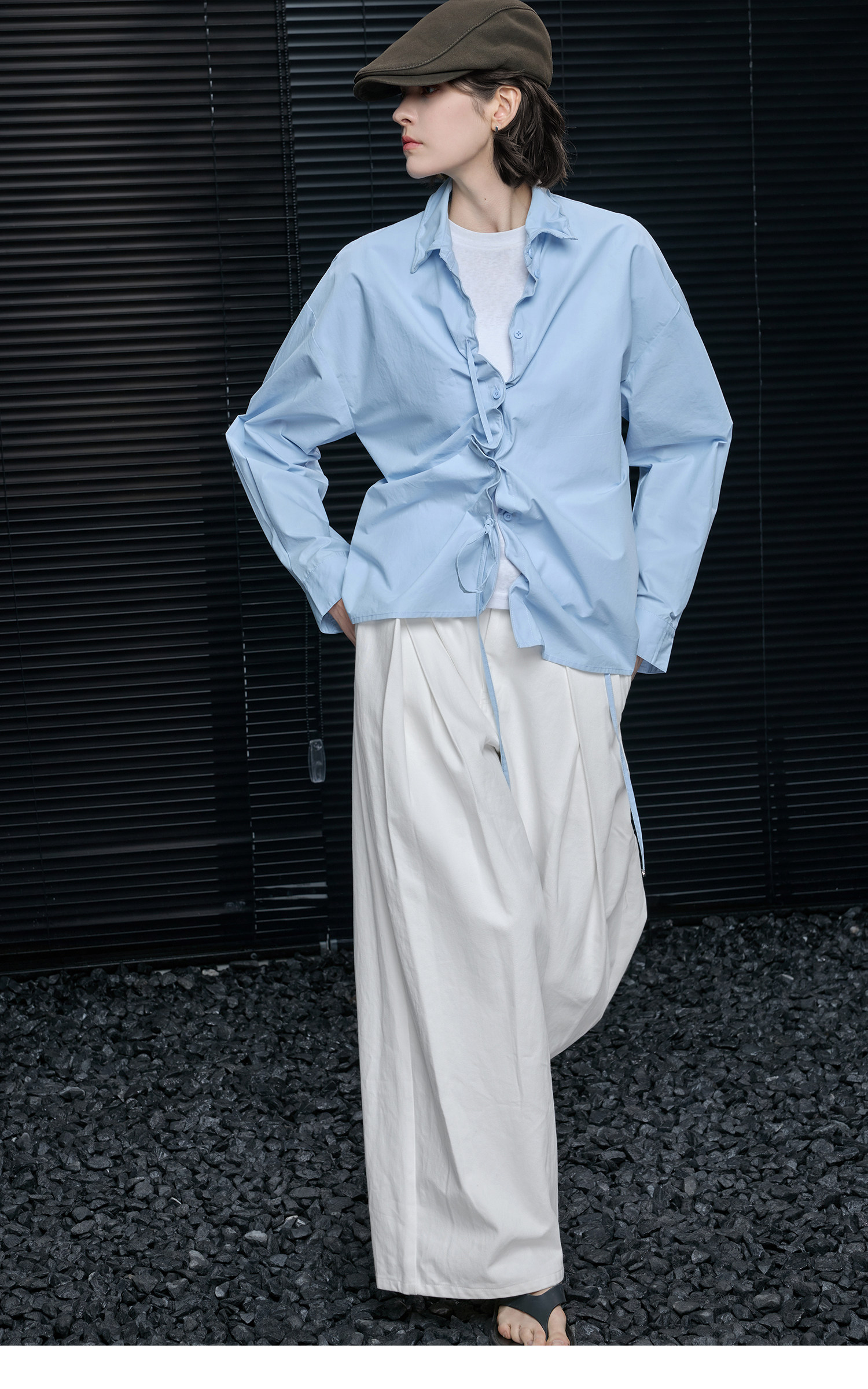 スカイブルーフレキシブルギャザーシャツ B4667