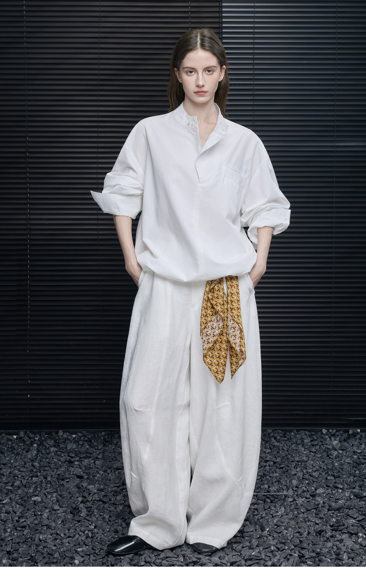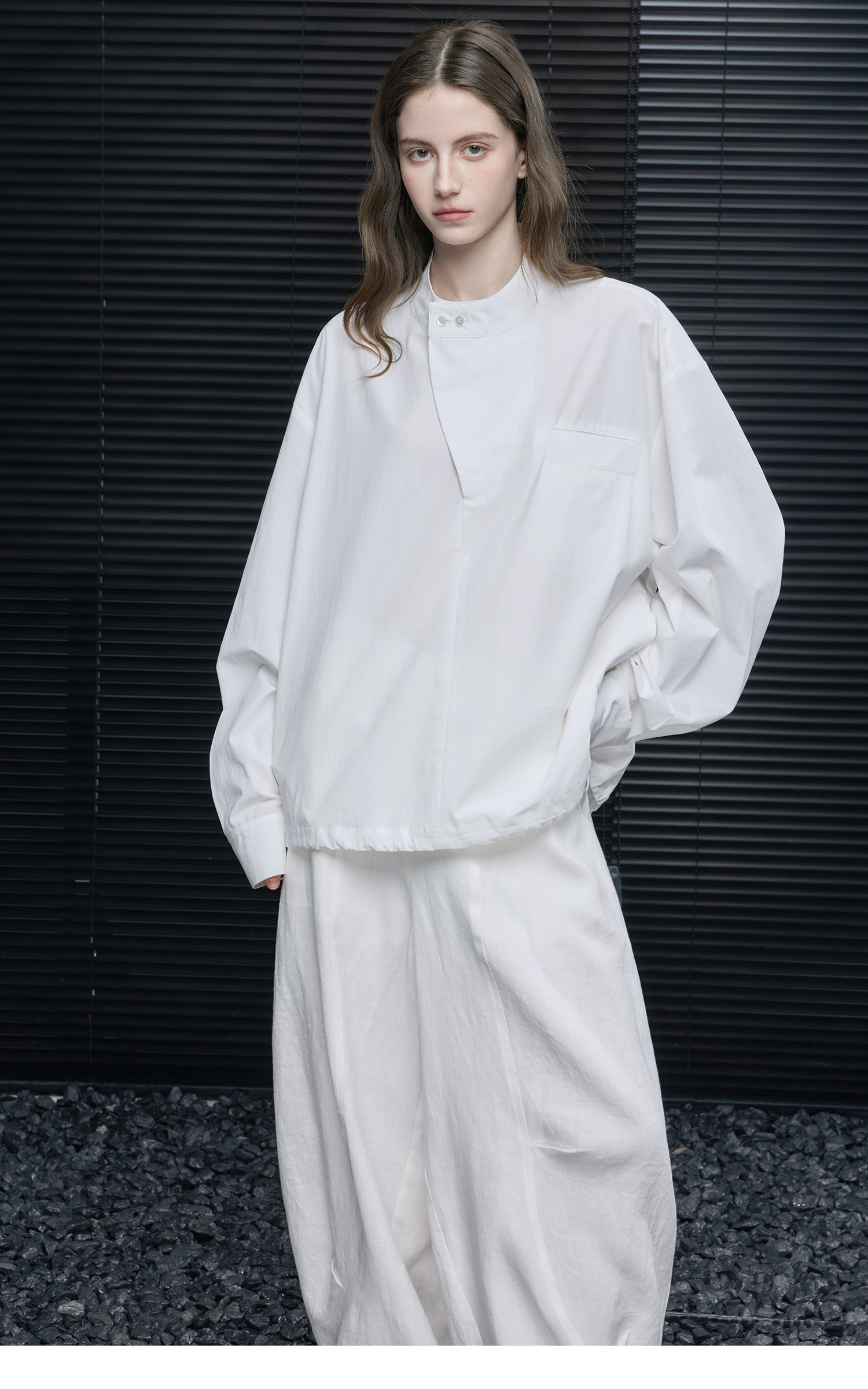 ホワイトスタンドカラープルオーバーシャツ B4669