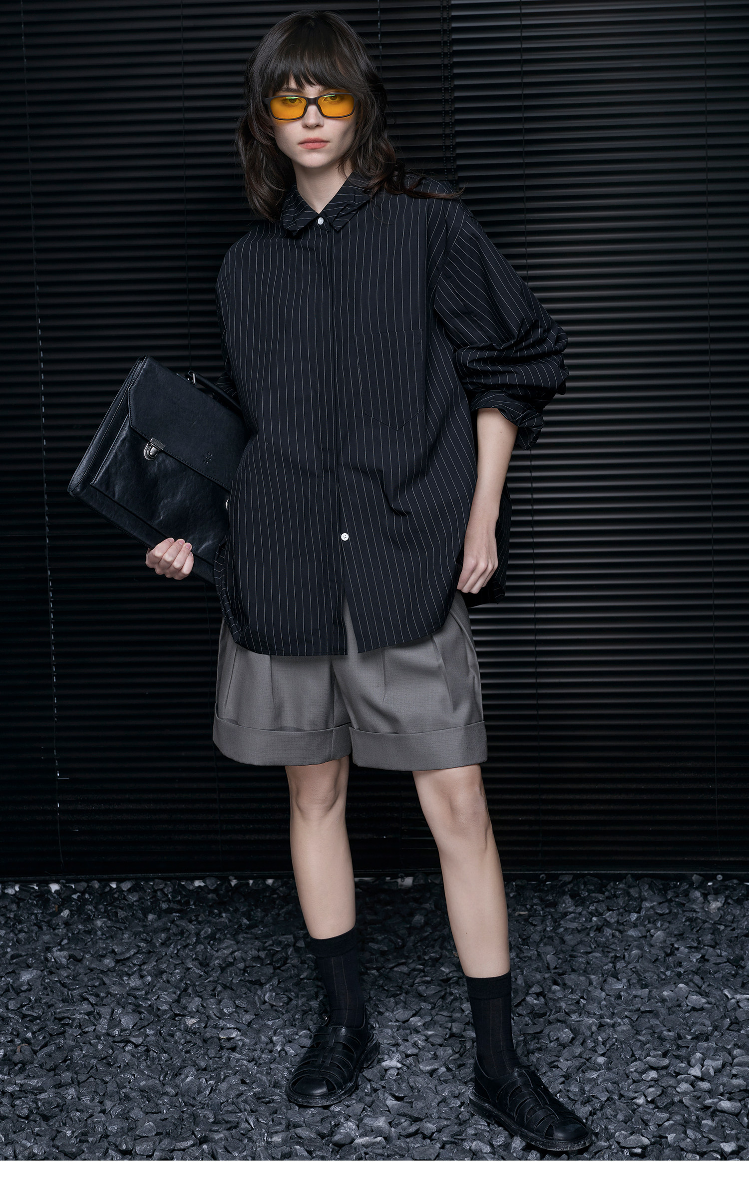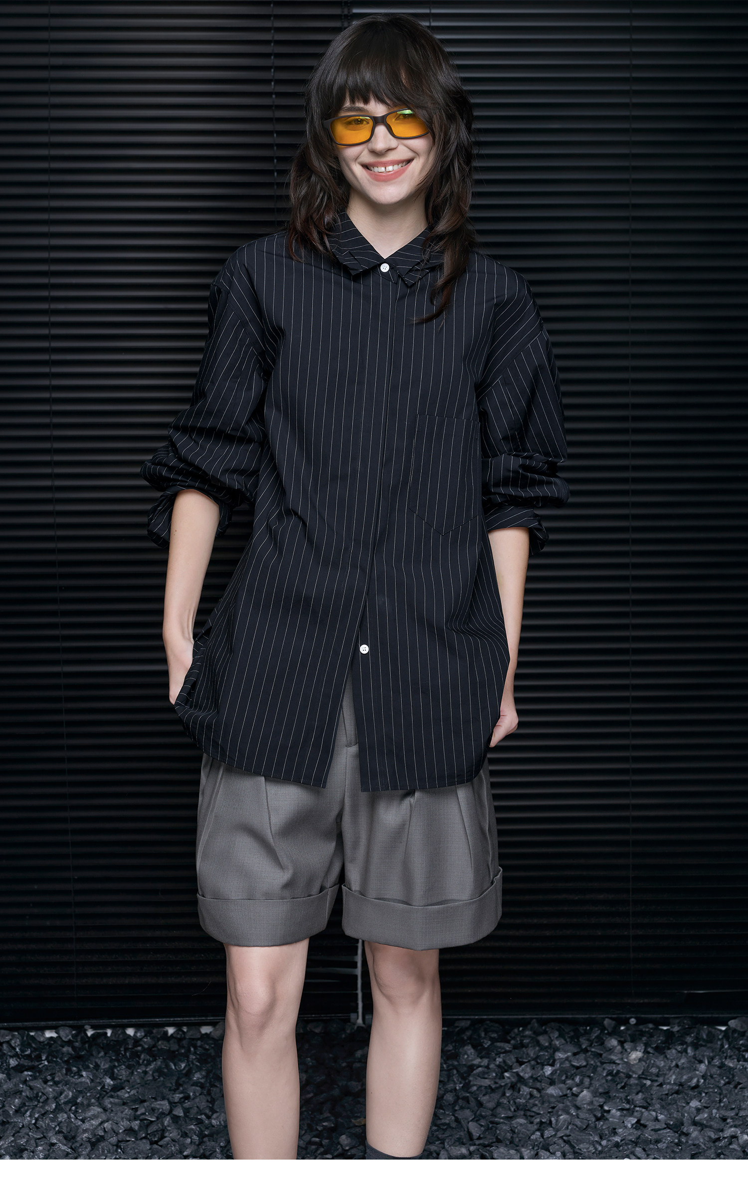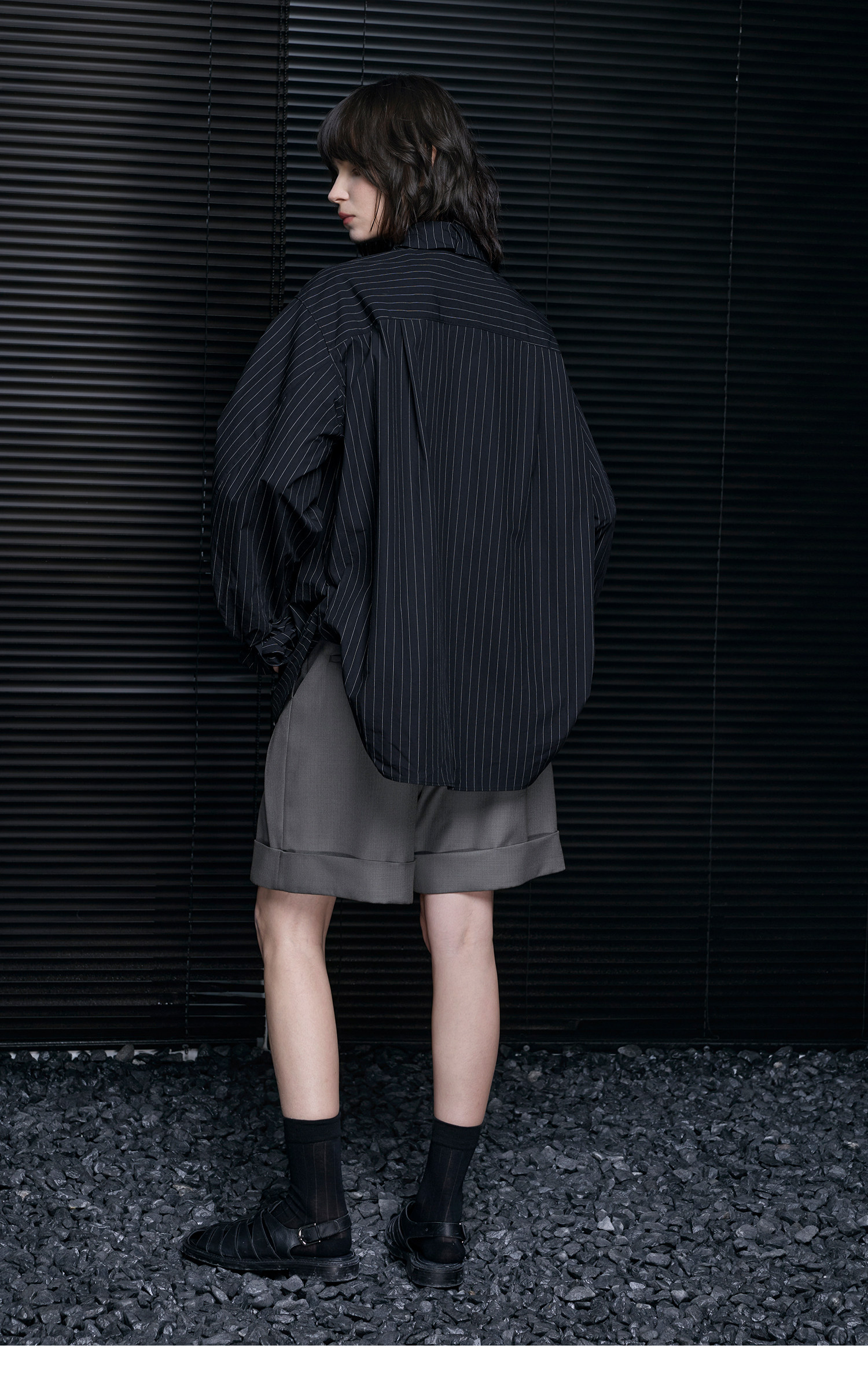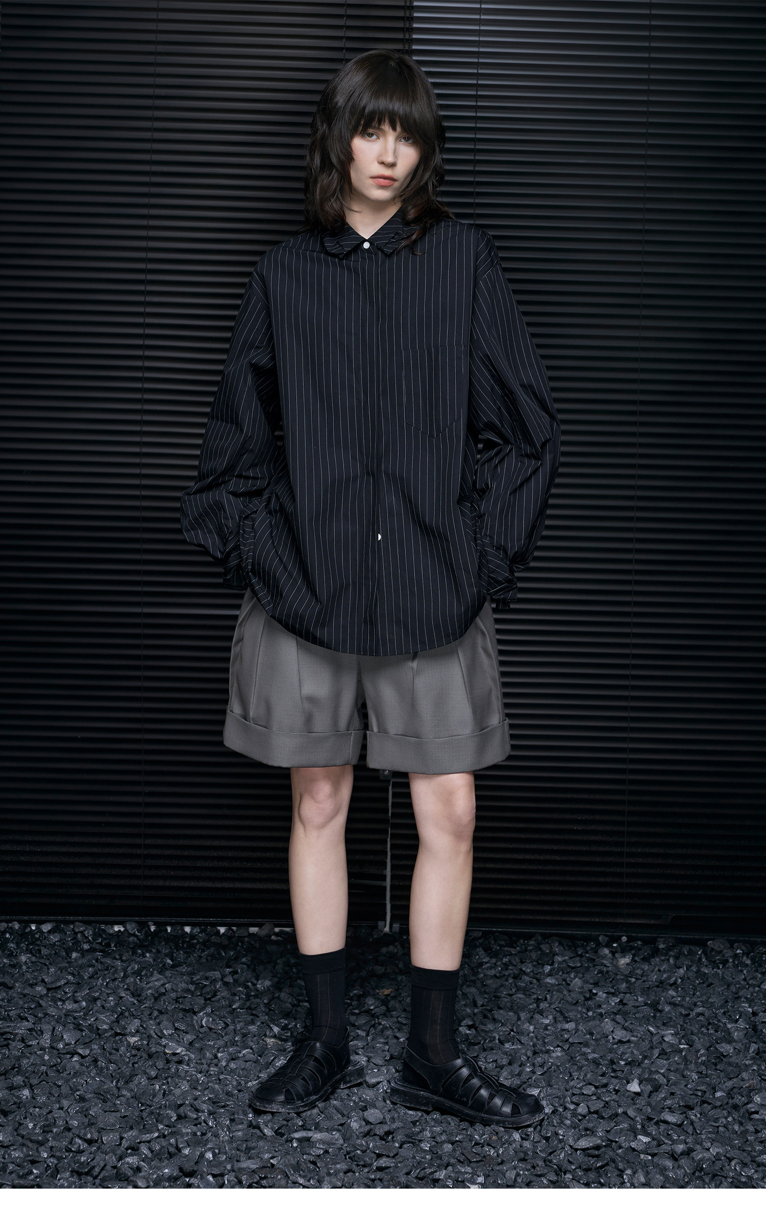ゆったりとした袖と結び目のカフスがレイヤード感とカジュアルさを演出