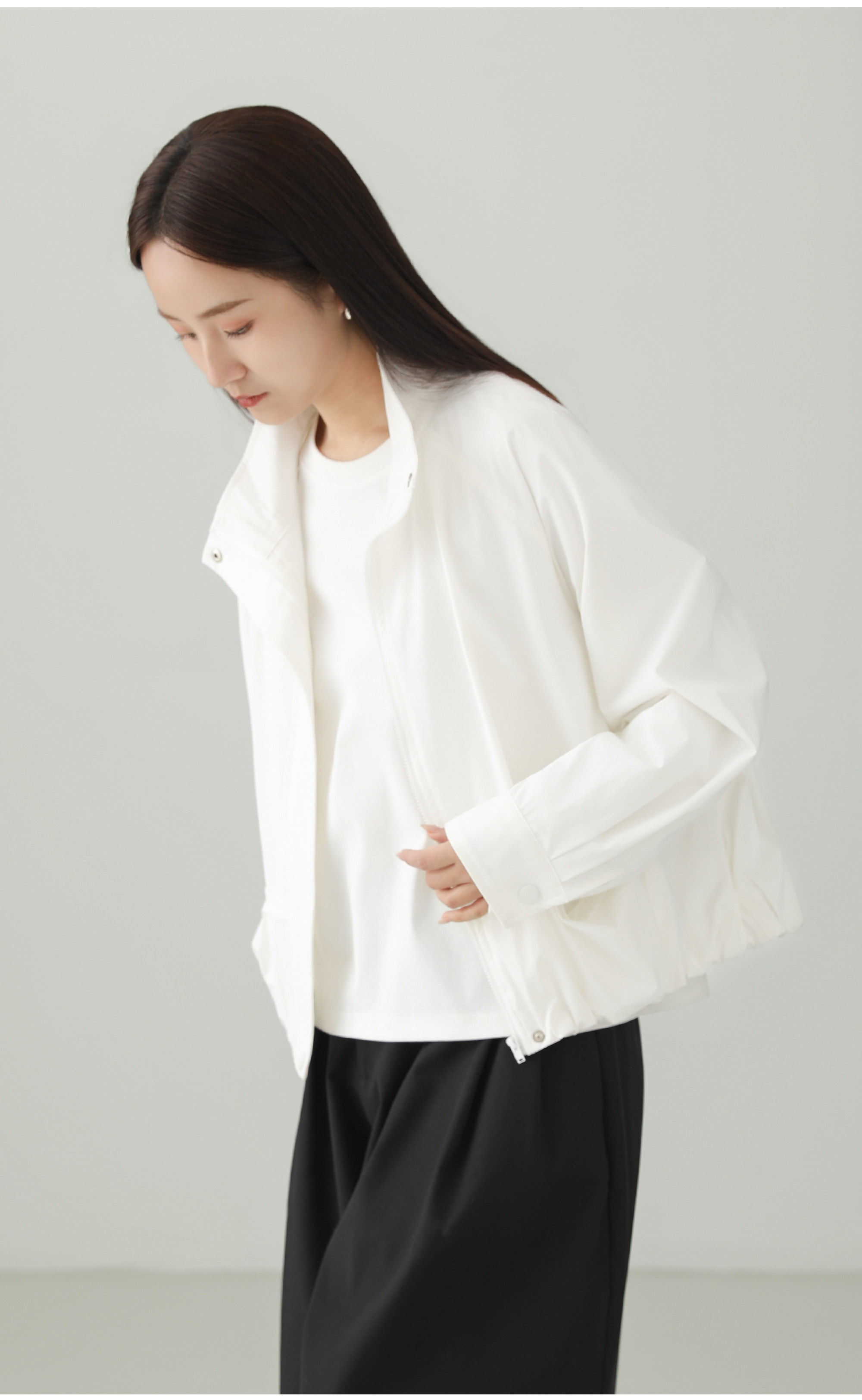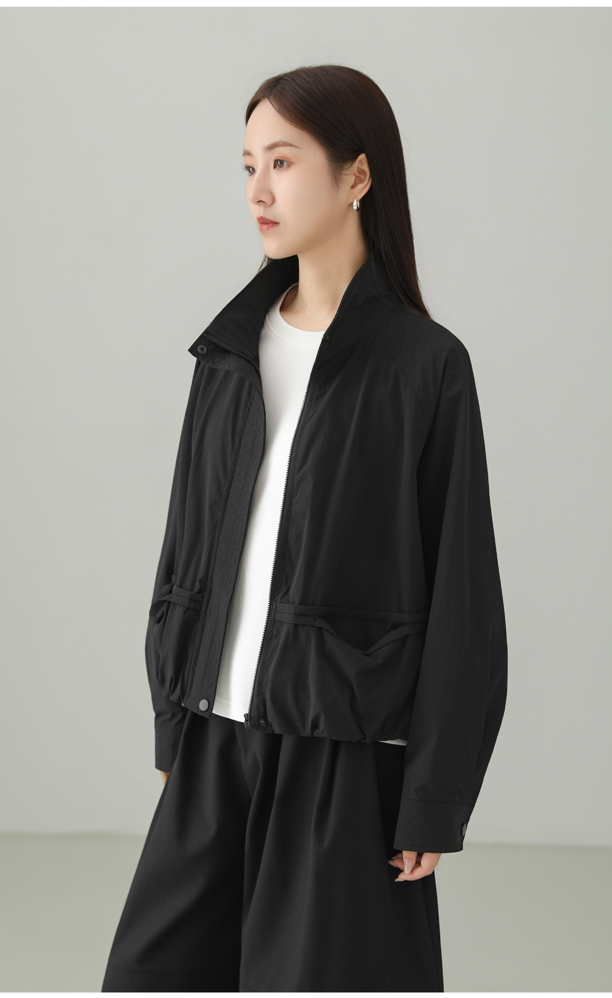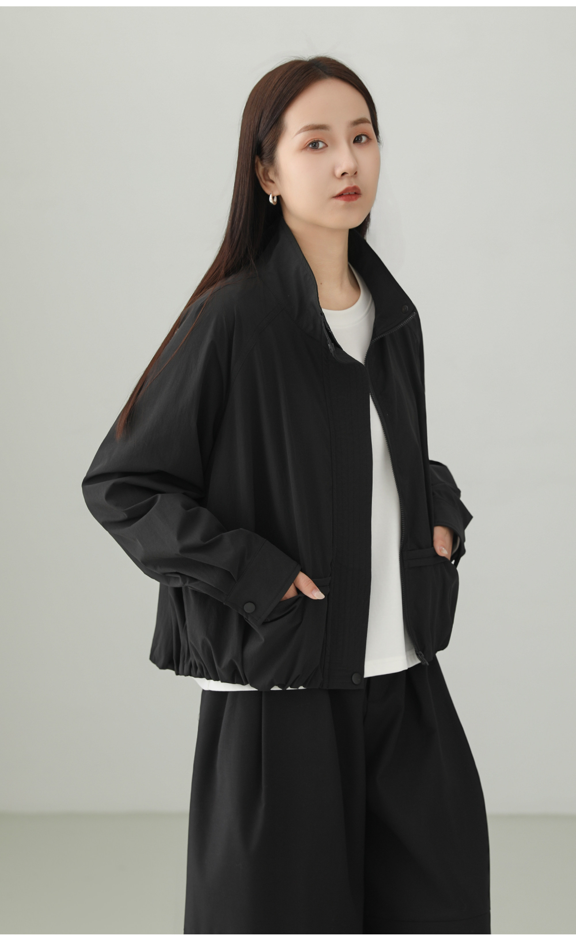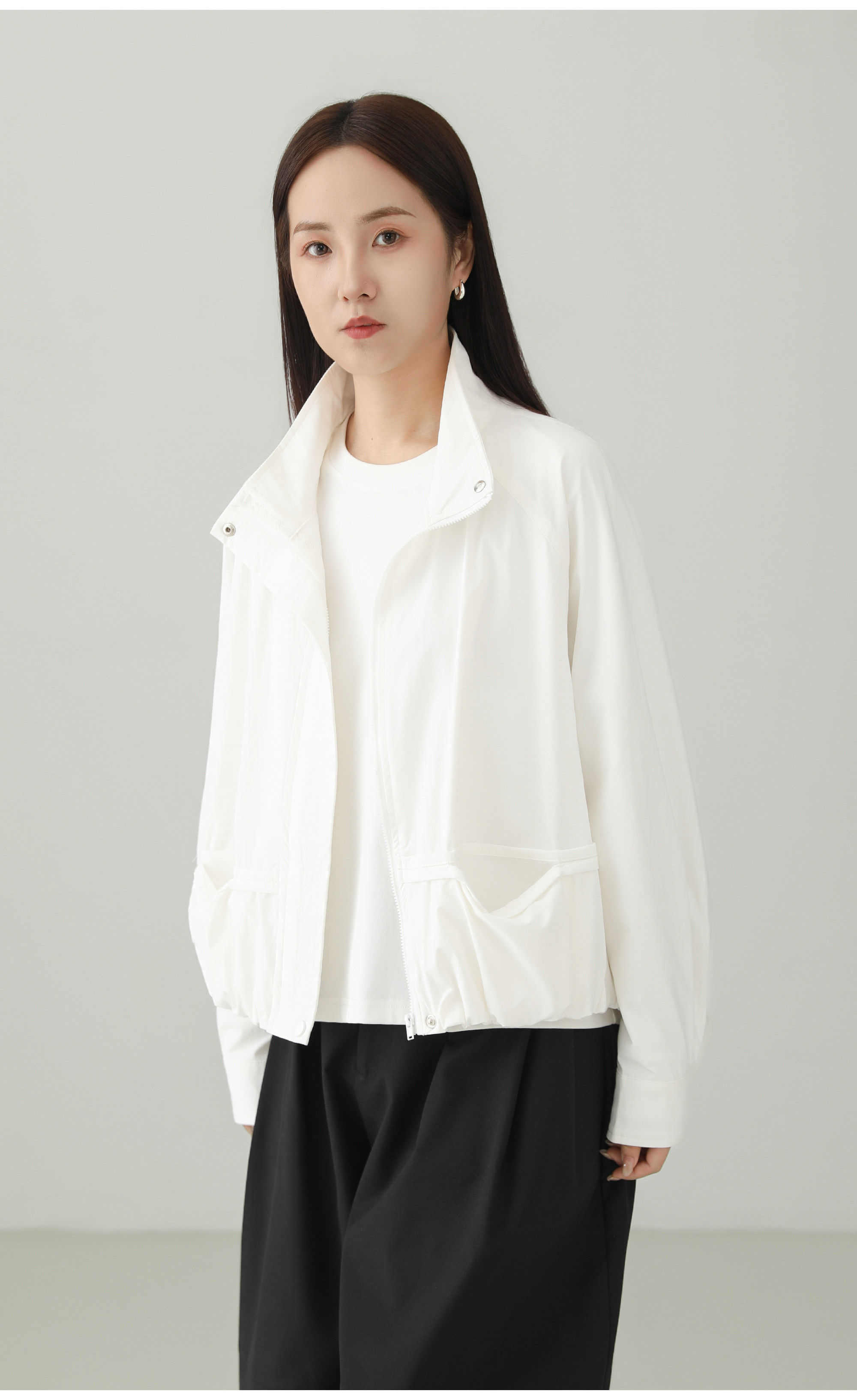 スタンドカラーでファスナーをオープンにしても閉めて着用してスタイリッシュ