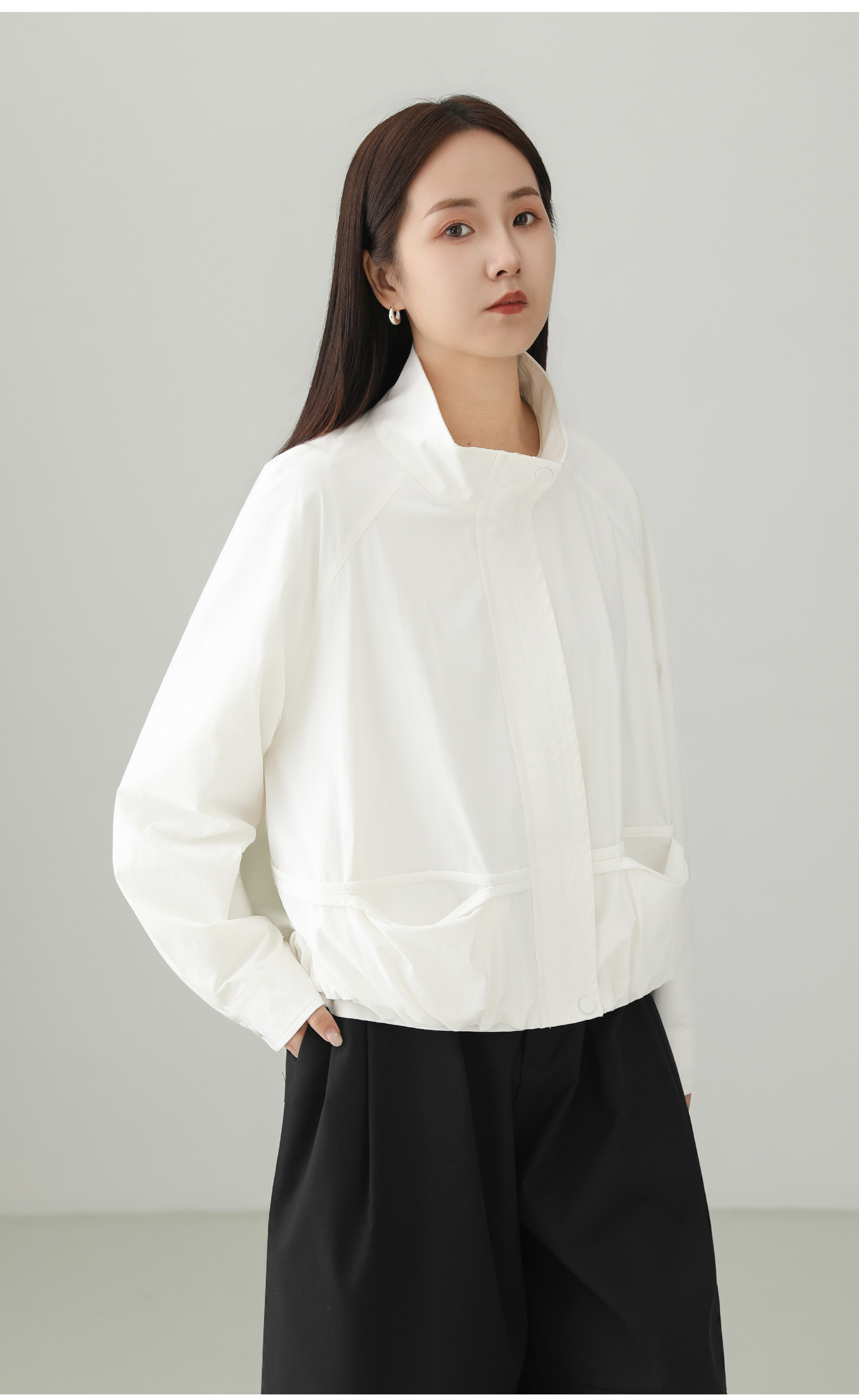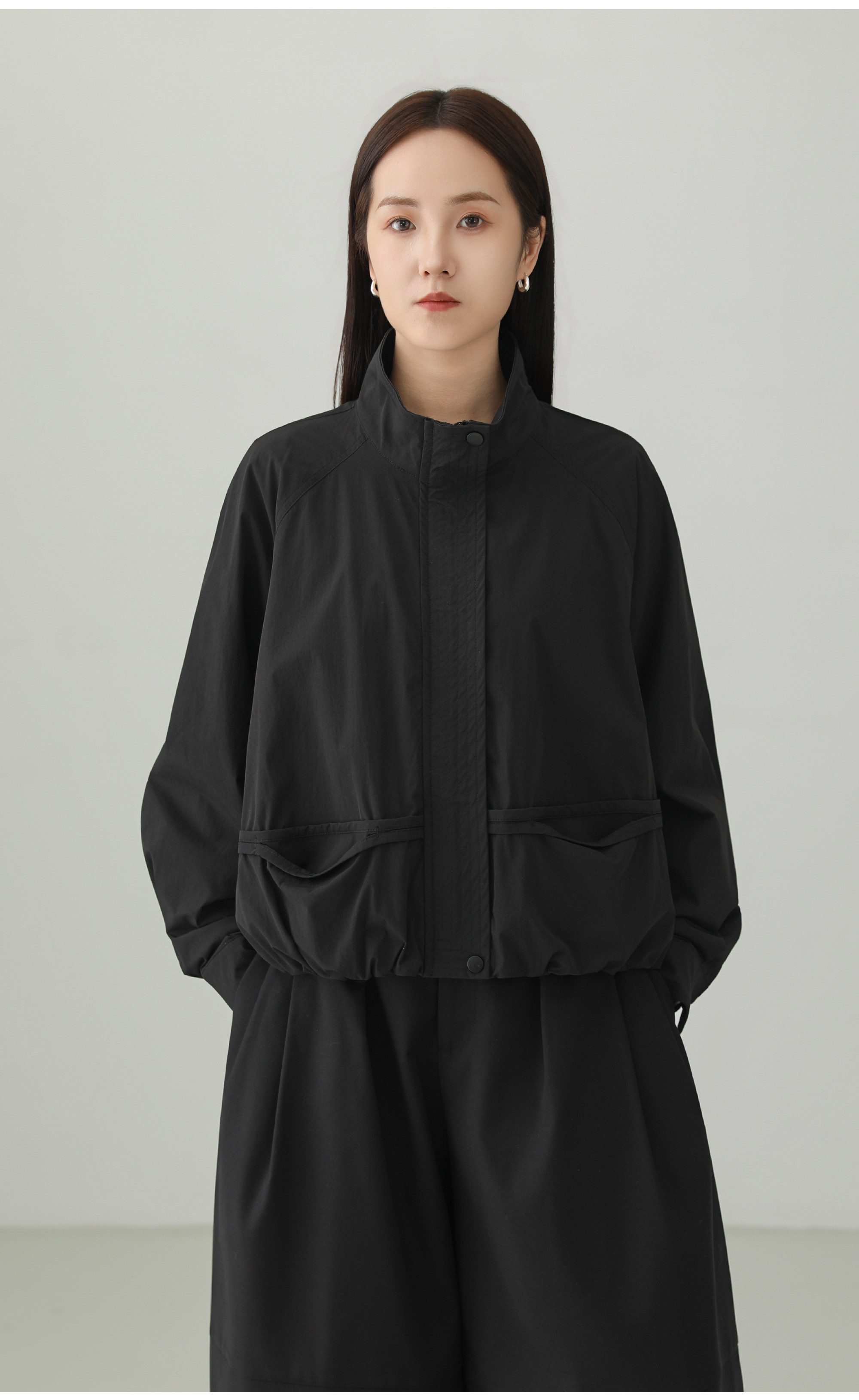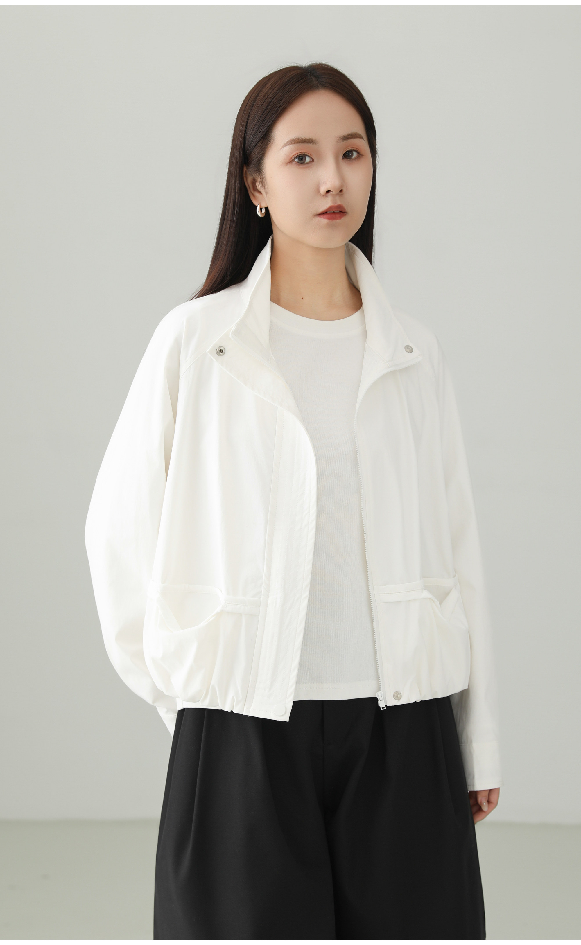 スタンドカラーでファスナーをオープンにしても閉めて着用してスタイリッシュ