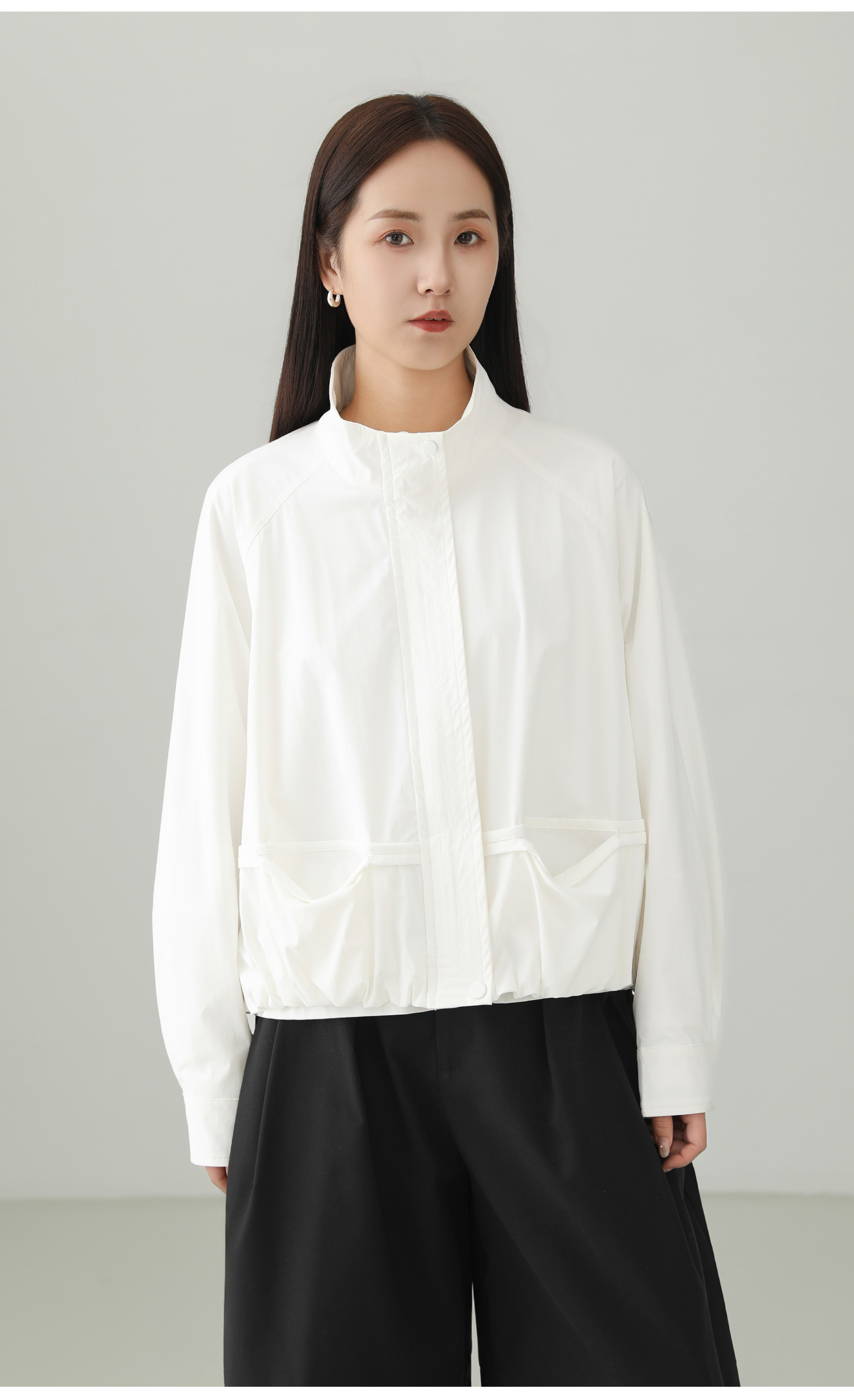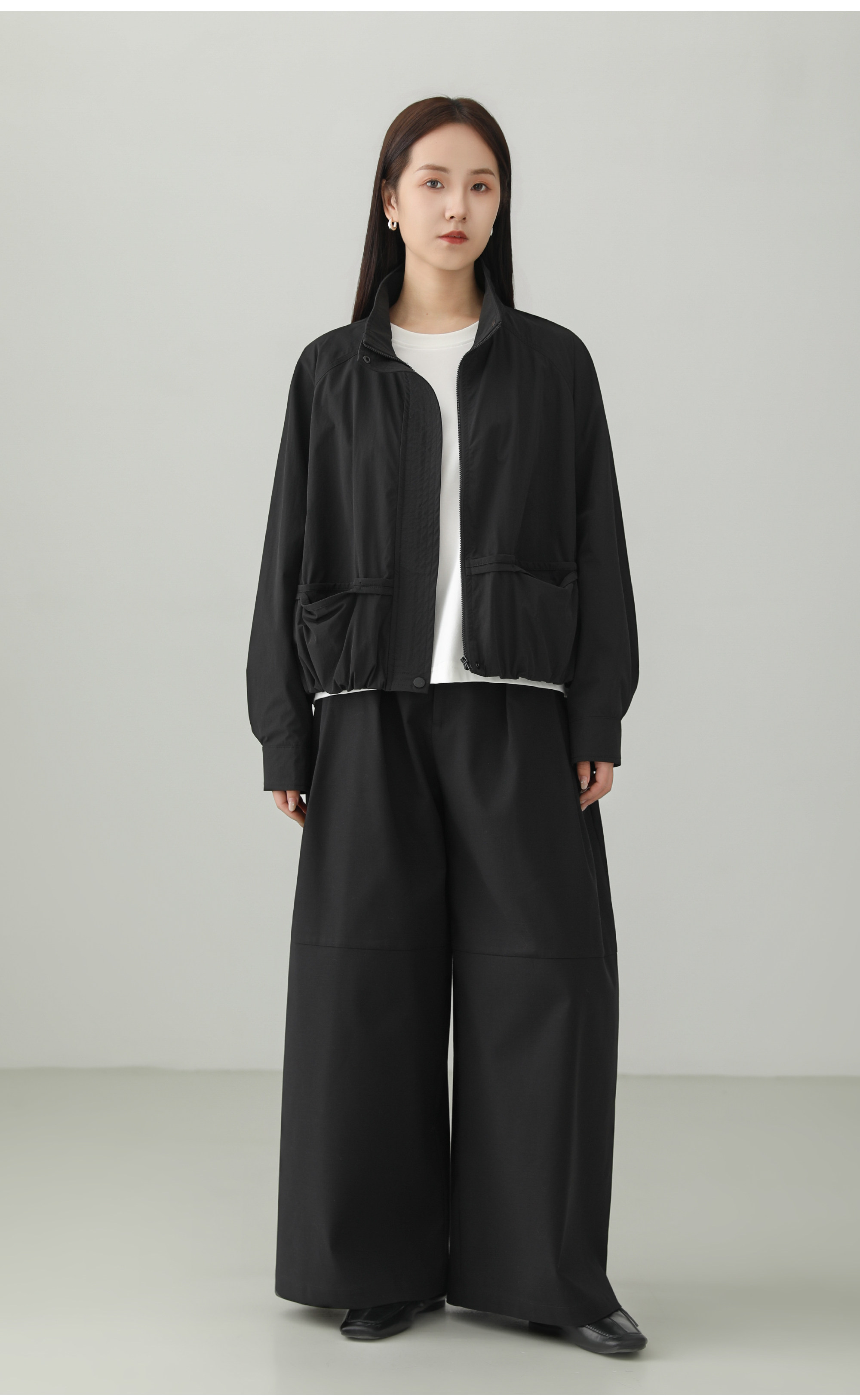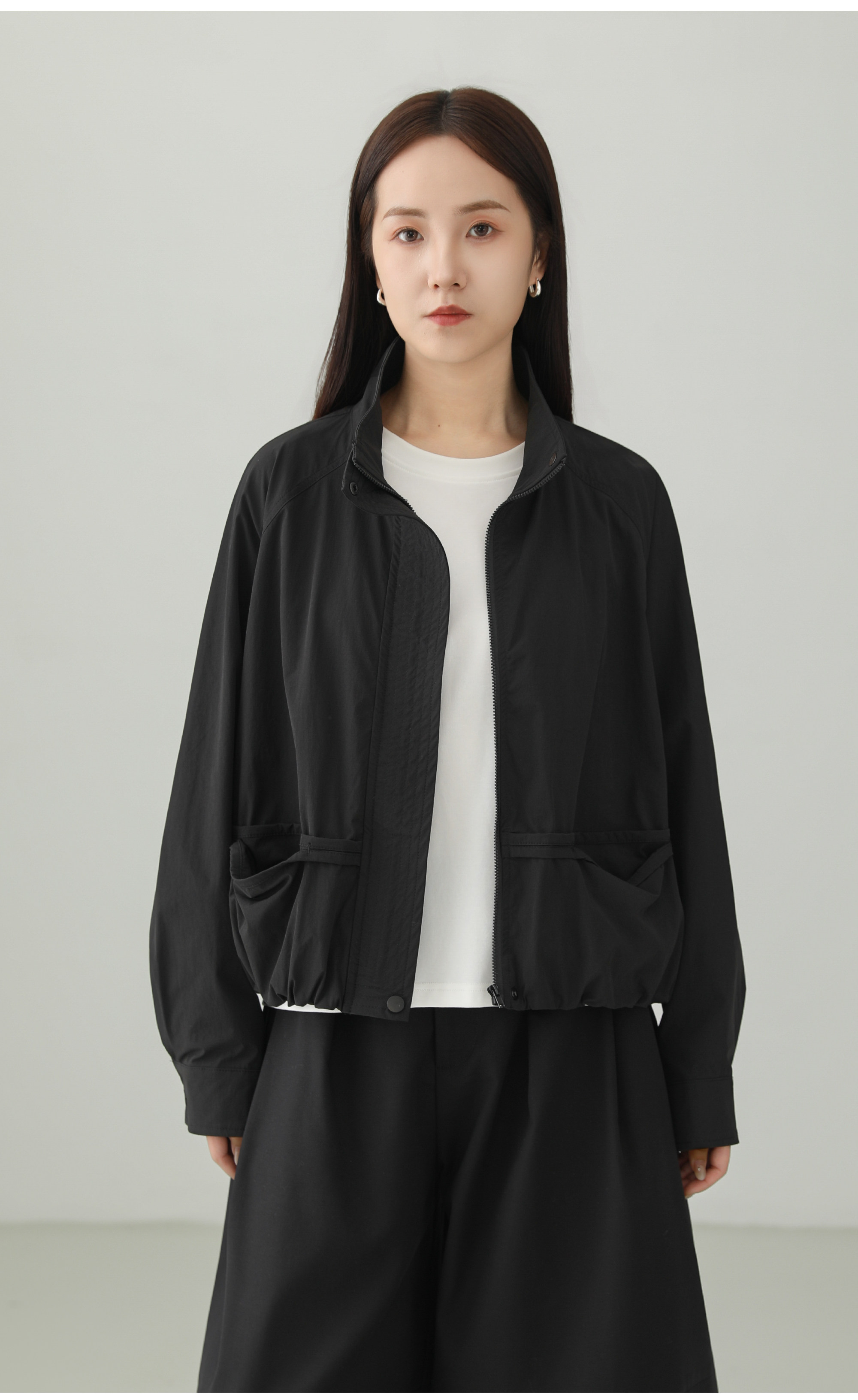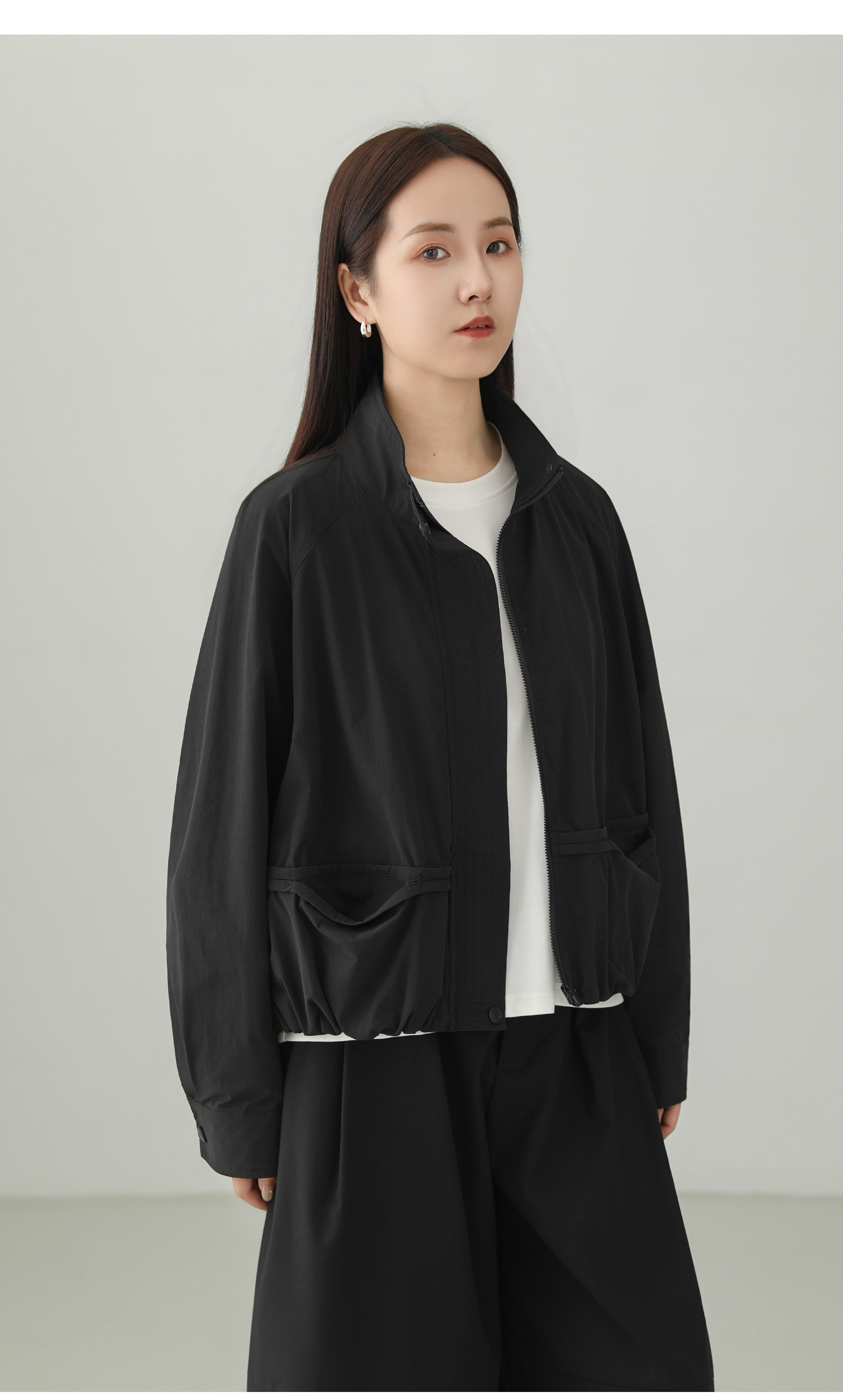 スタンドカラーでファスナーをオープンにしても閉めて着用してスタイリッシュ