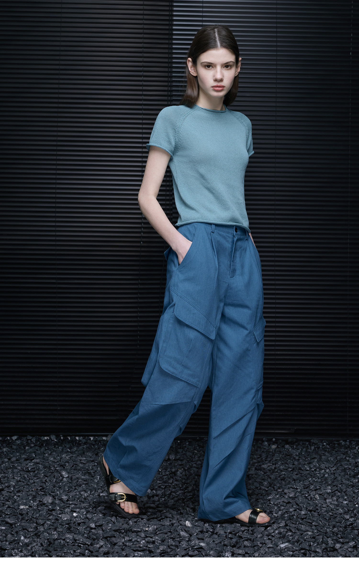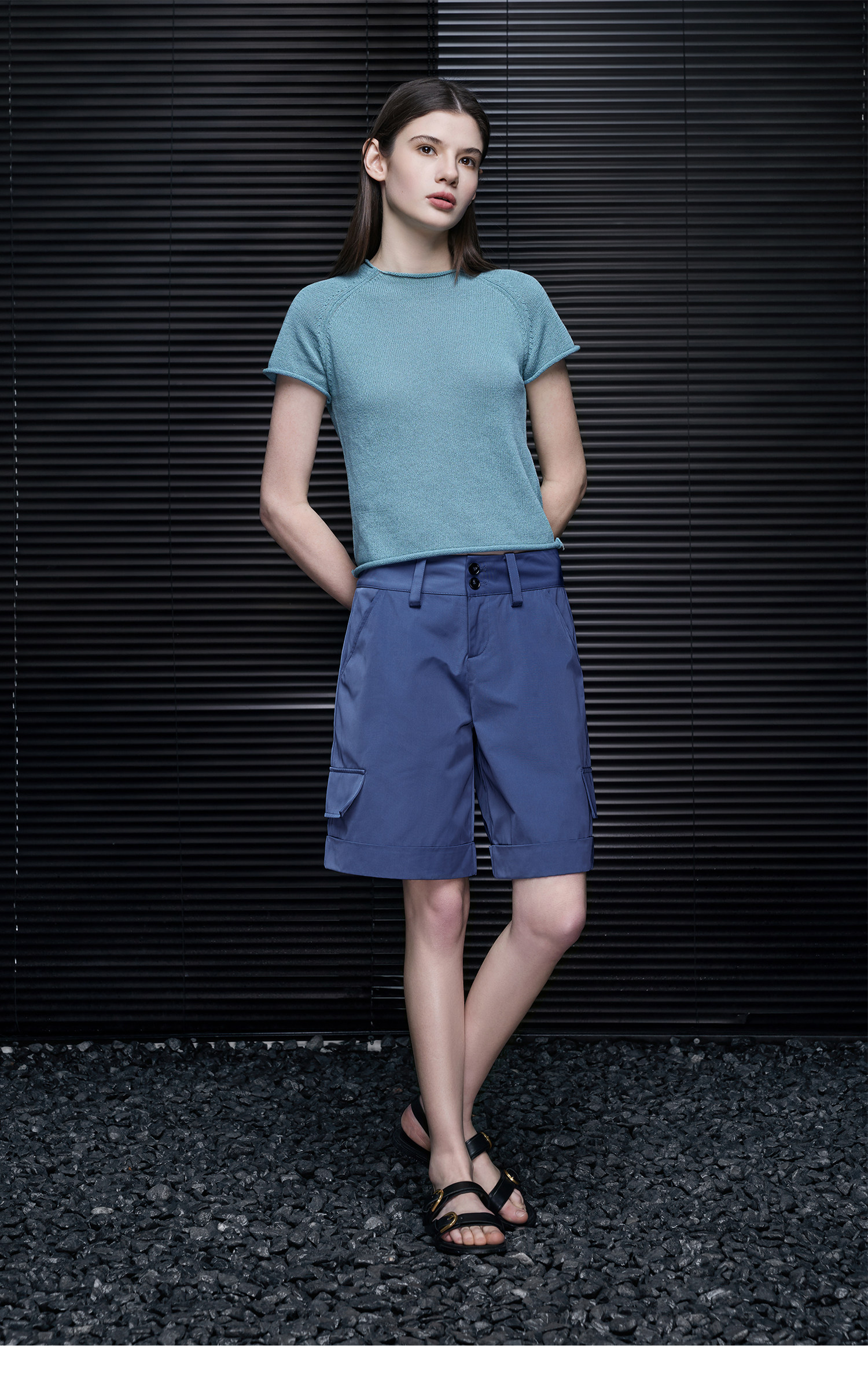 ラグランスリーブはゆったりとして着心地が良く、ロールアップした袖口と裾が