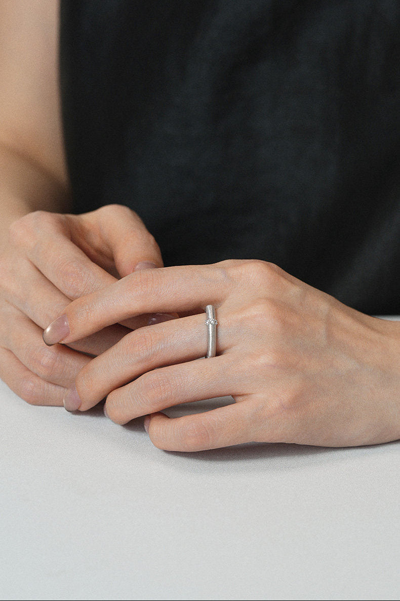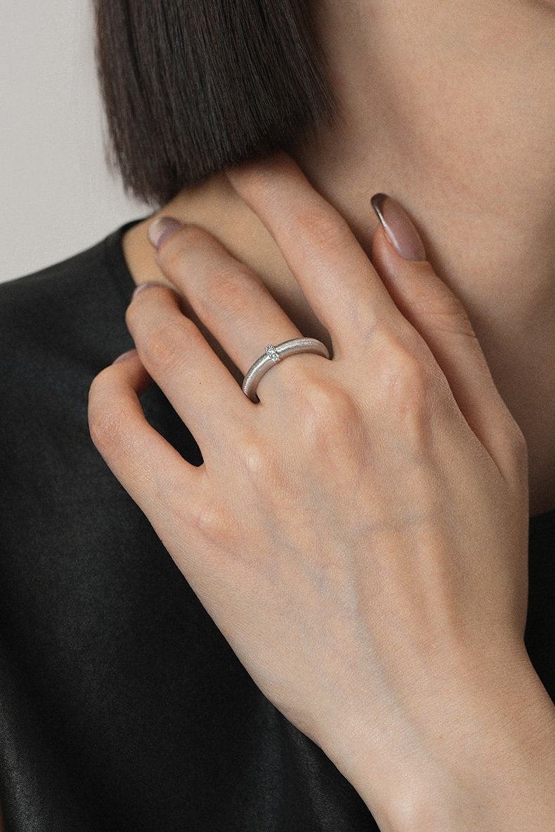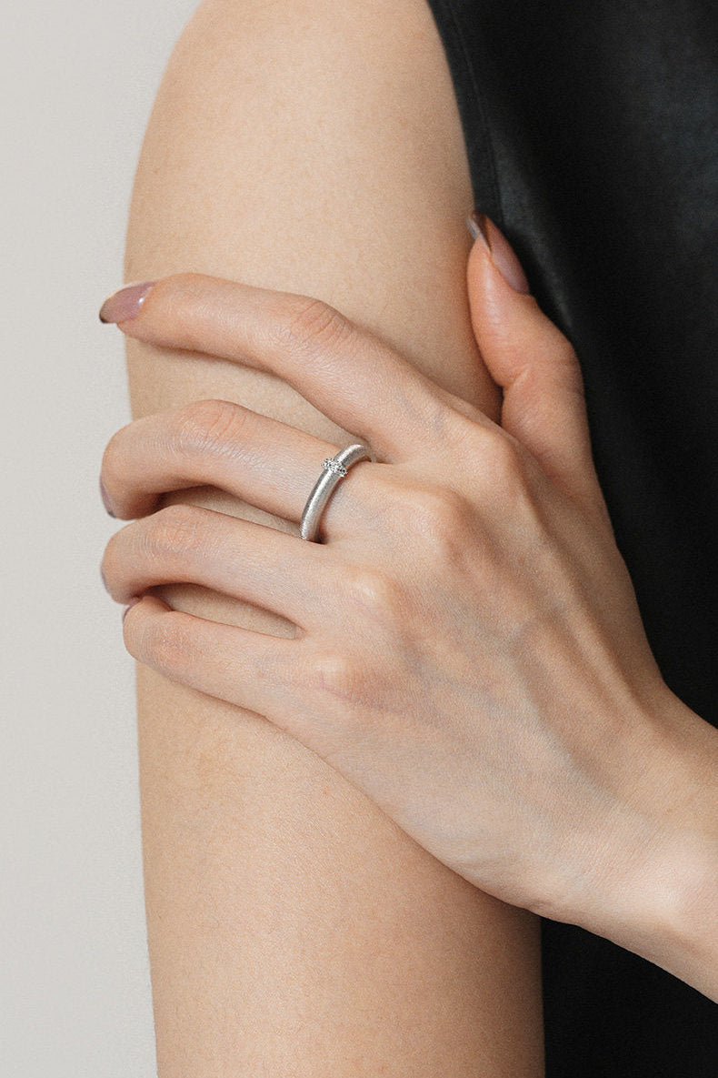 ミニマリズムと艶消し仕上げのモダンな雰囲気のリング
