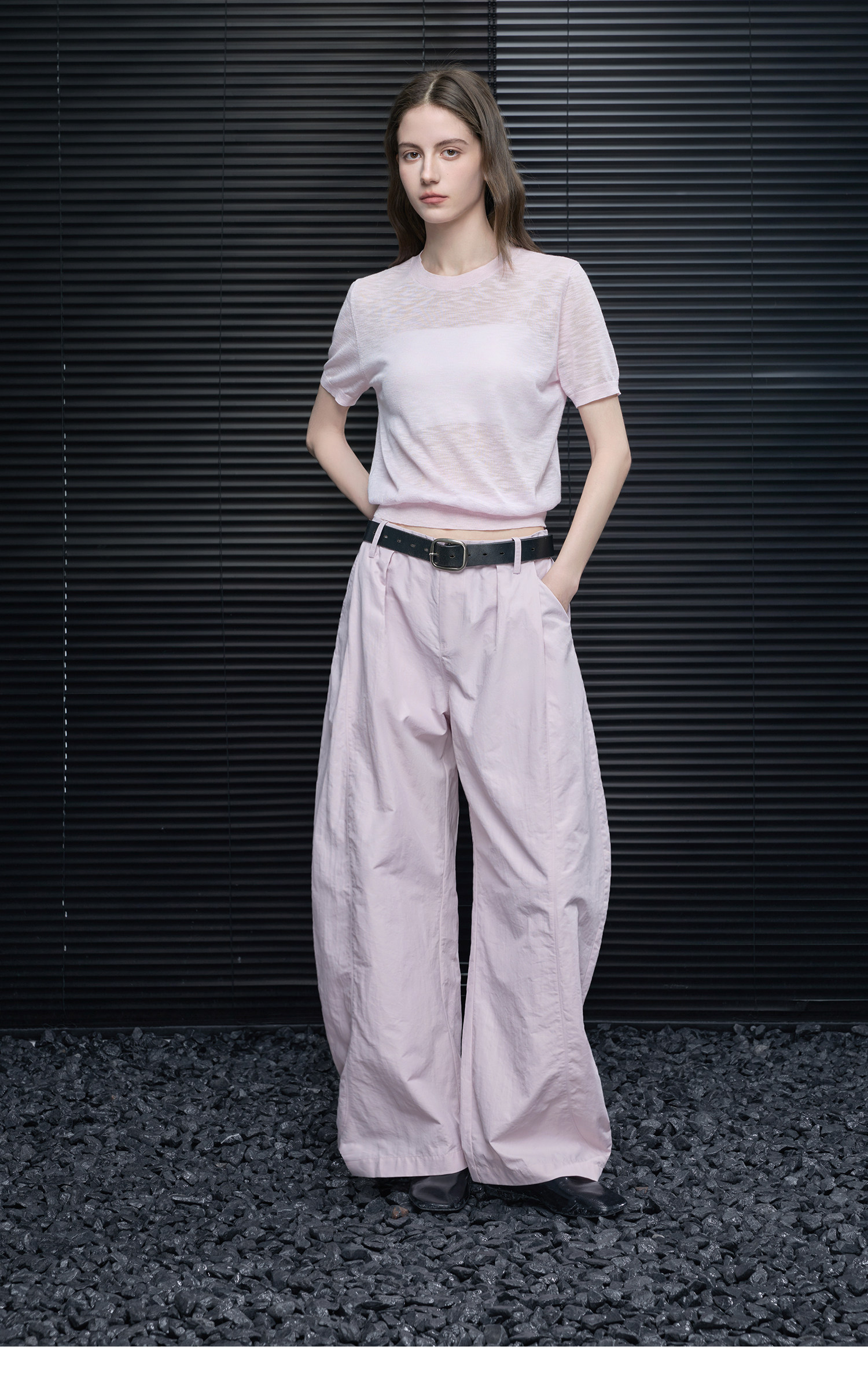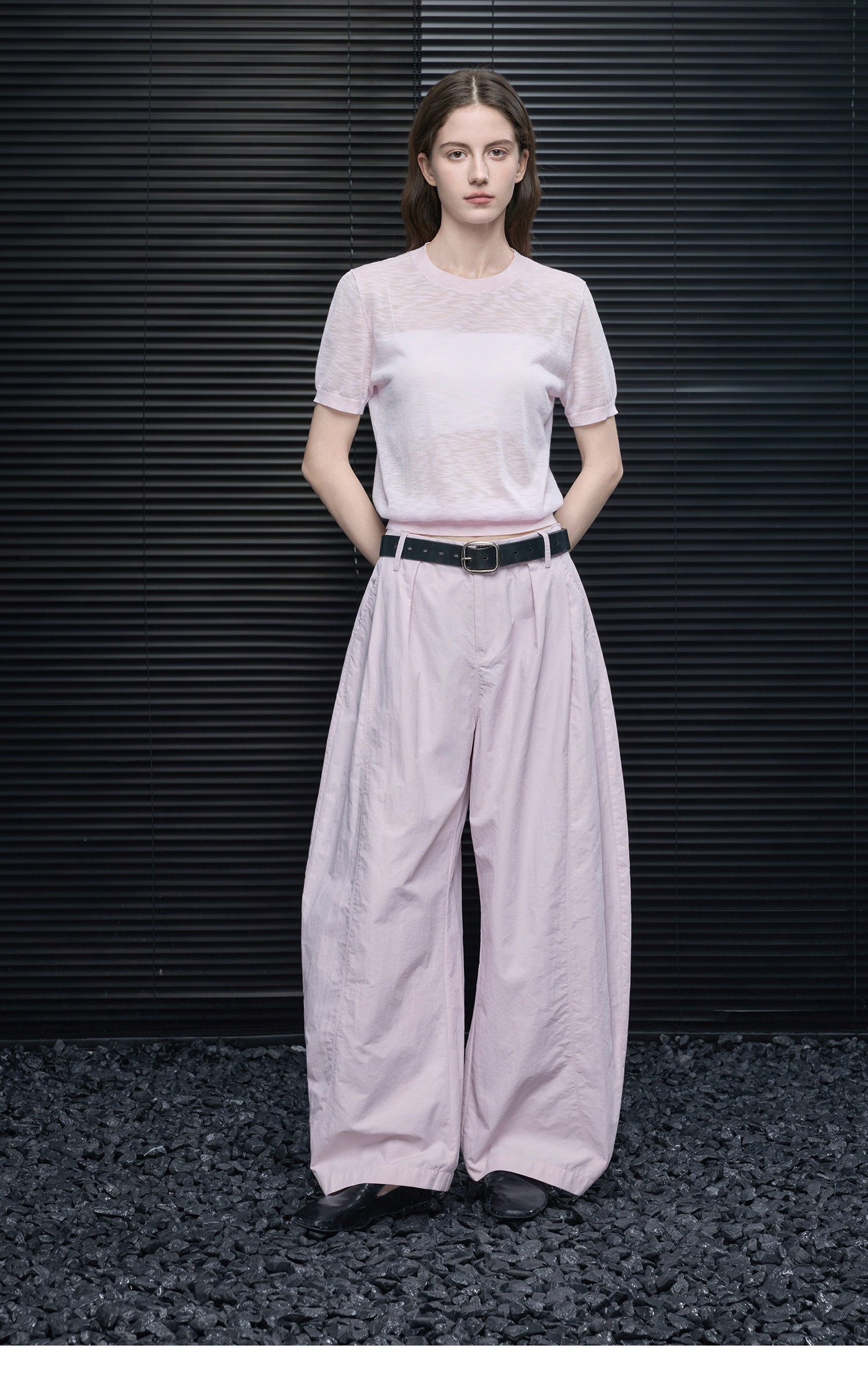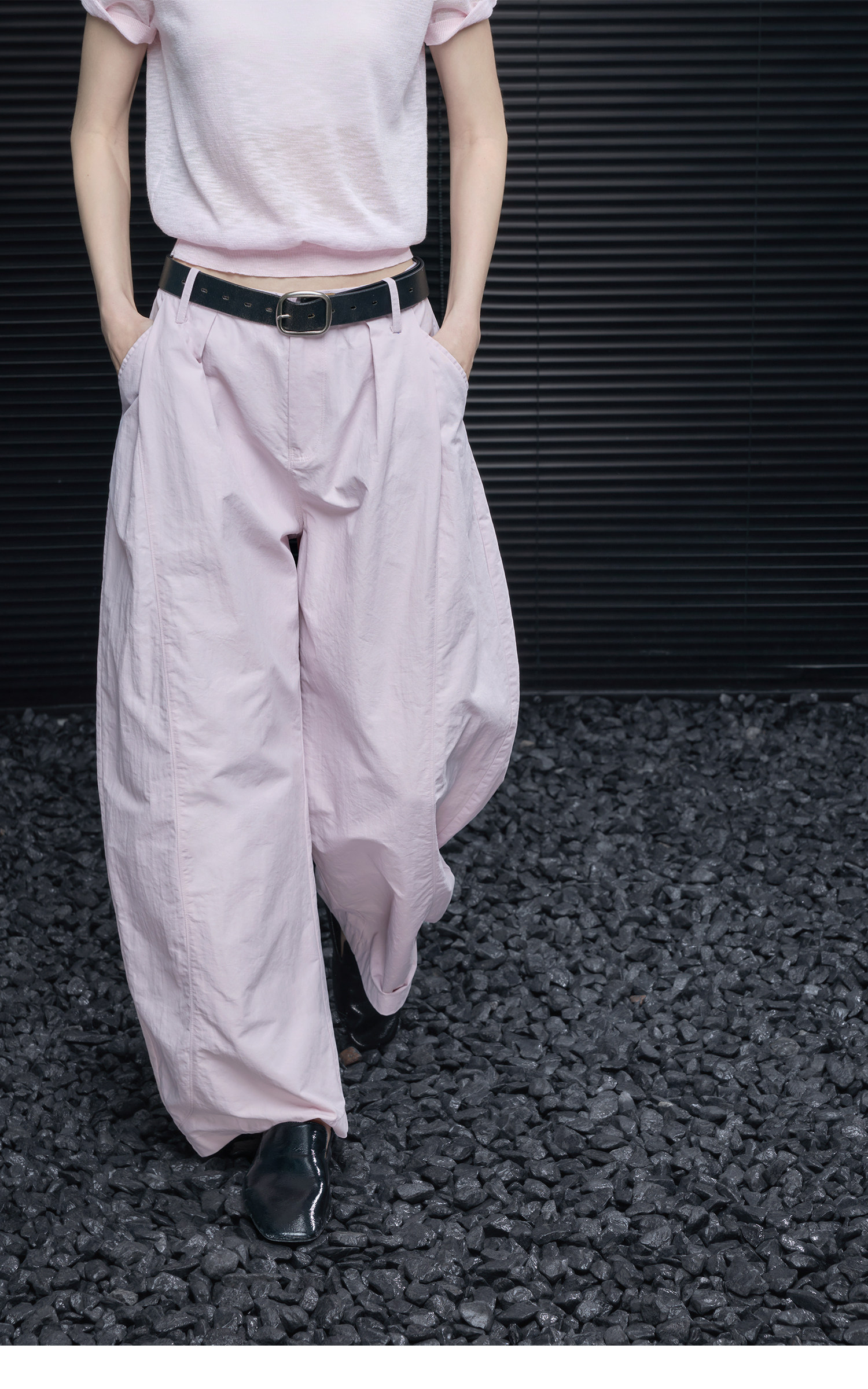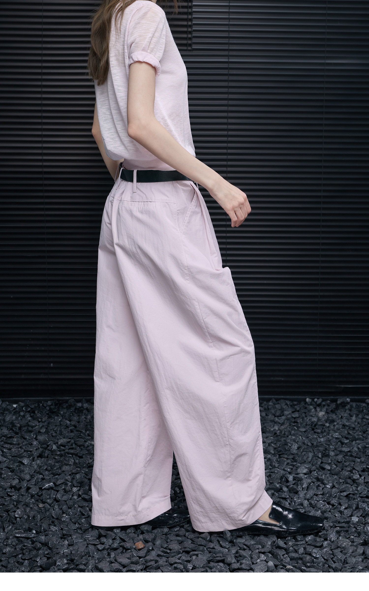 ゆったりとしたカーブナイフスタイルは、脚を長く見せプロポーションを美しく