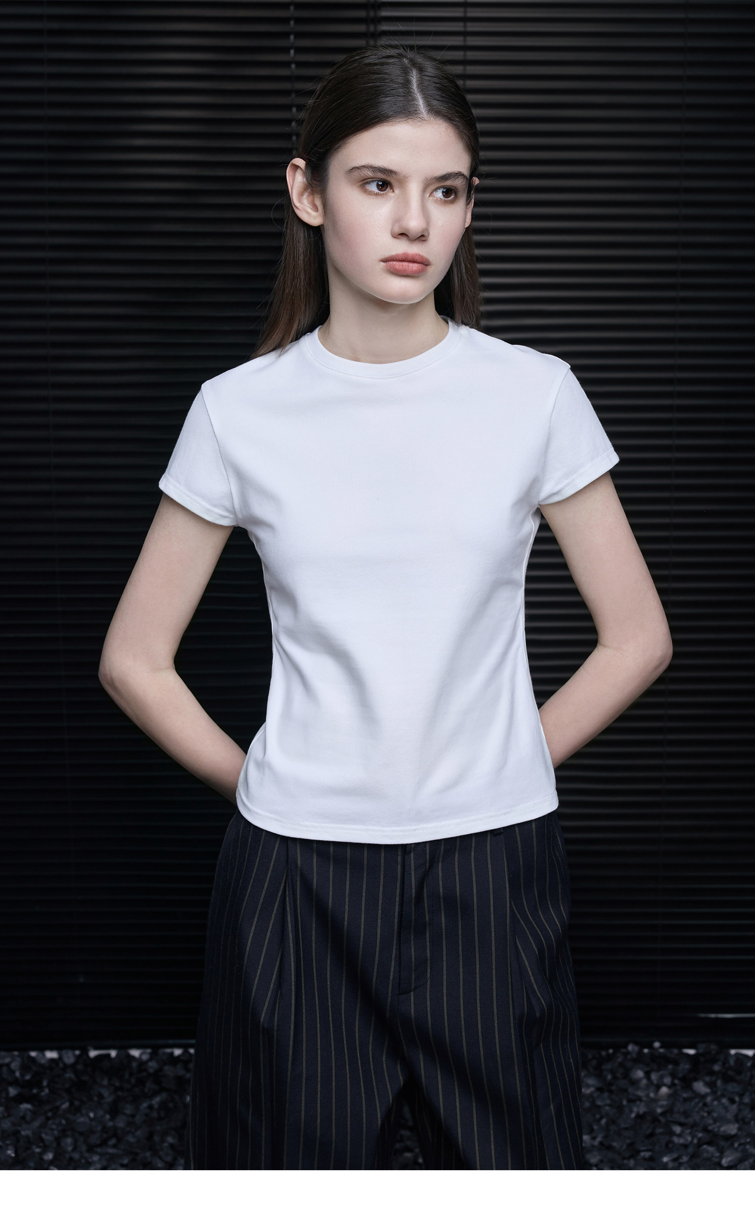 ホワイトシンプルスリムフィットTシャツ B4738