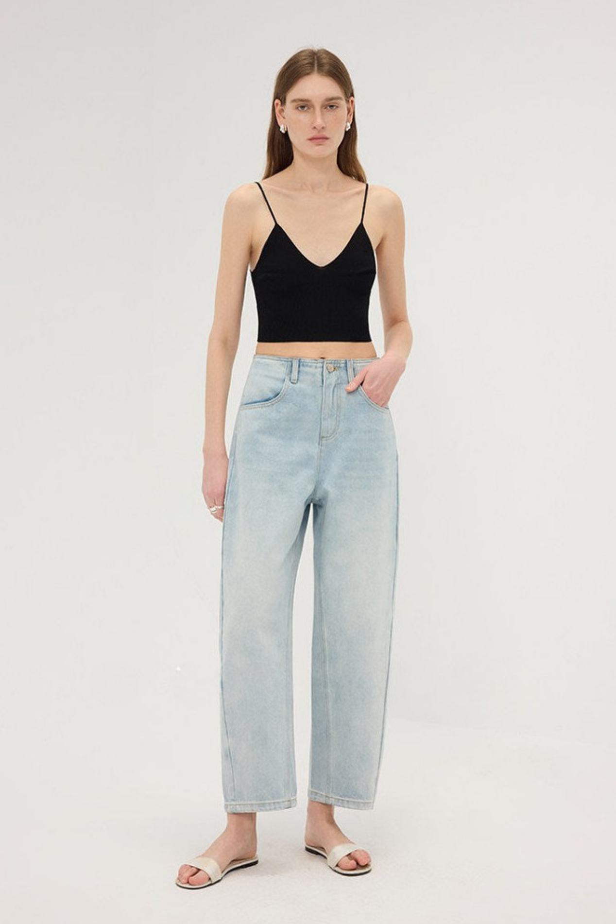 ストレッチデニムストレートクロップドパンツ B4744