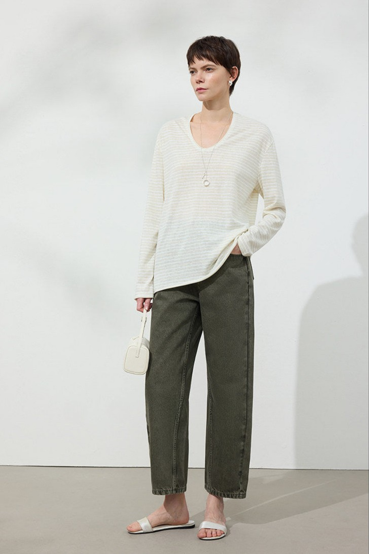 モデル 170㎝. 79/58.5/87 M着用(パンツ丈 +8㎝ロングバージョンを着用)