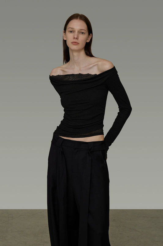 極簡主義弧形刀鋒寬鬆褲 B4530