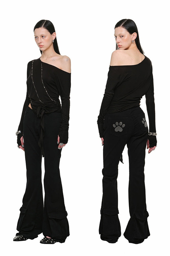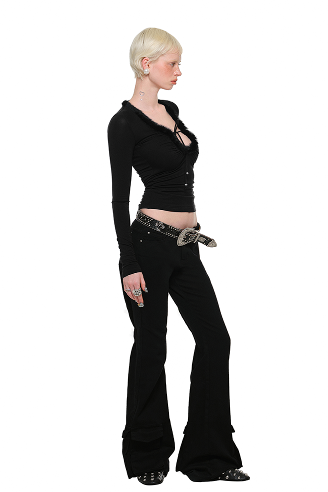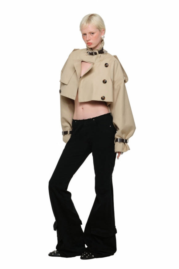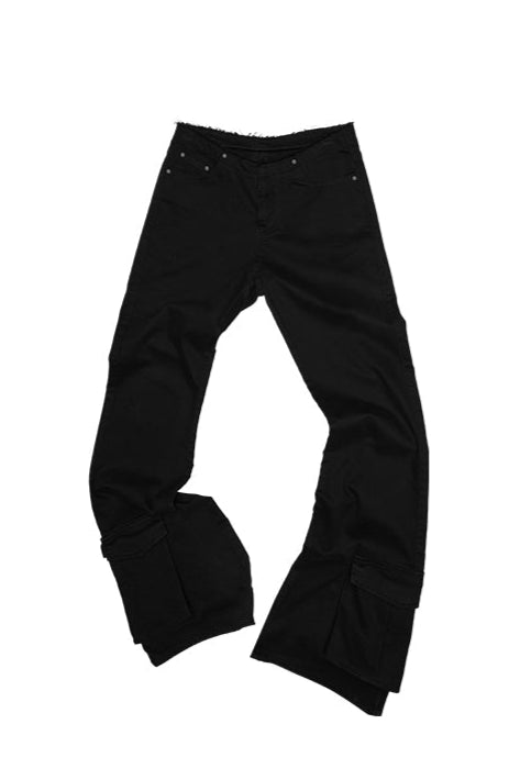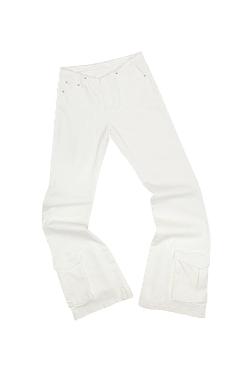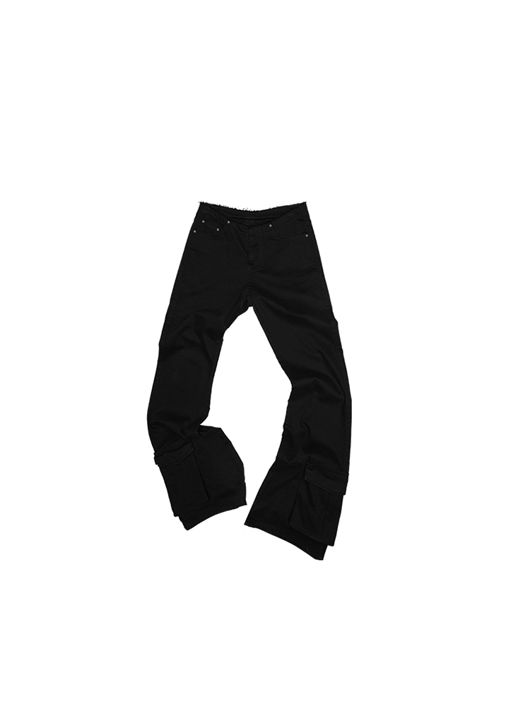 大口袋水洗帆布復古喇叭褲 B3792