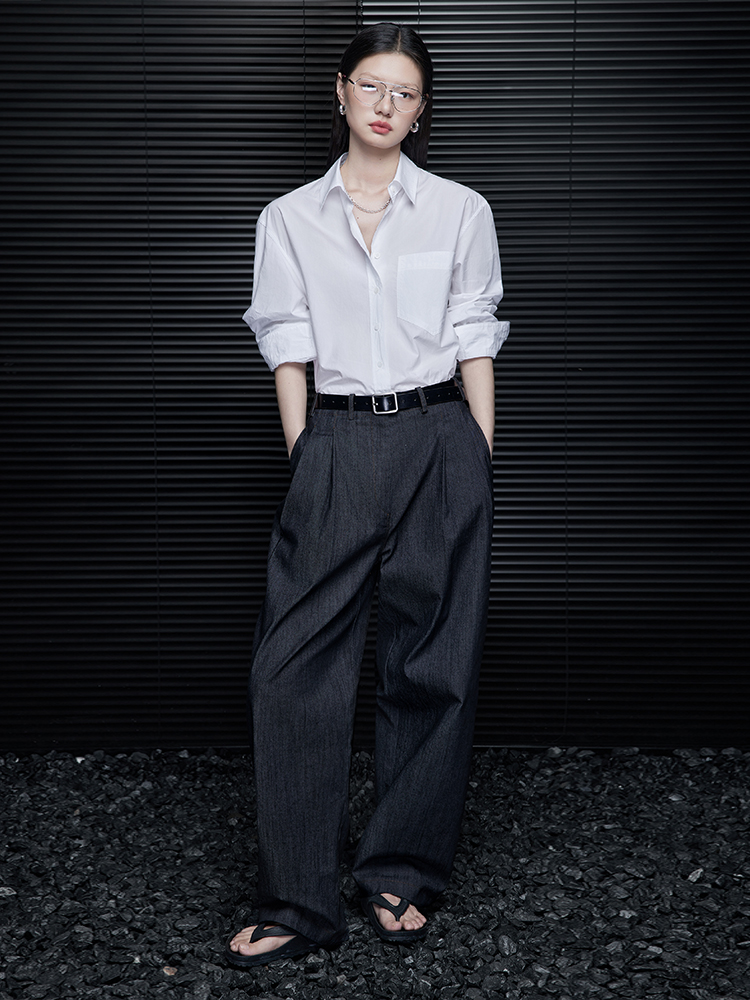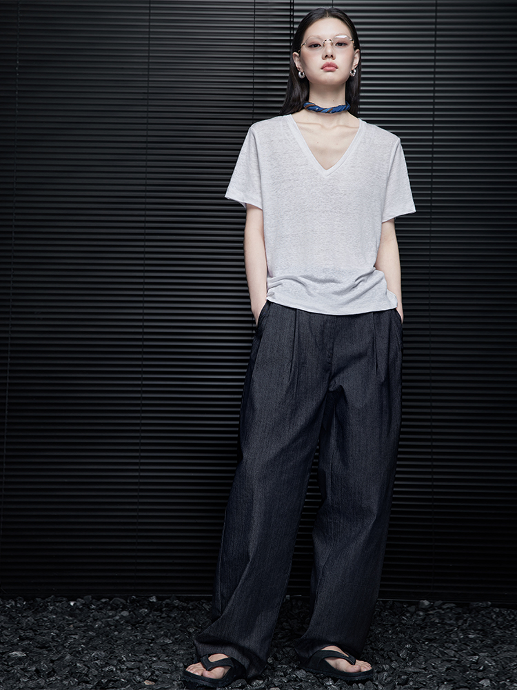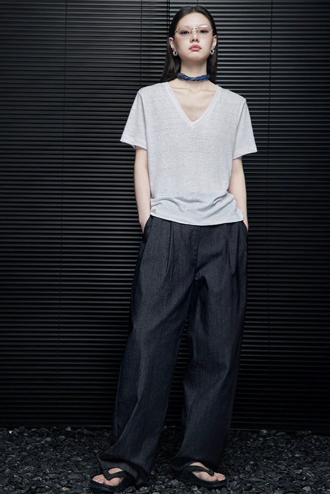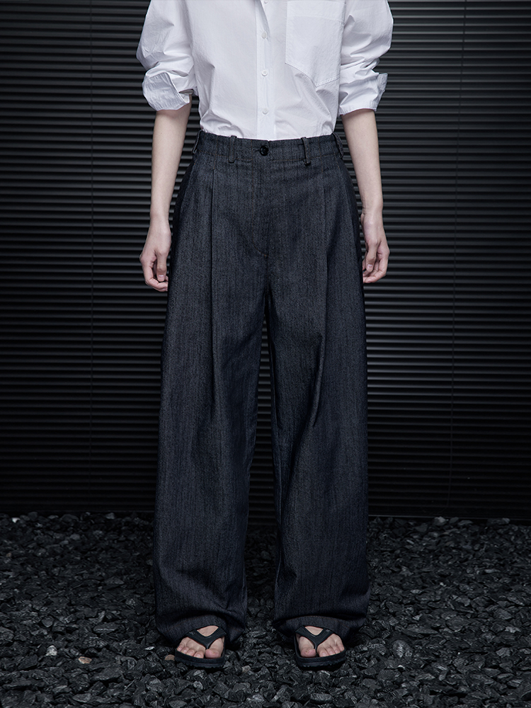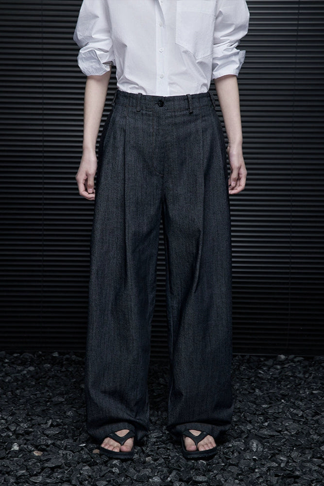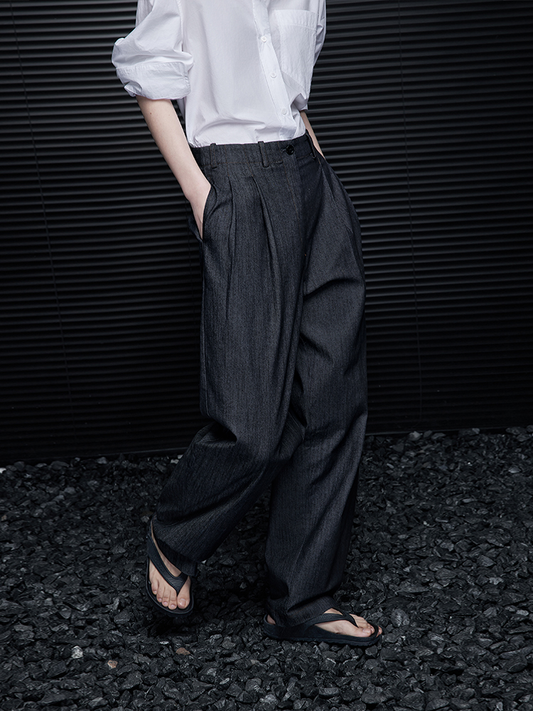 黑色牛仔寬鬆直筒懶人風褲B3951