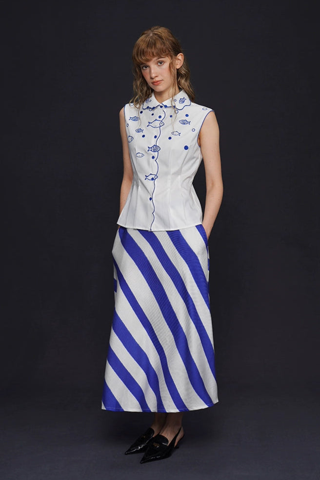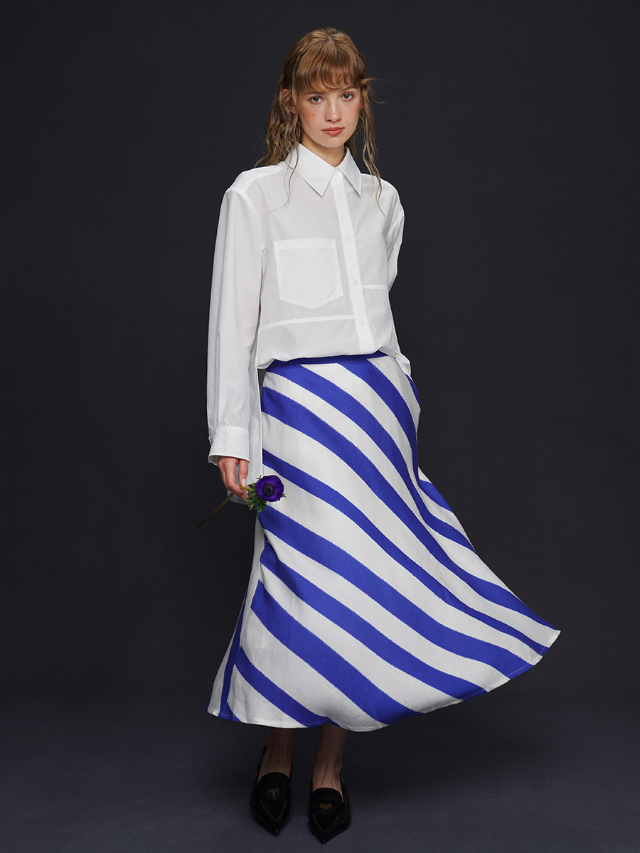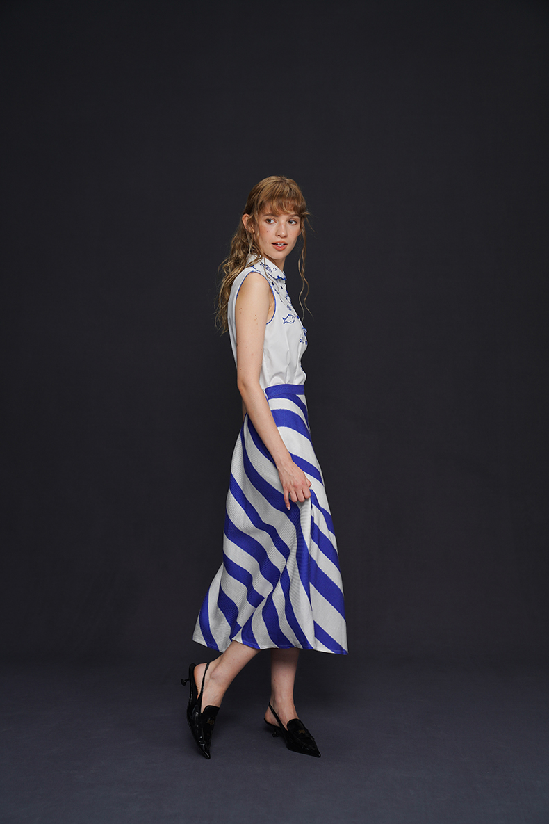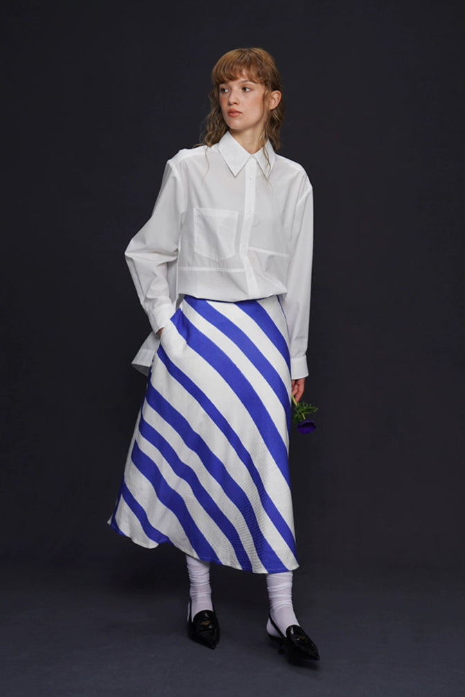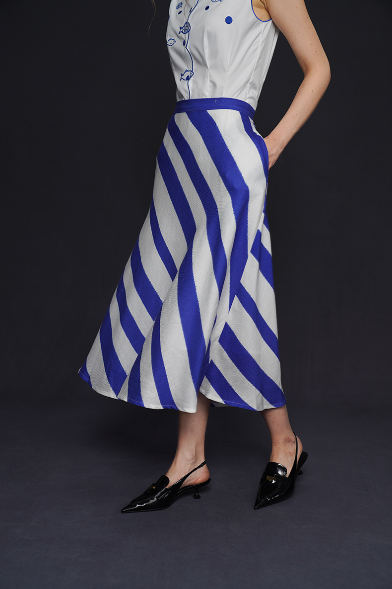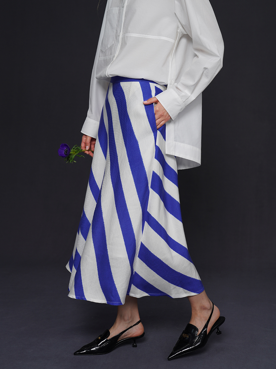 藍白條紋長裙 B4158