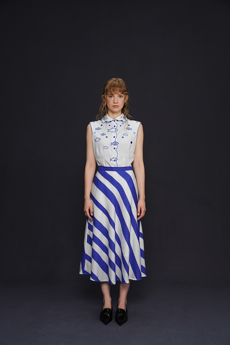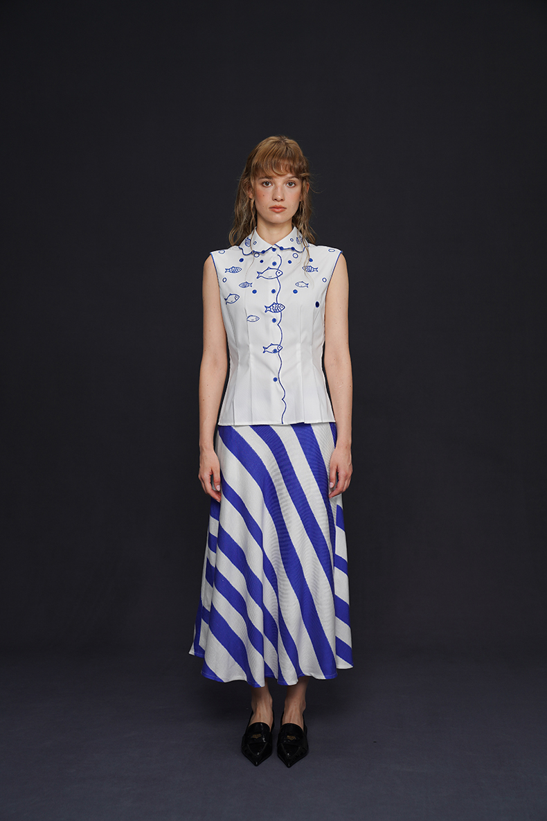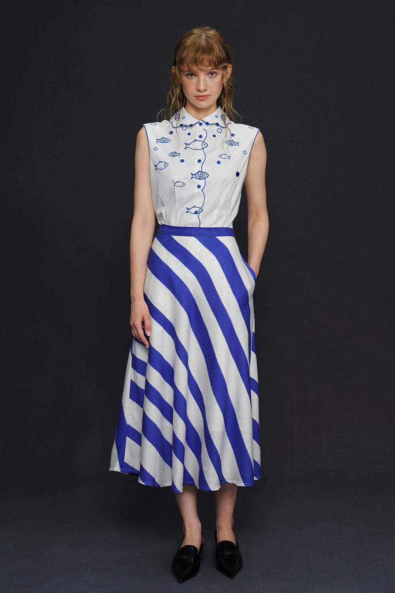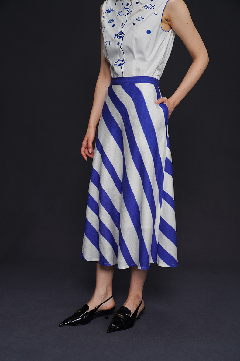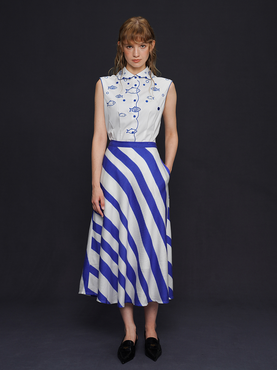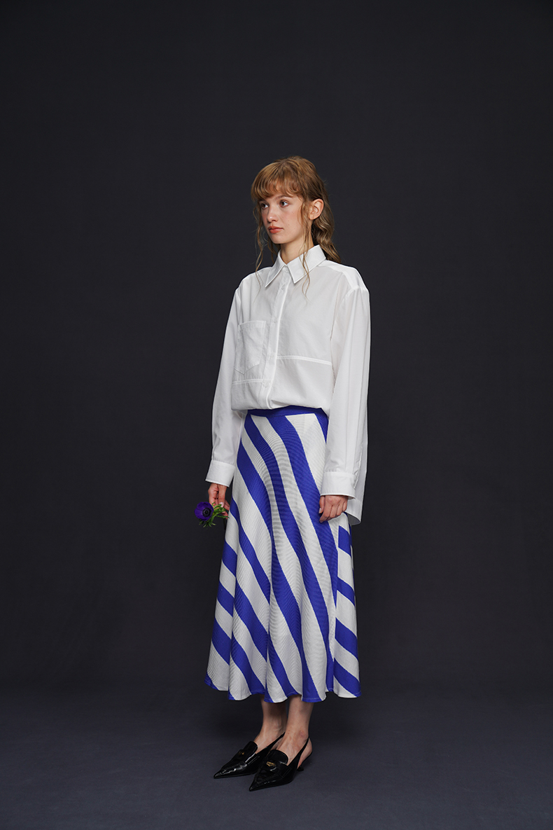 藍白條紋長裙 B4158