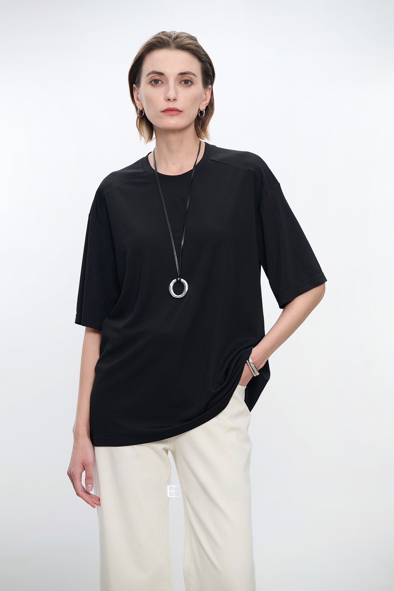 透氣涼爽中袖奢華寬鬆T卹 B4177