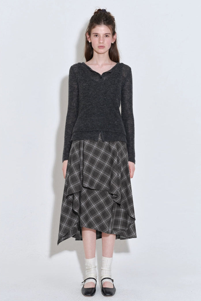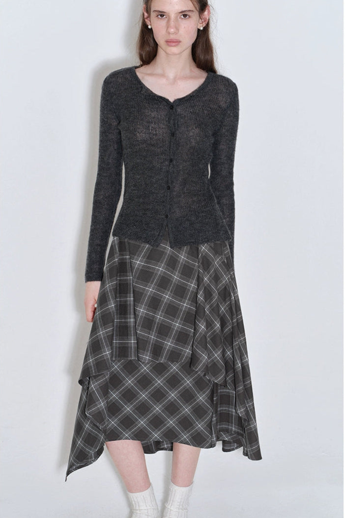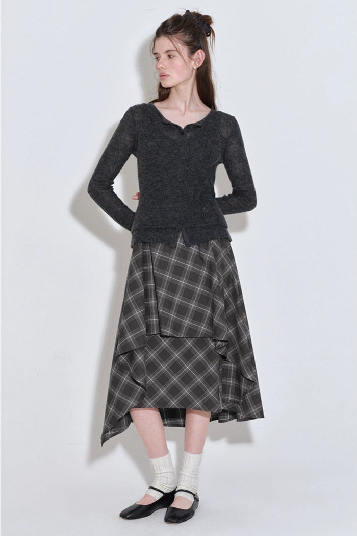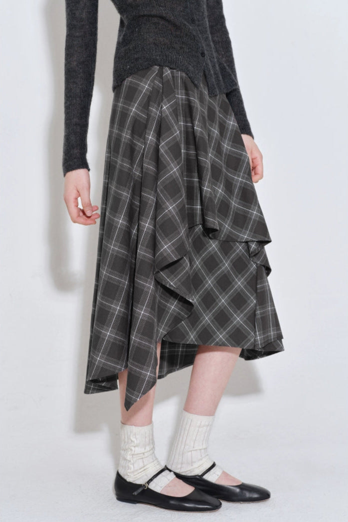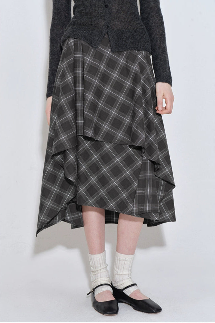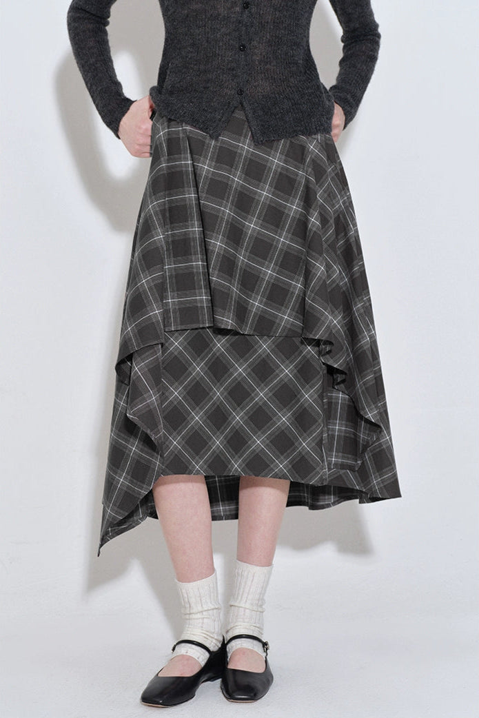 格紋層疊不規則半身裙 B4216