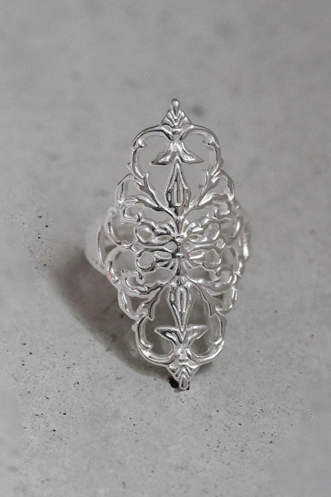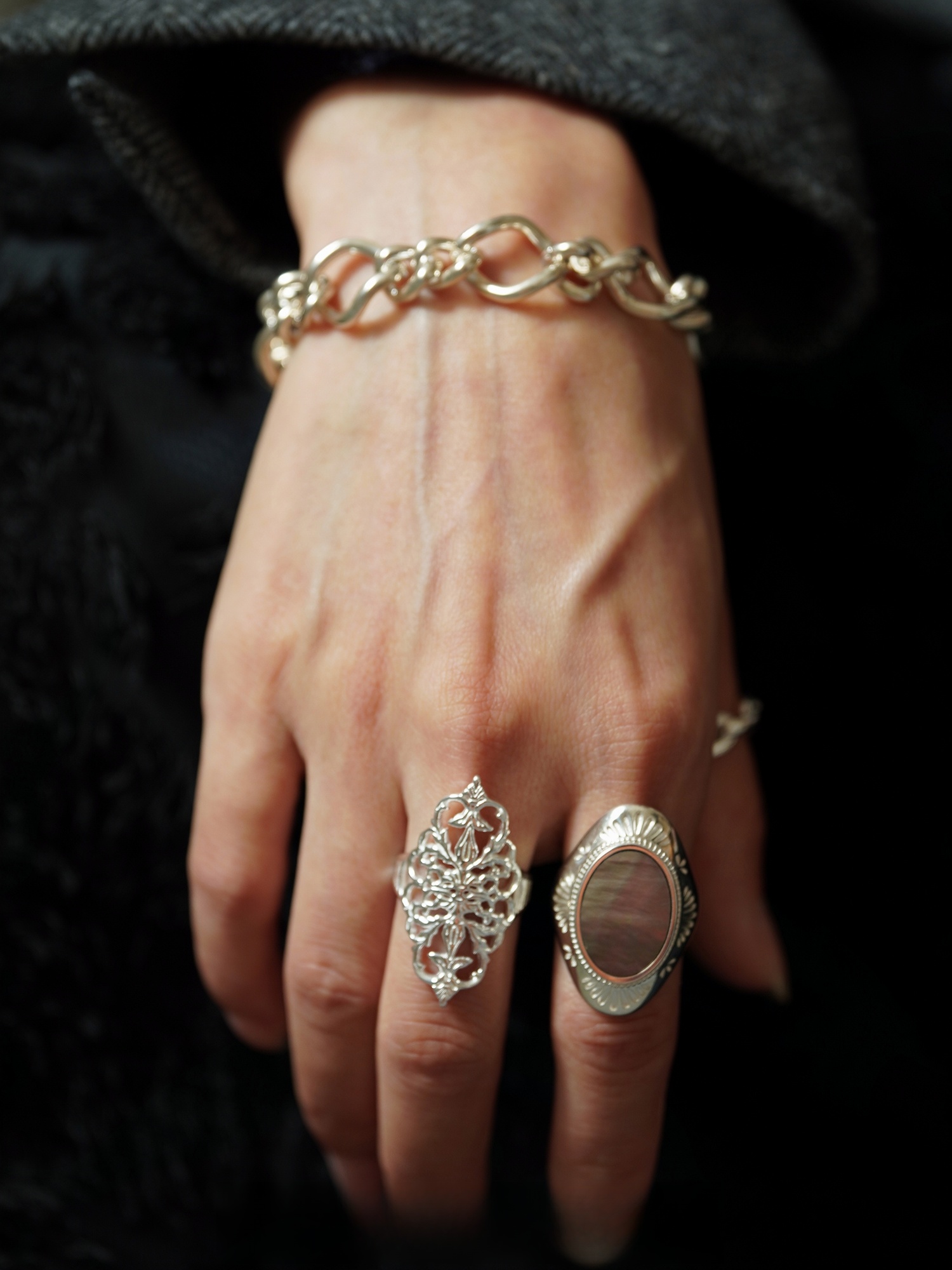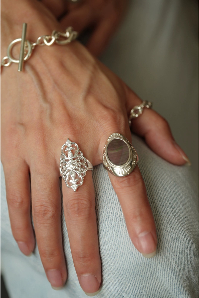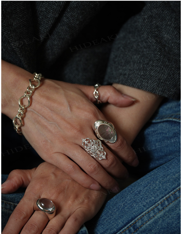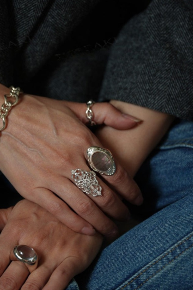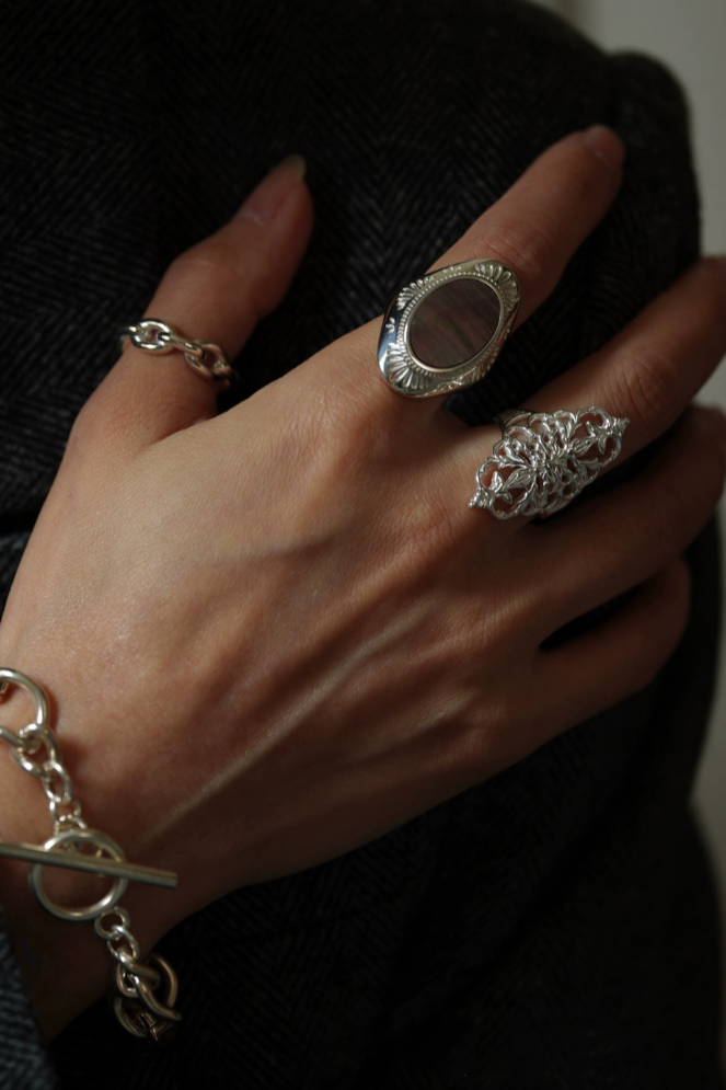 S925貝殼浮雕戒指/蕾絲圖案戒指 B4230