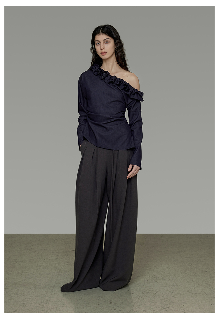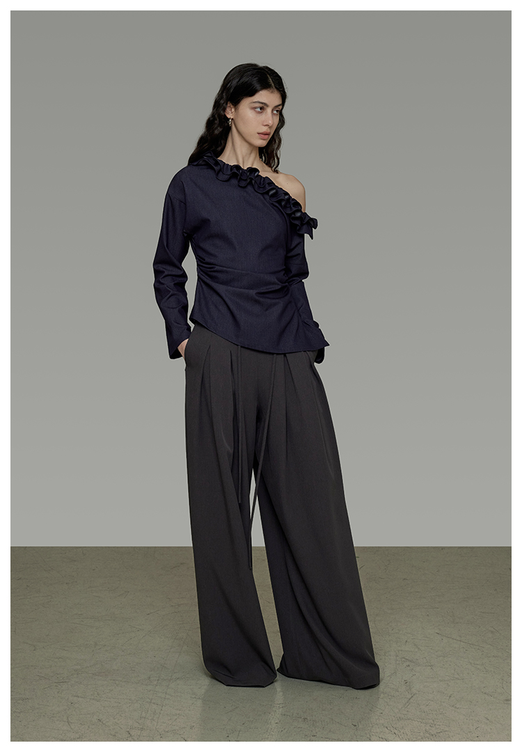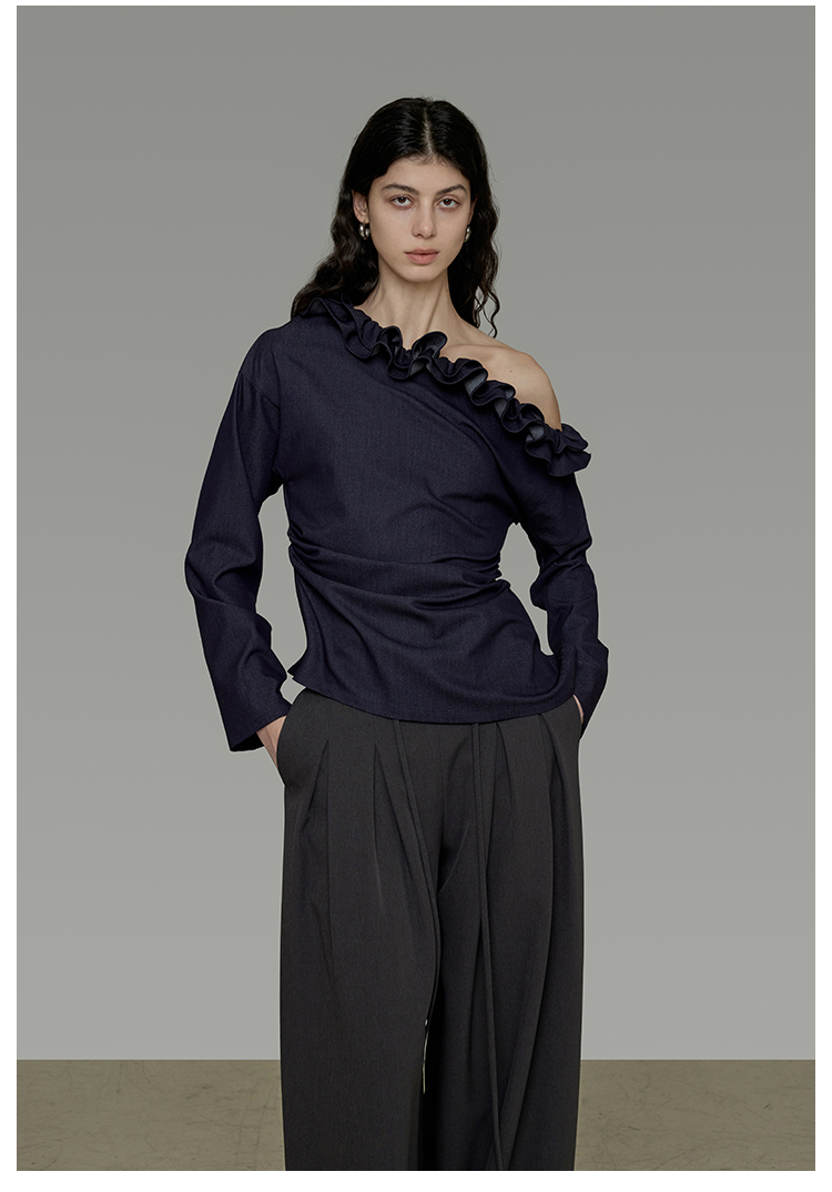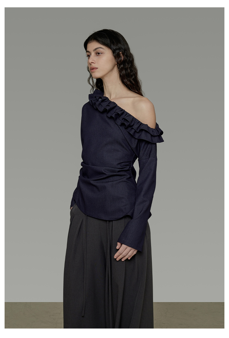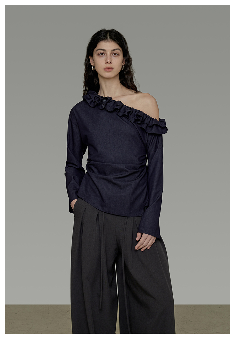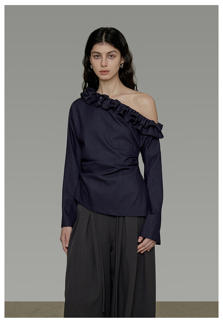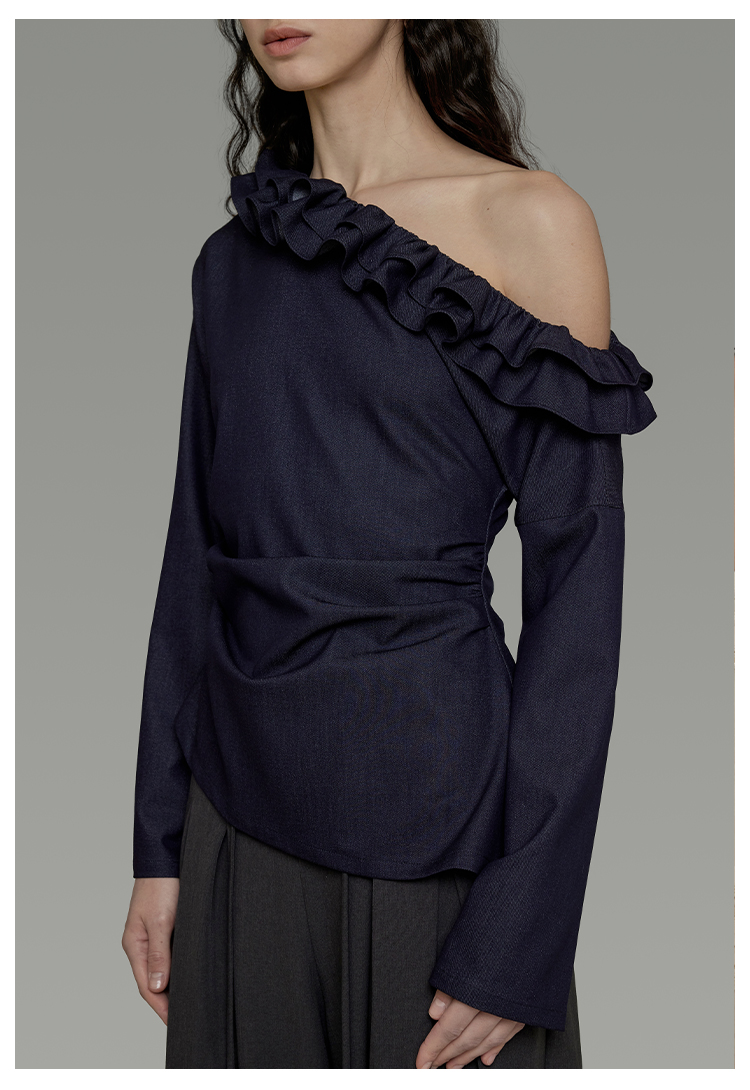 單肩設計拉長了領口線條,凸顯了您優美的身材和臉型。