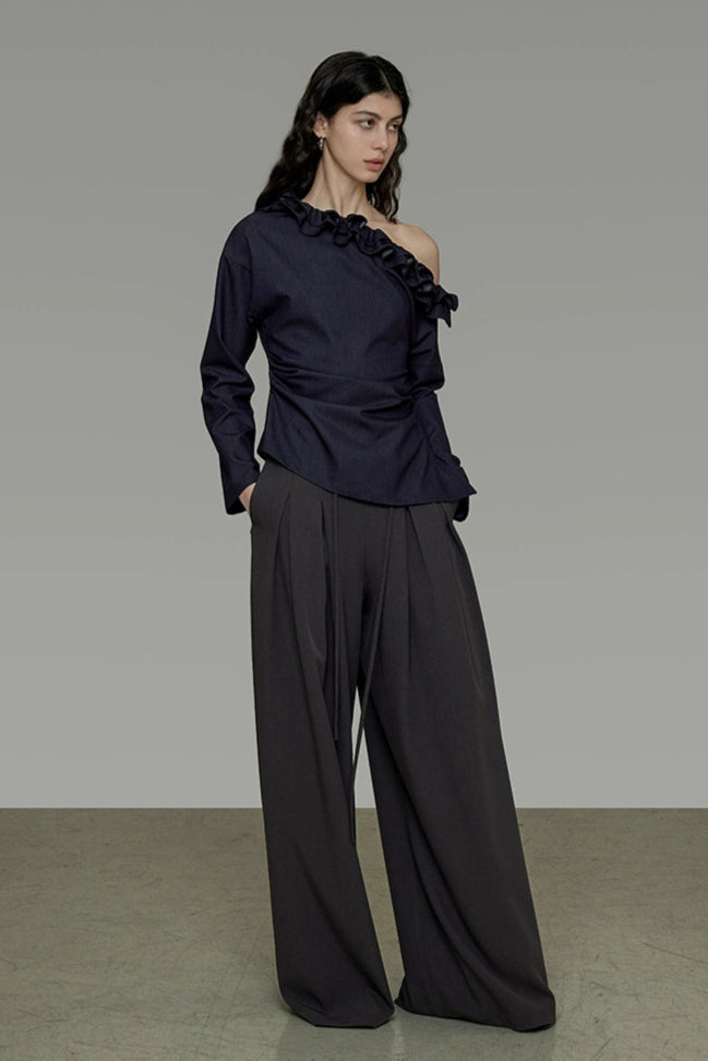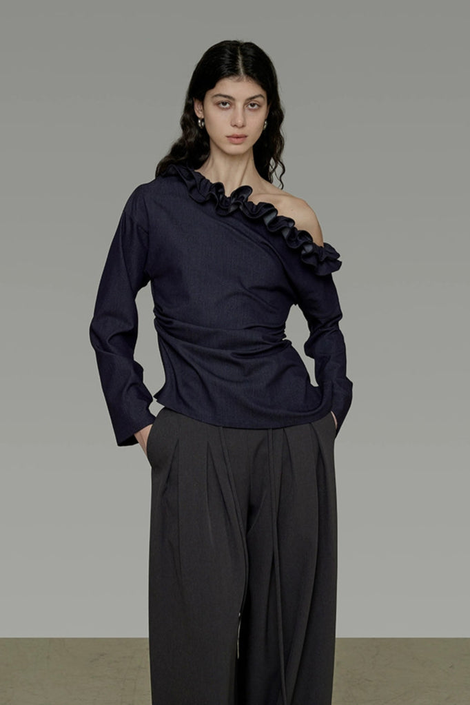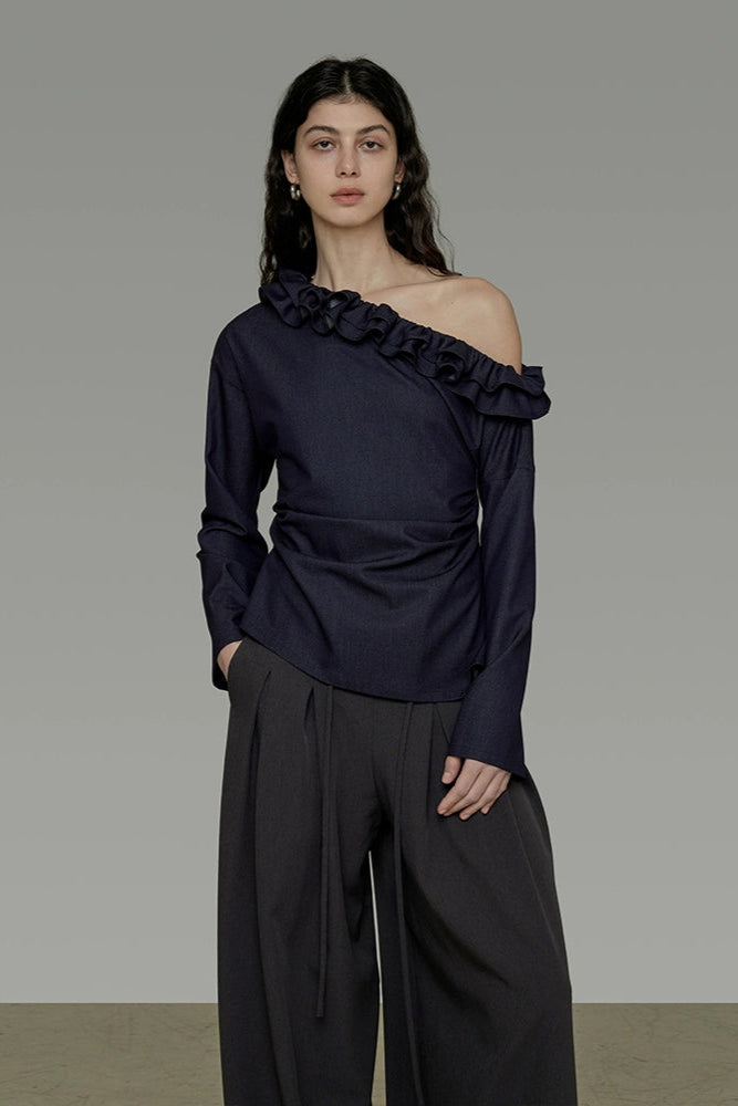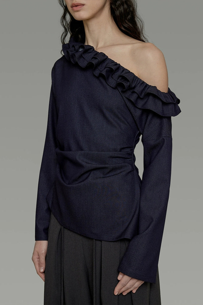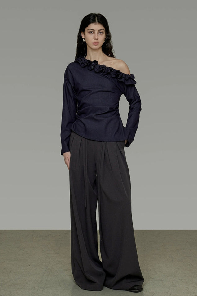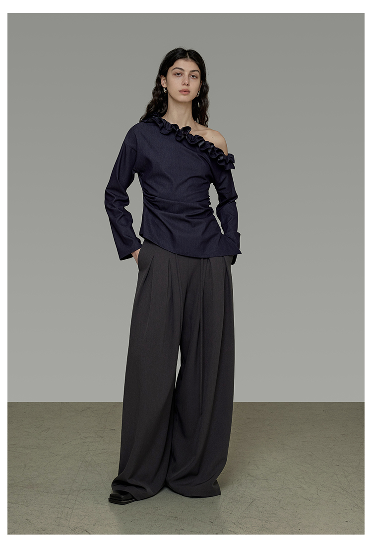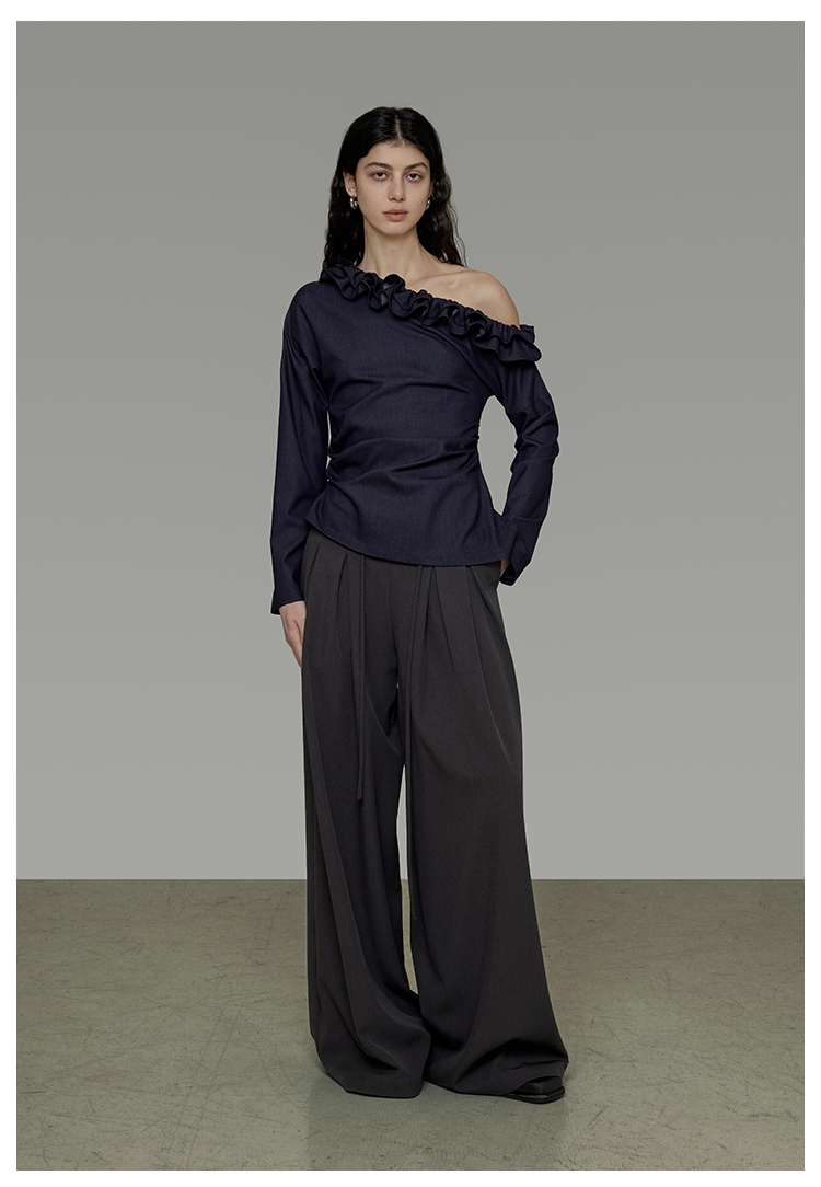 單肩設計拉長了領口線條,凸顯了您優美的身材和臉型。