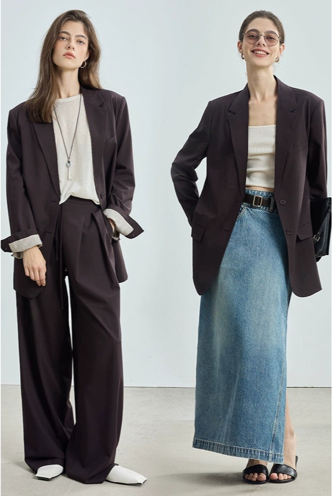 西裝外套和褲子套裝(垂墜感好、挺括、抗皺)