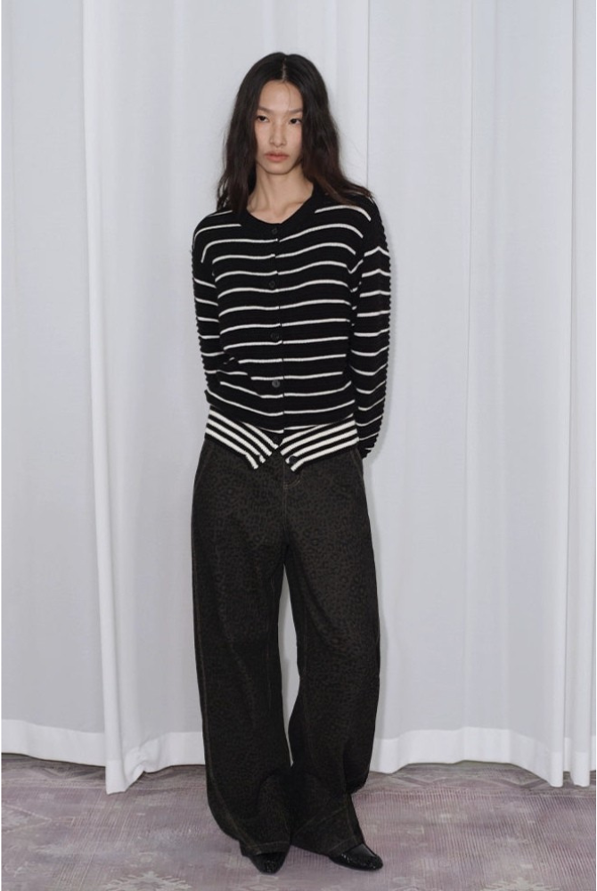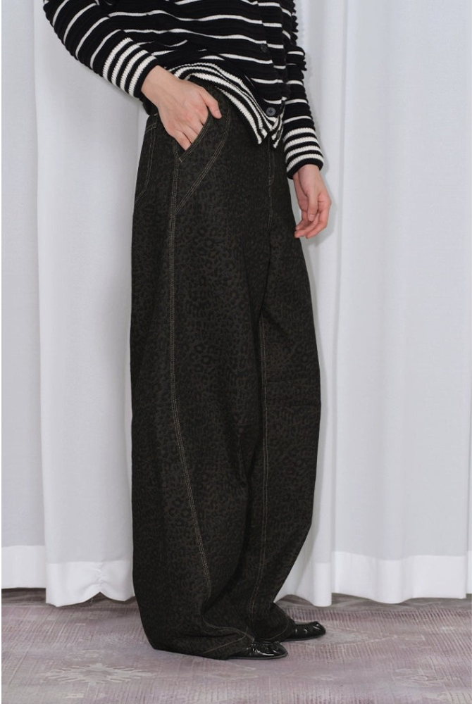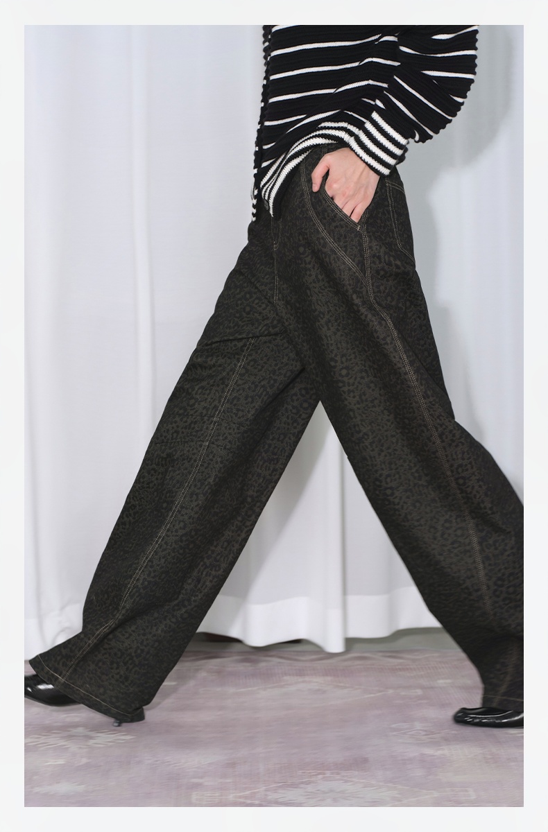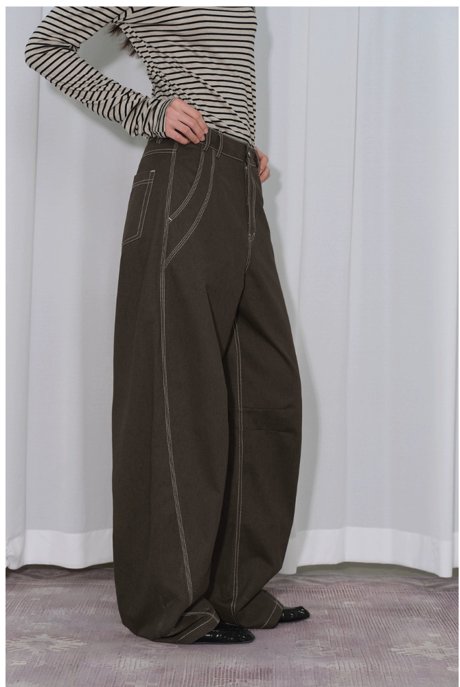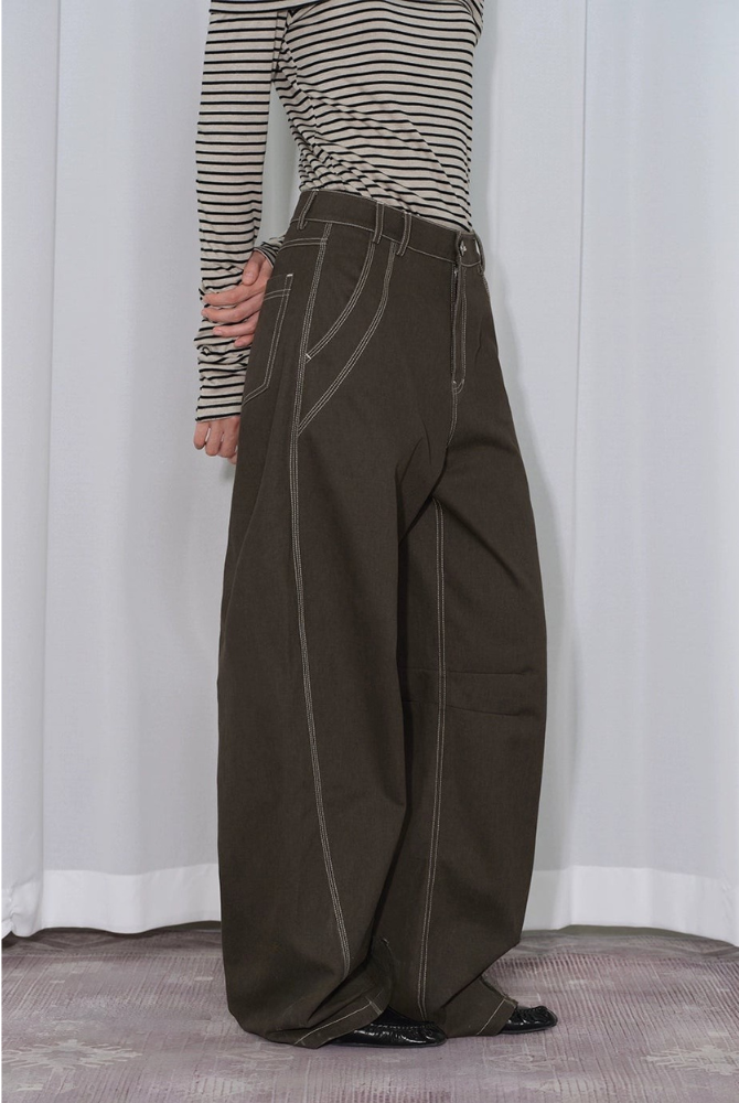 為了增強寬褲的雕塑感輪廓,褲子的輪廓採用了對比色縫線,增加了設計的視覺層次,並凸顯了精湛的工藝。