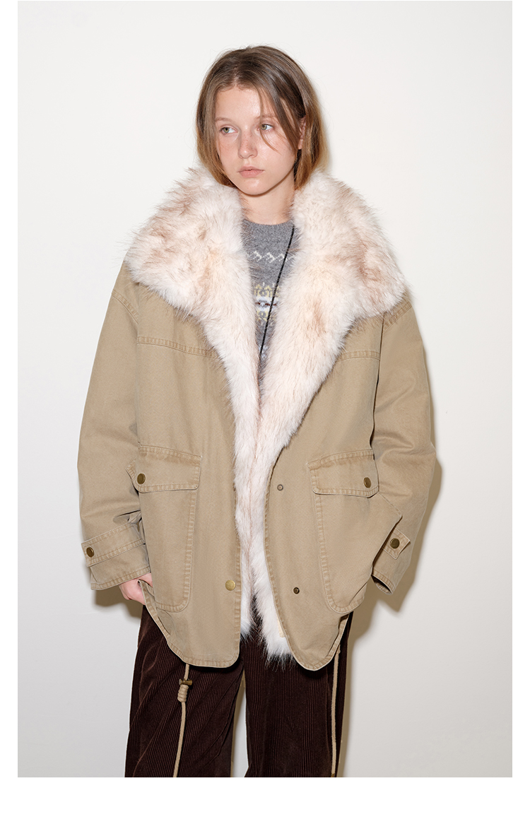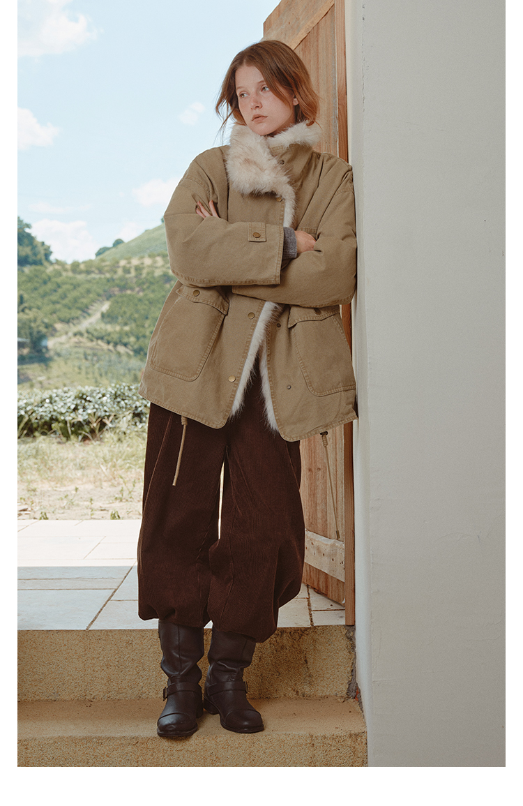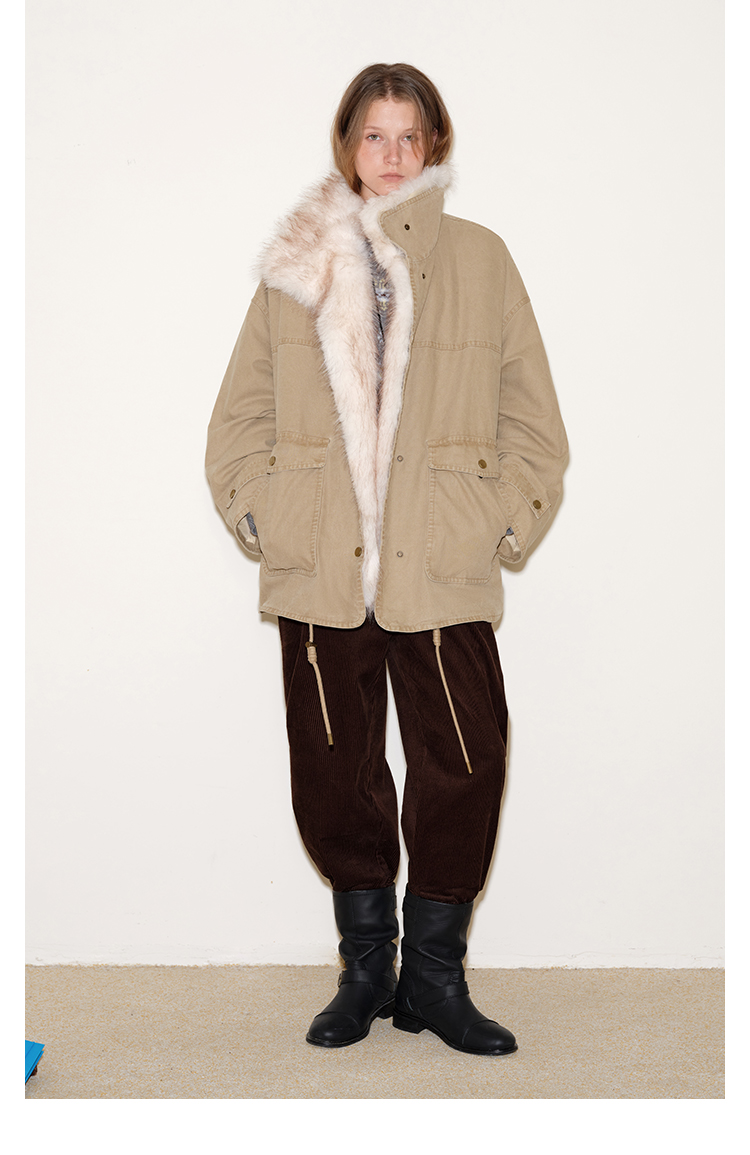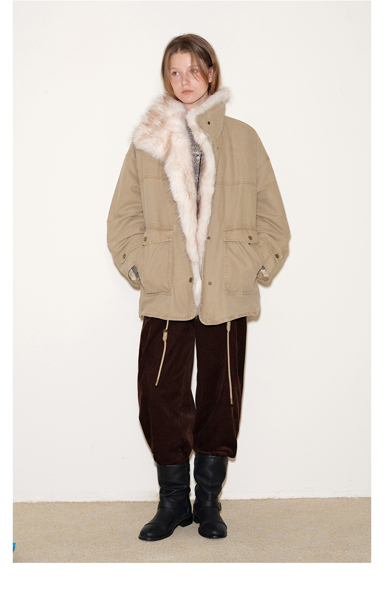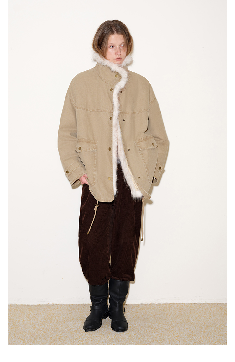 雙向領子內襯溫暖的人造毛皮,可實現多種多樣的造型。
