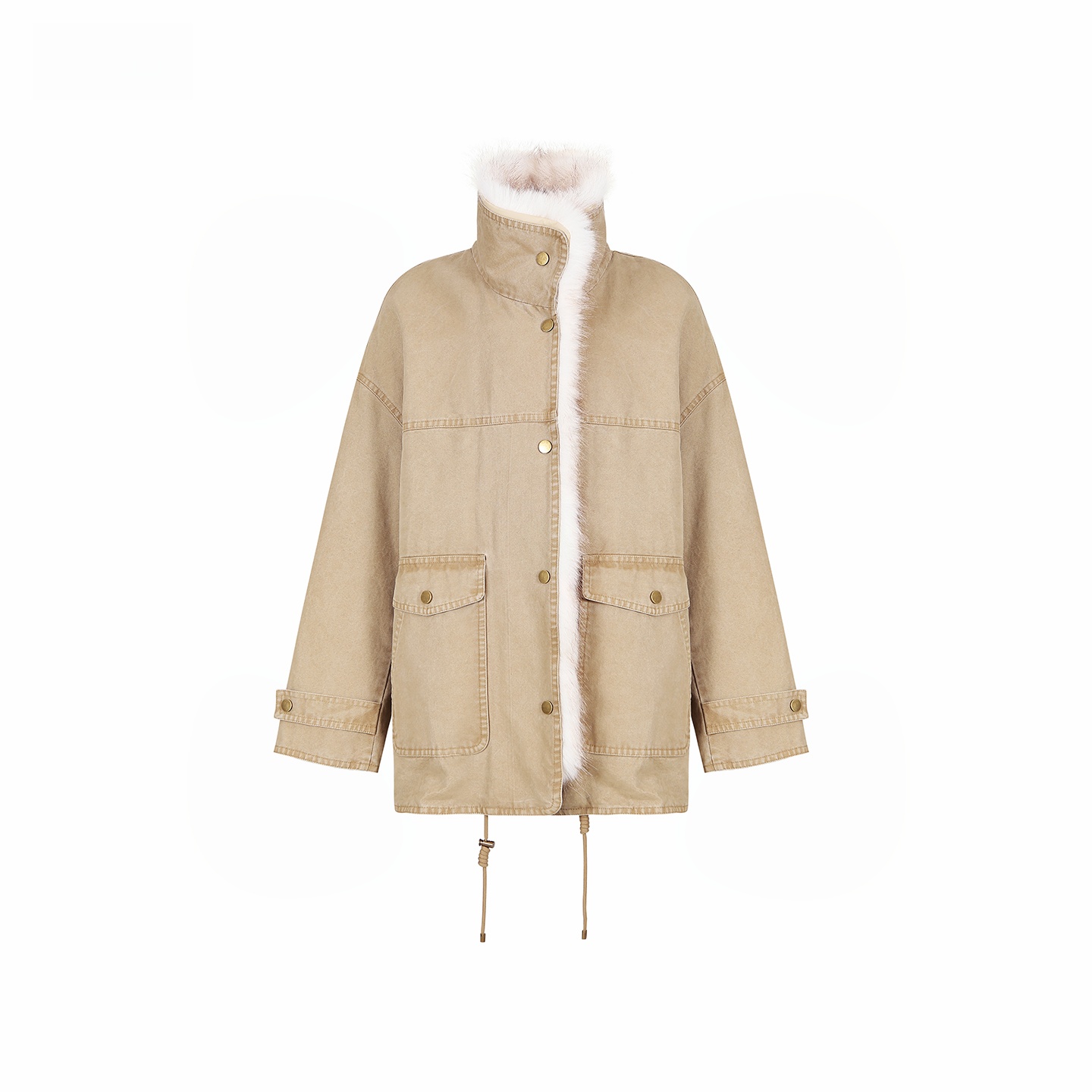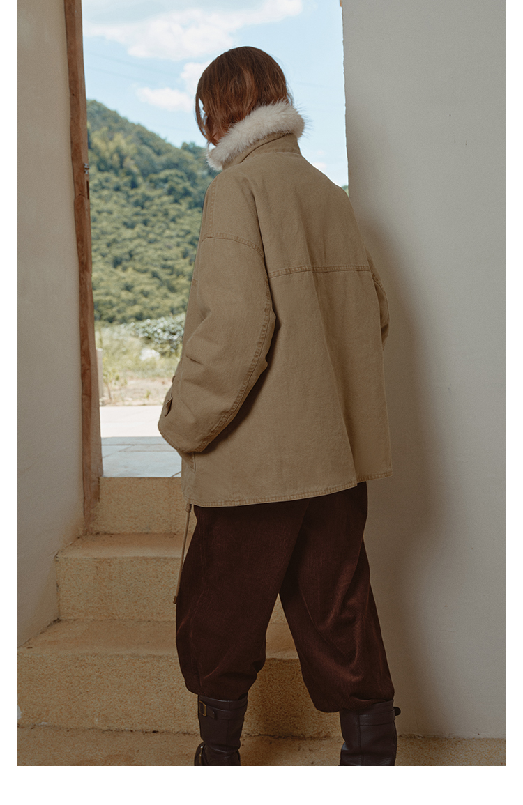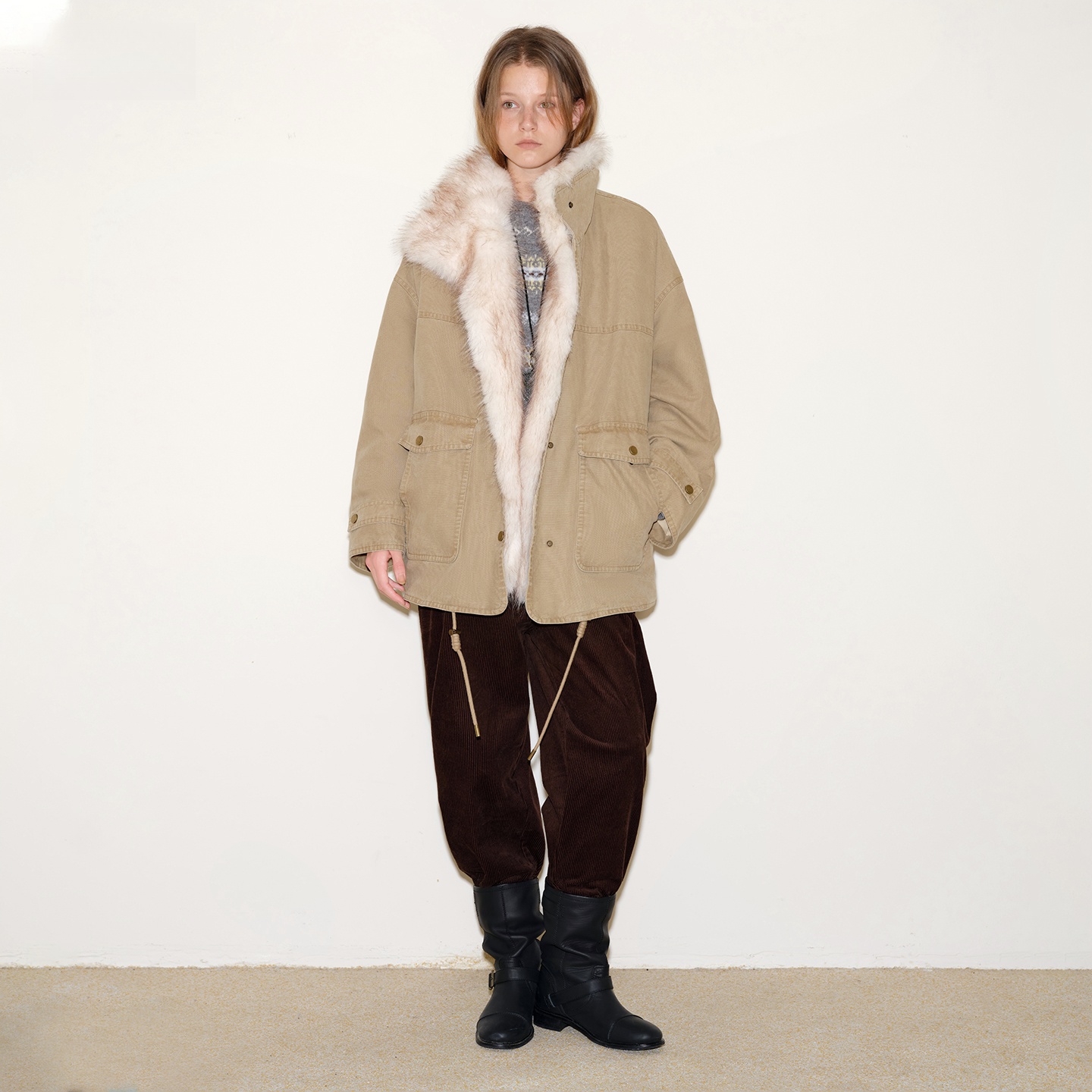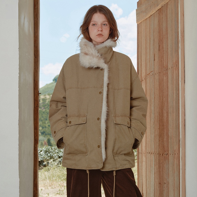 雙向領子內襯溫暖的人造毛皮,可實現多種多樣的造型。