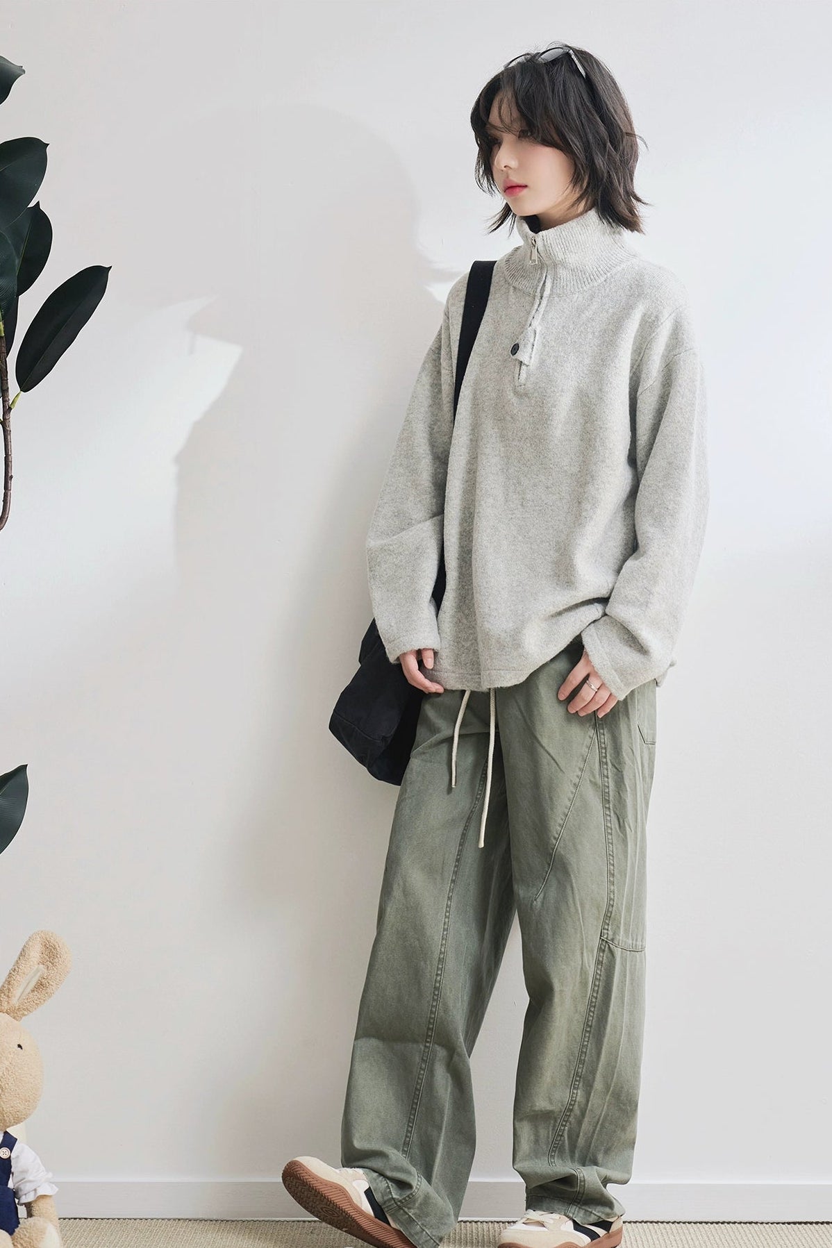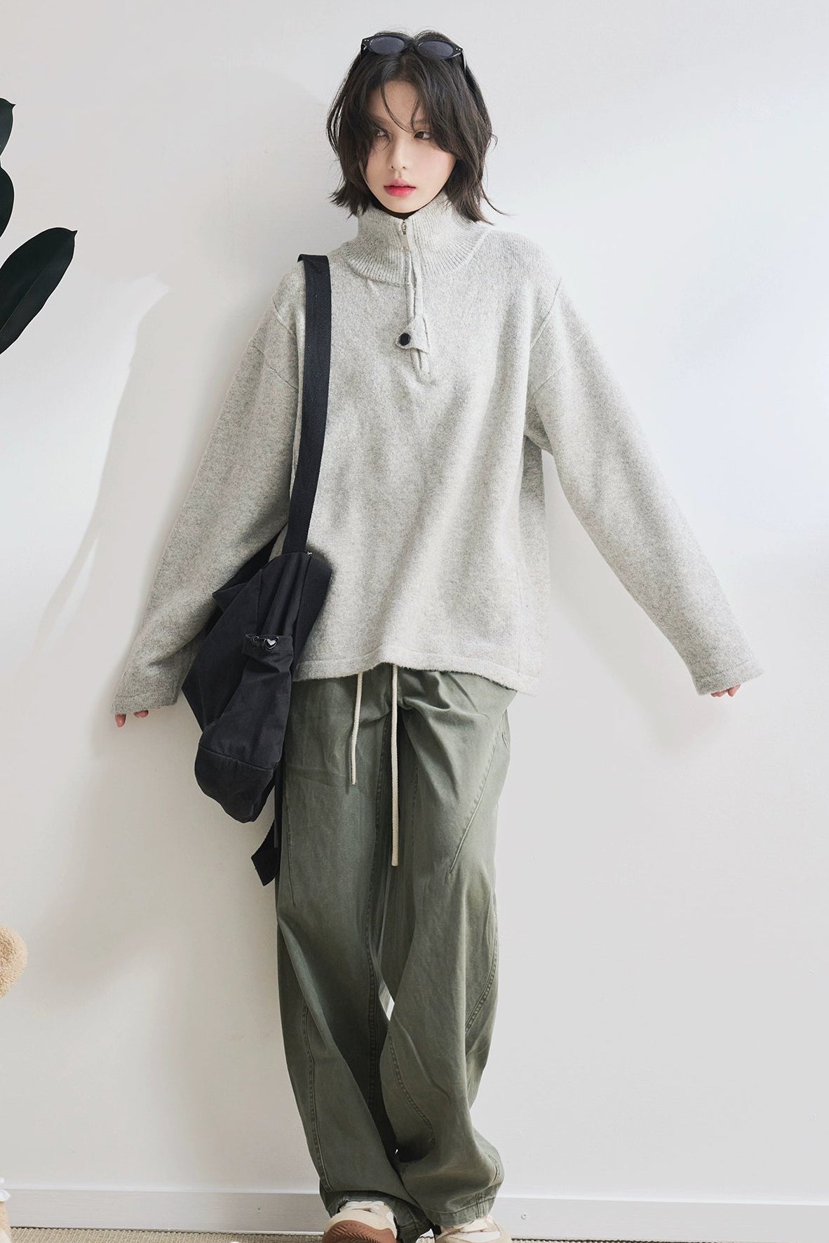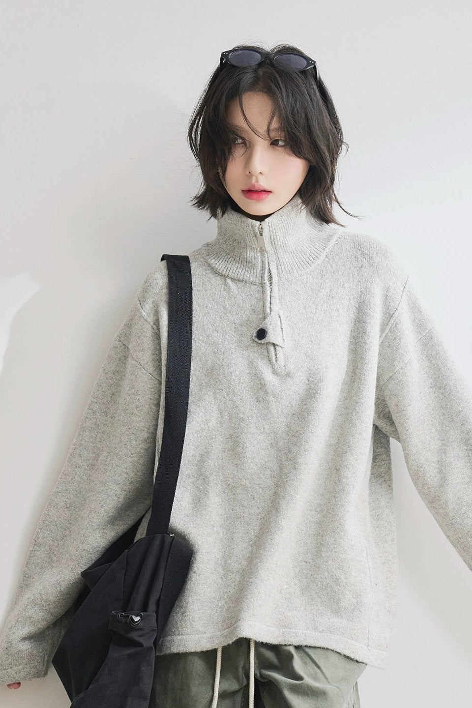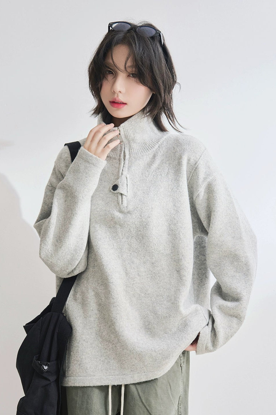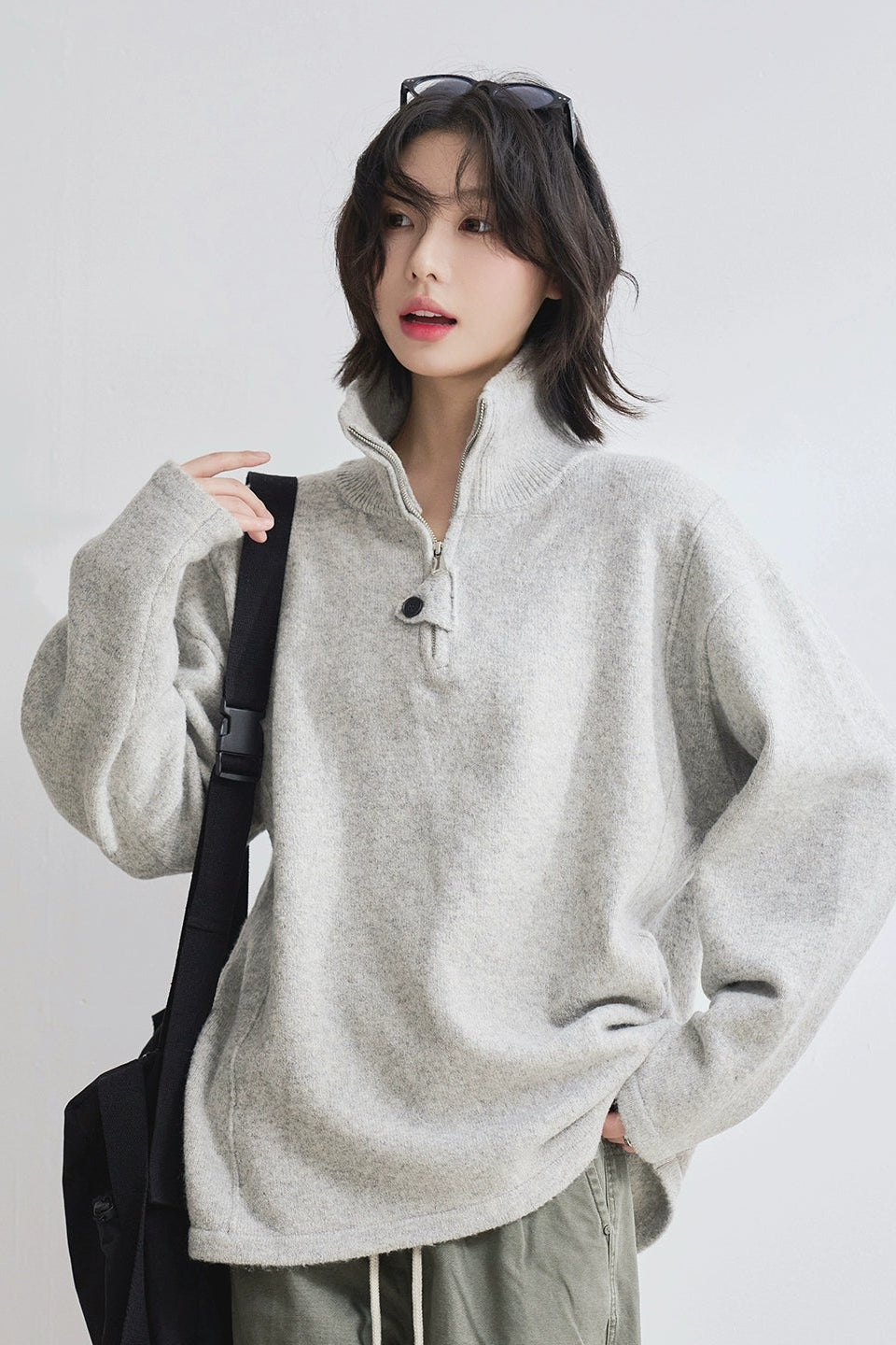 高領拉鍊寬鬆毛衣 B4429