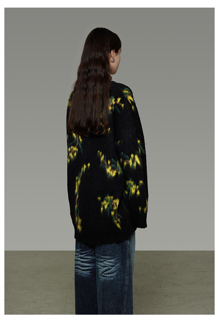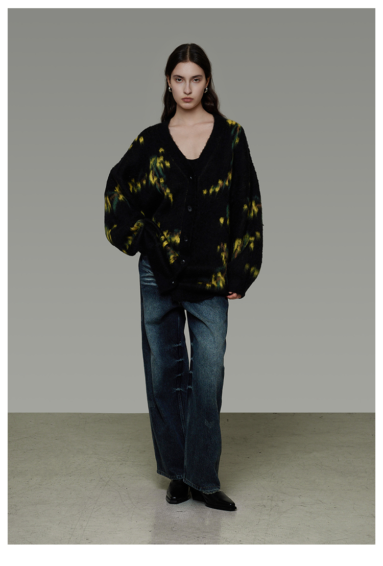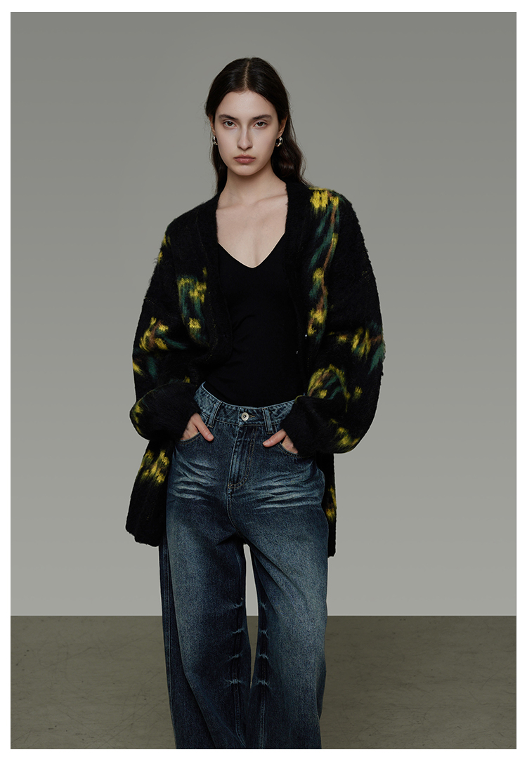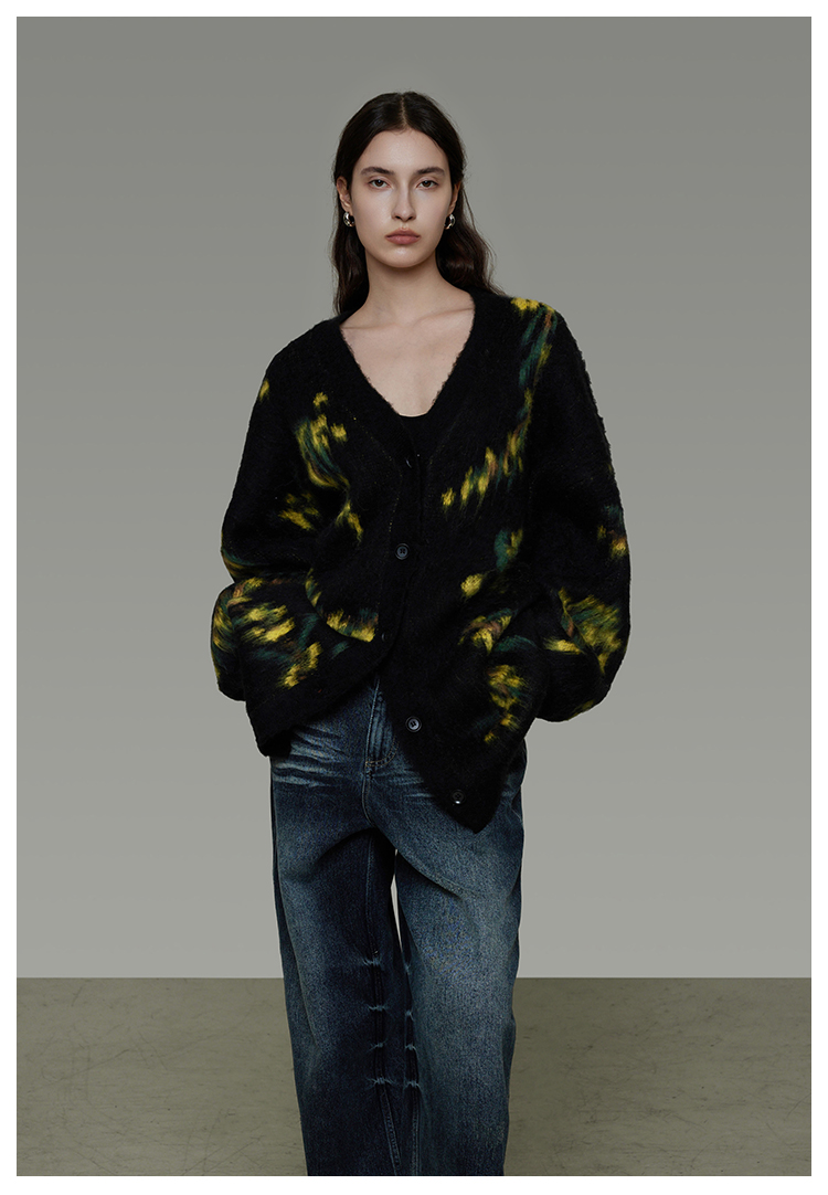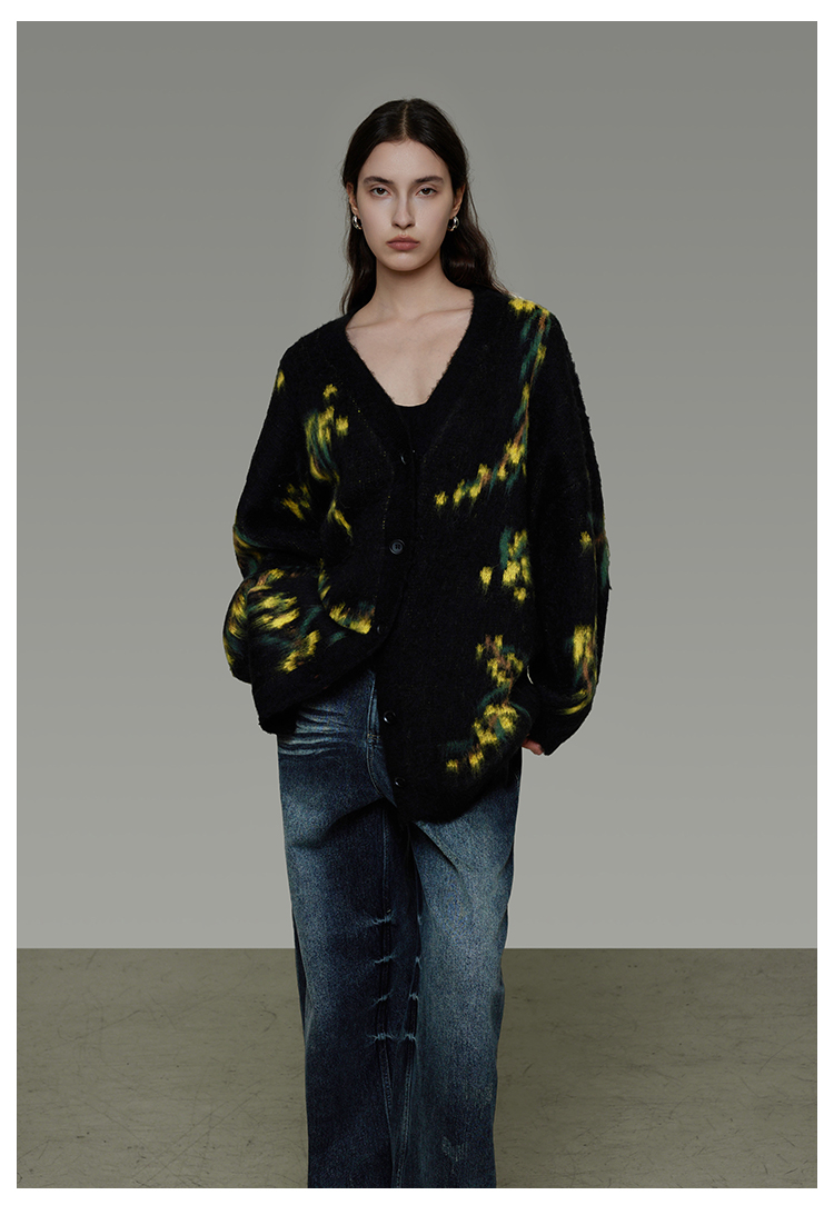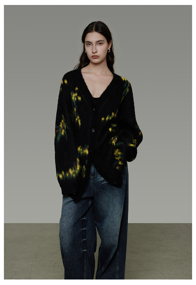 復古寬鬆V領針織開襟衫 B4443