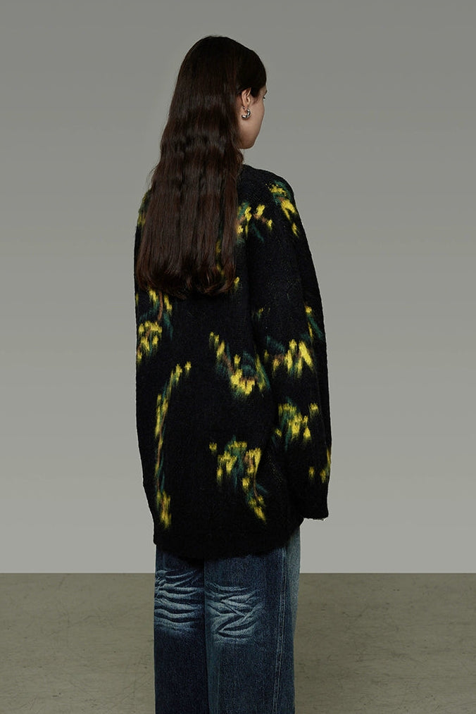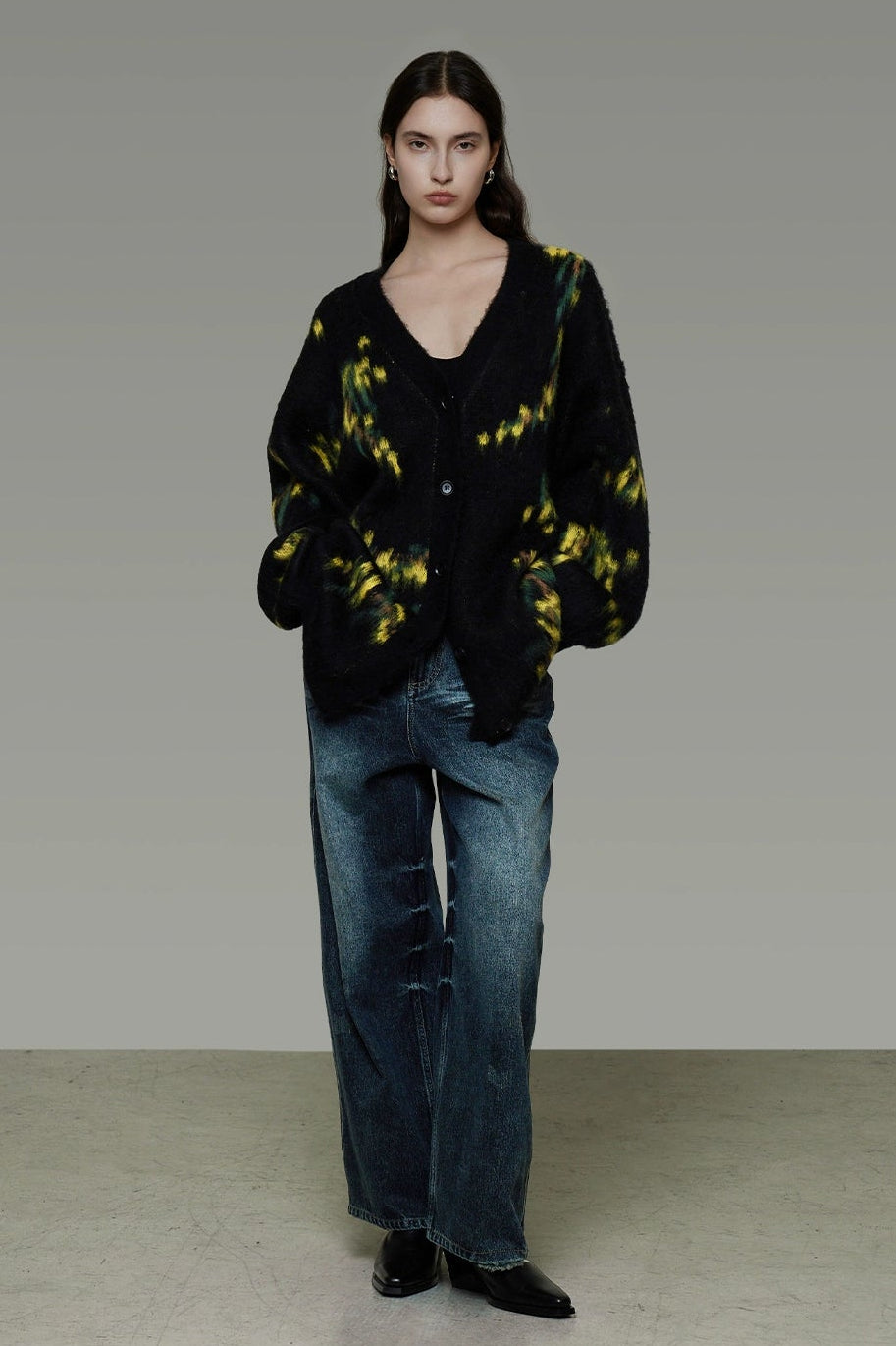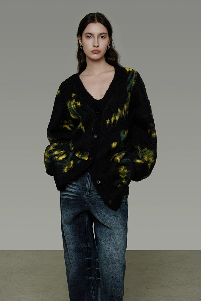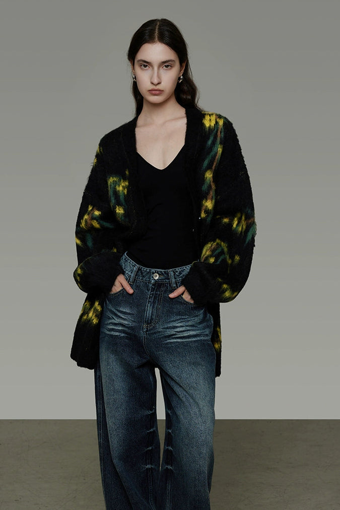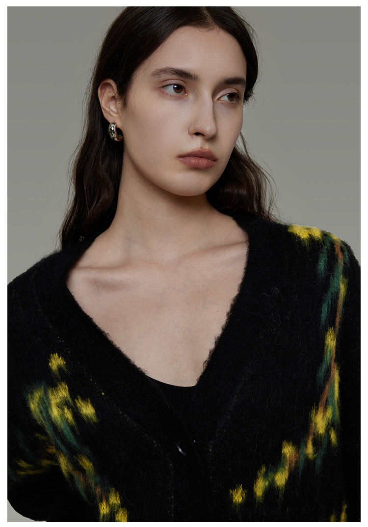 復古寬鬆V領針織開襟衫 B4443