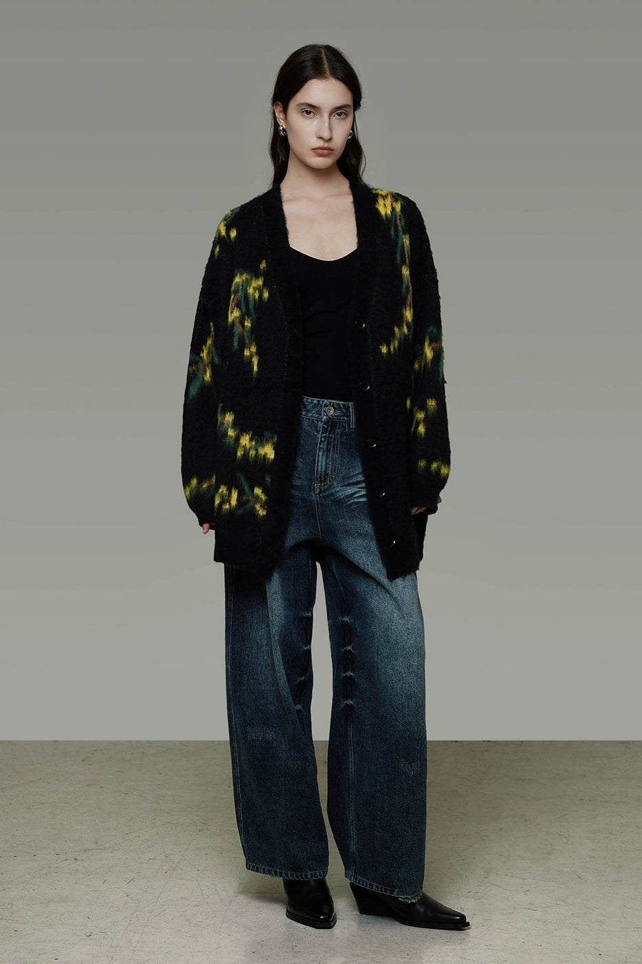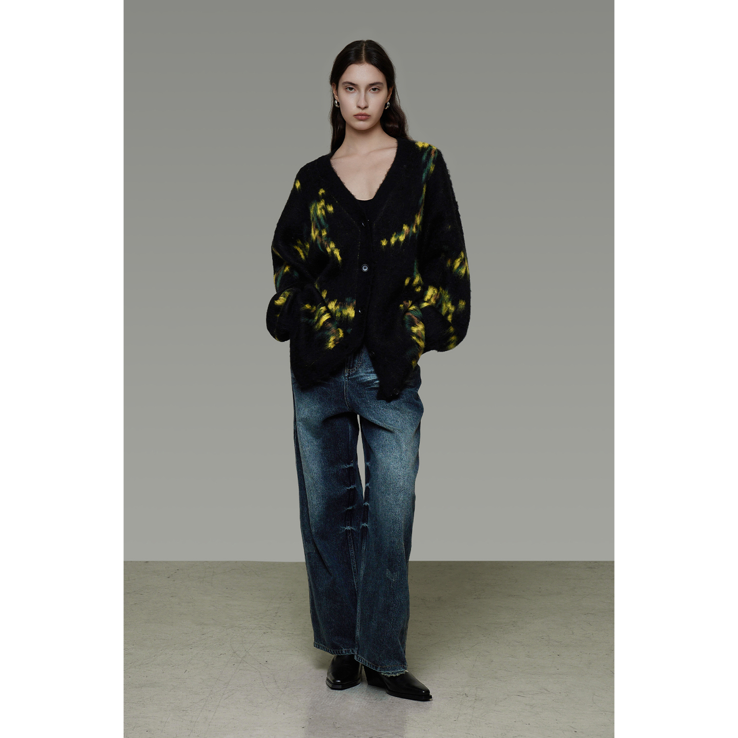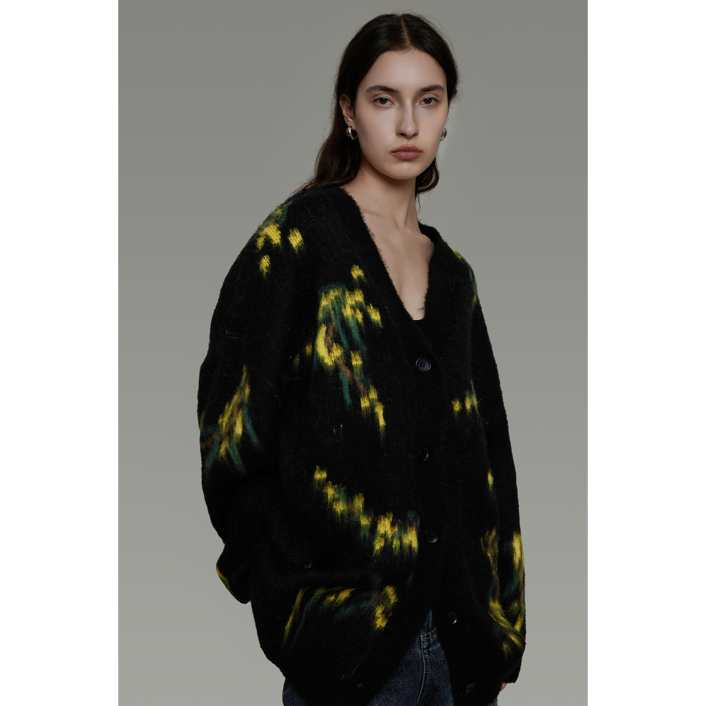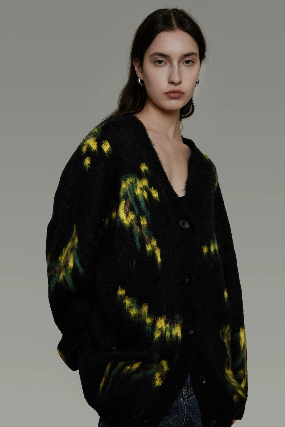 復古寬鬆V領針織開襟衫 B4443