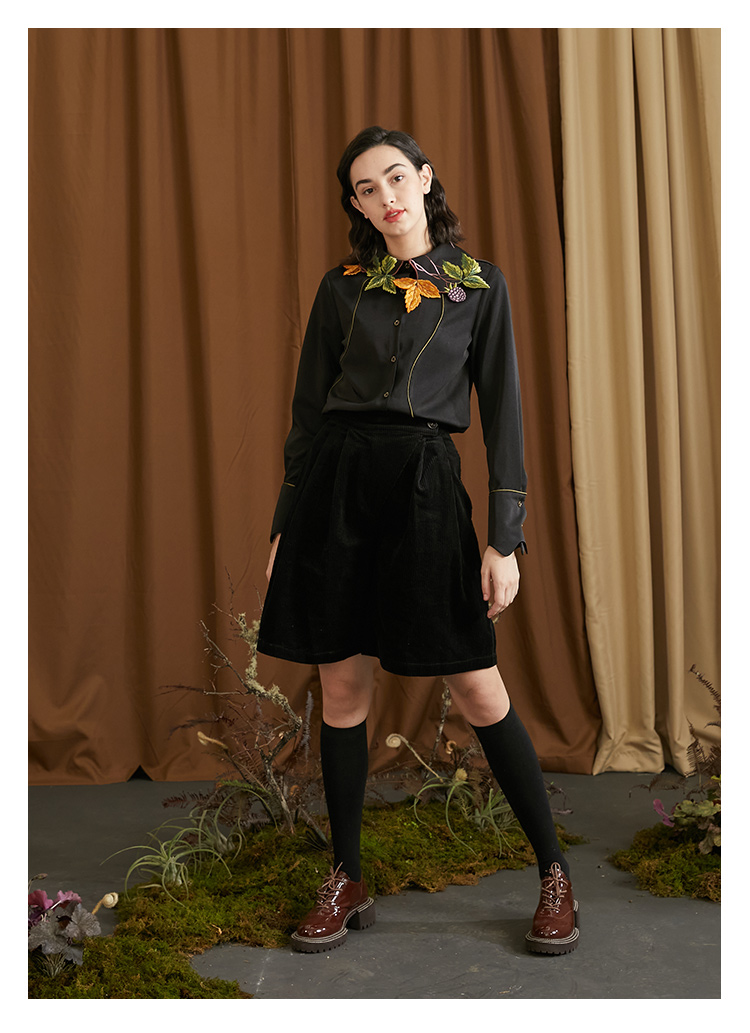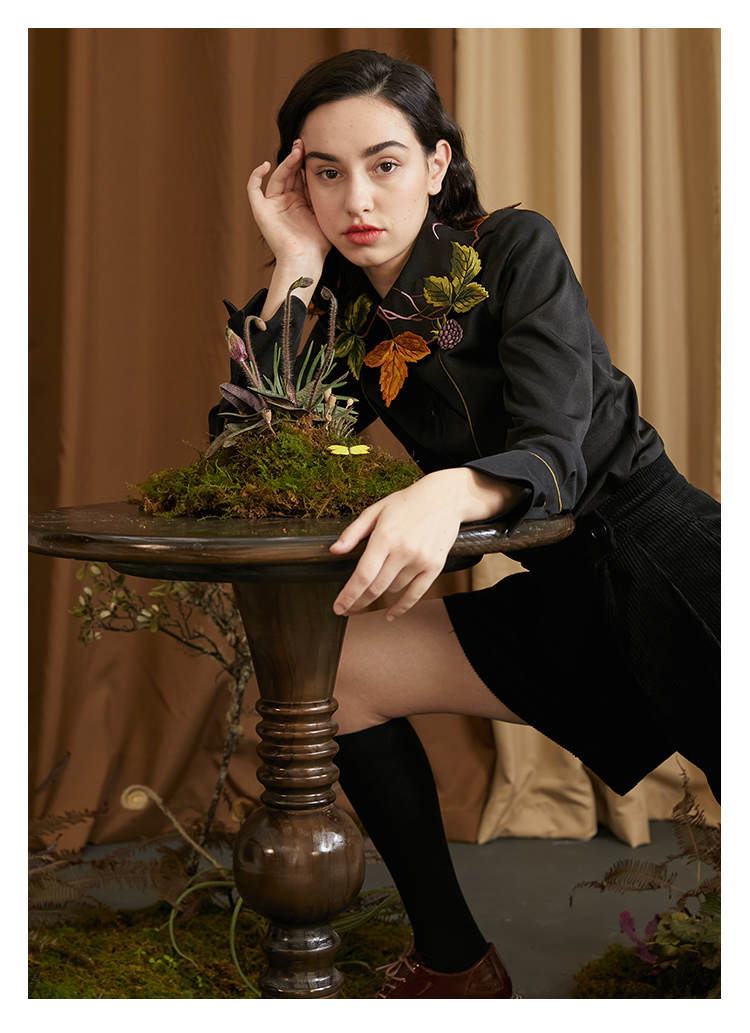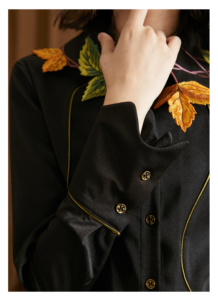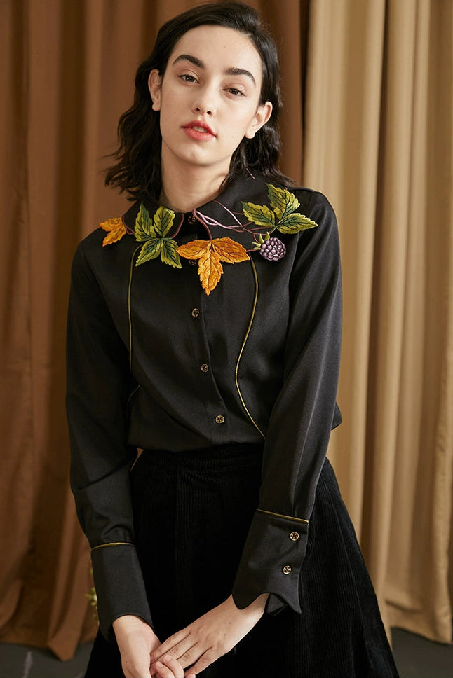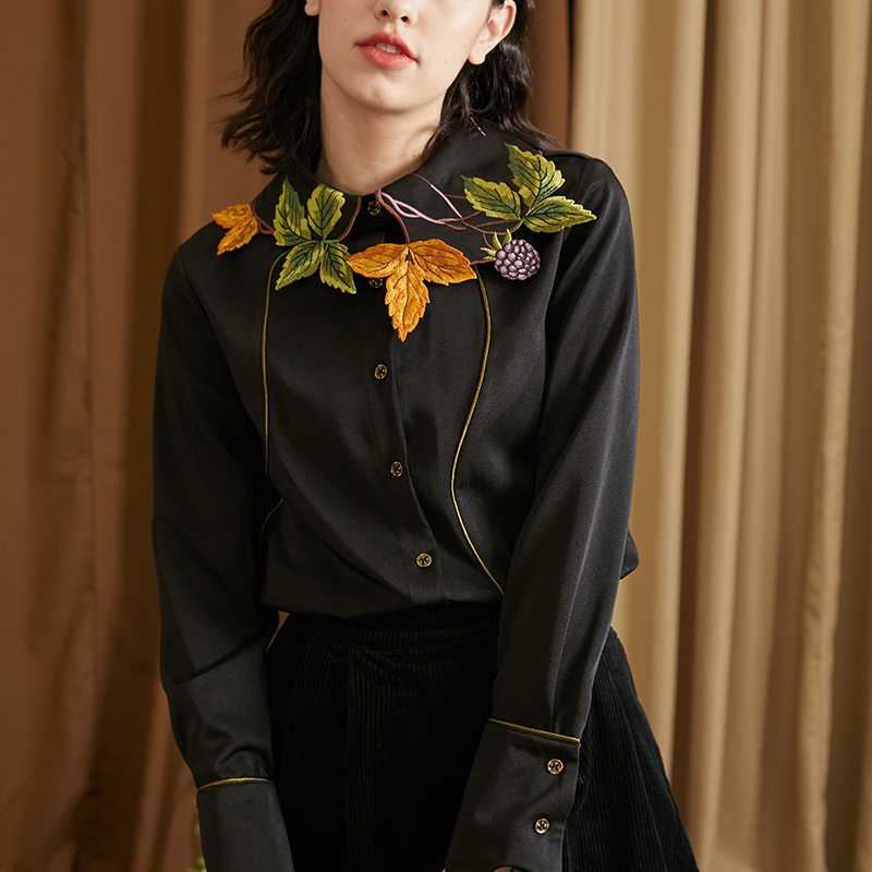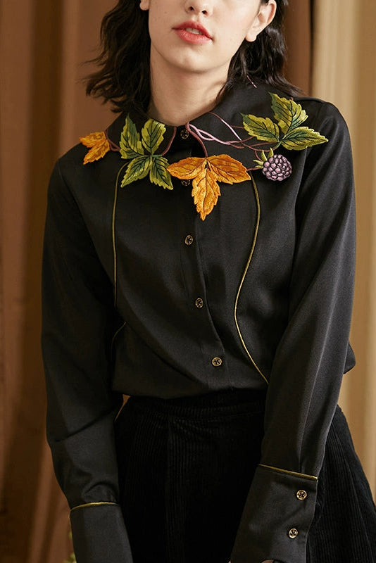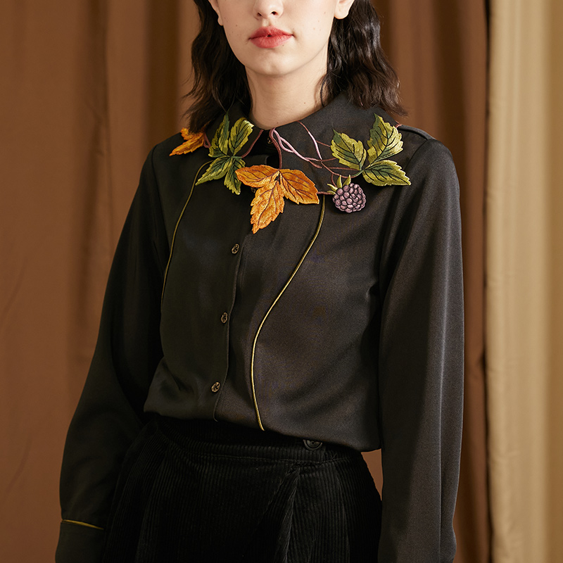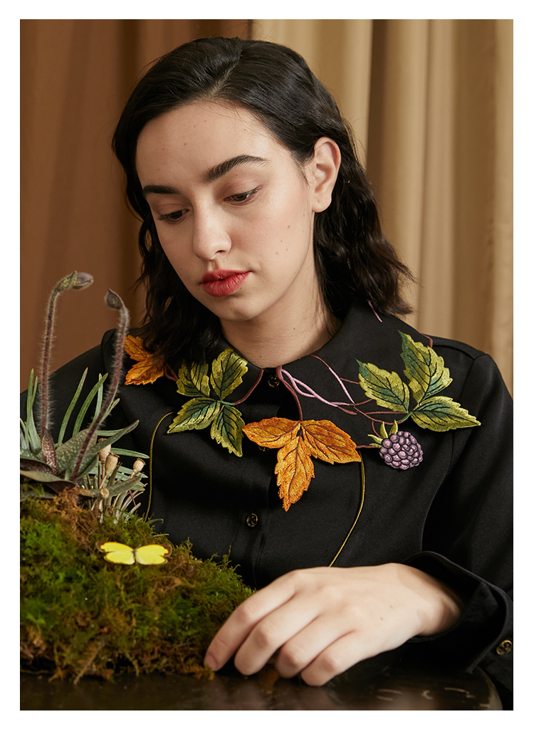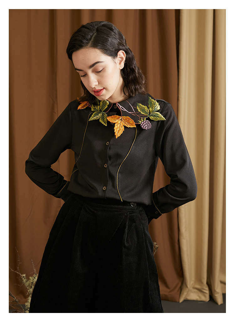 襯衫(葉子和黑莓刺繡圖案優雅別緻,能提亮膚色。)