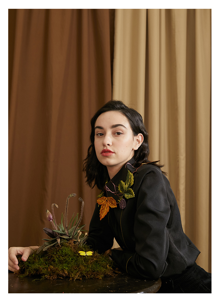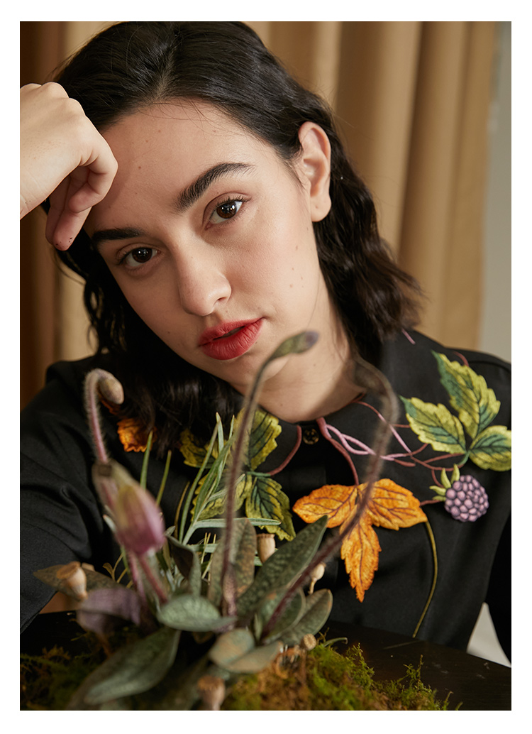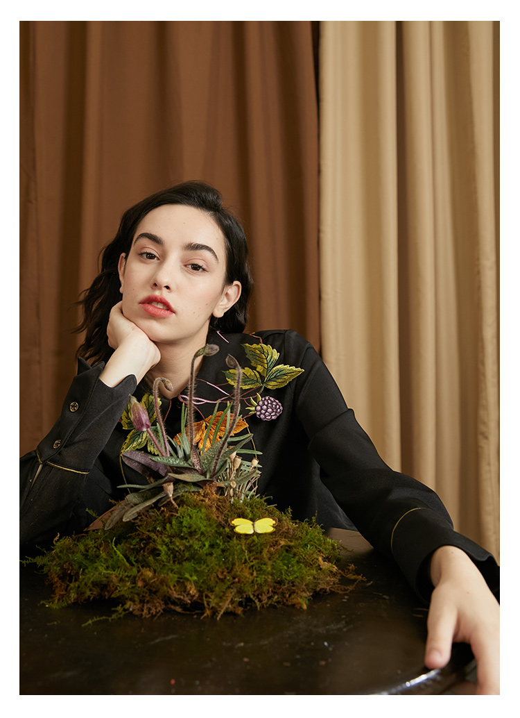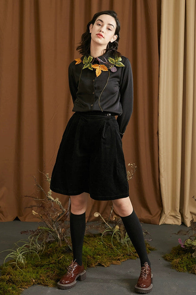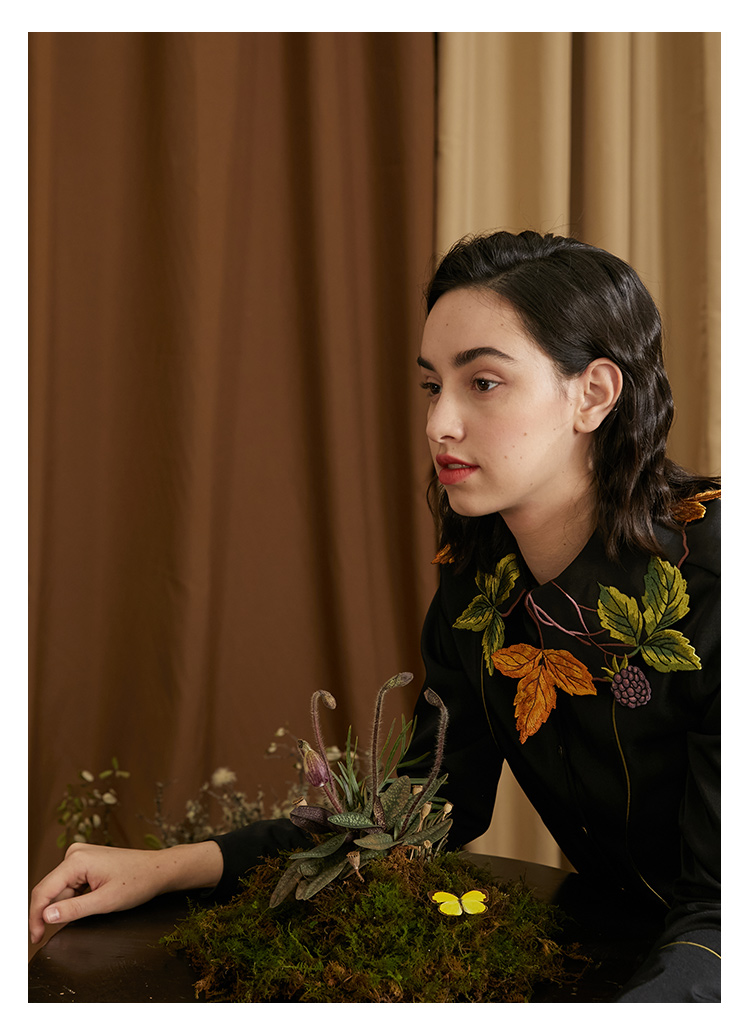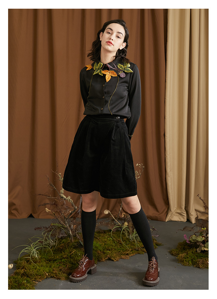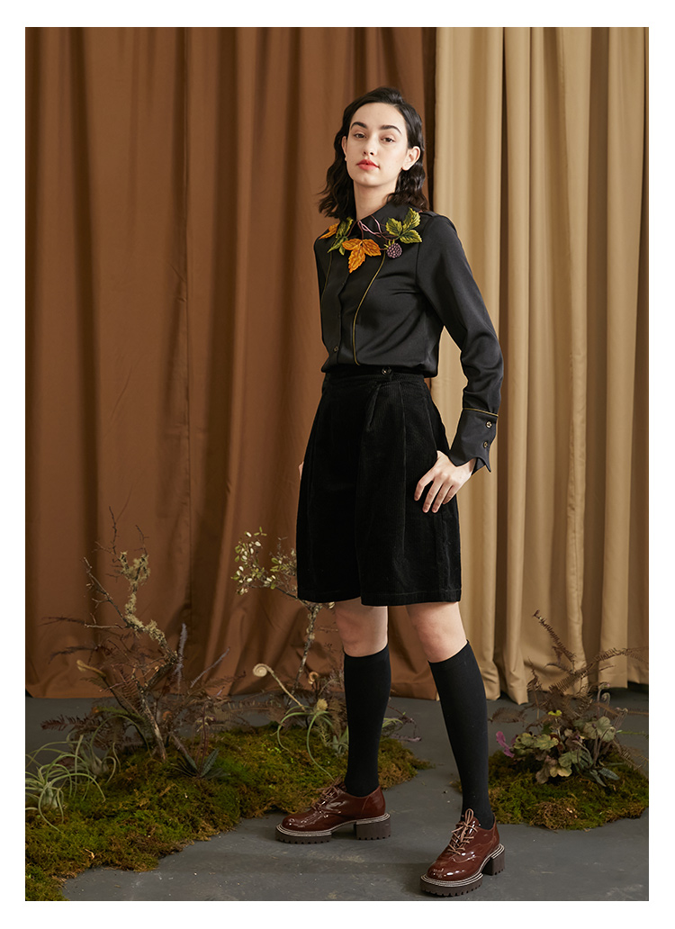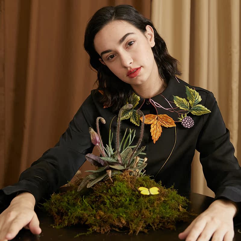 襯衫(葉子和黑莓刺繡圖案優雅別緻,能提亮膚色。)