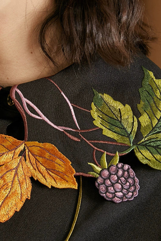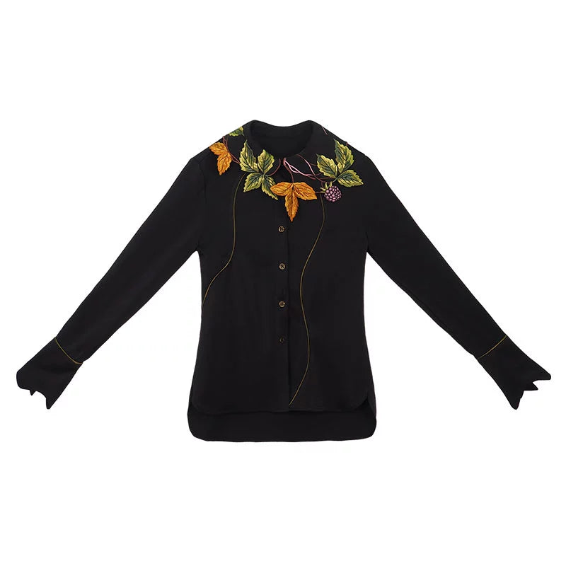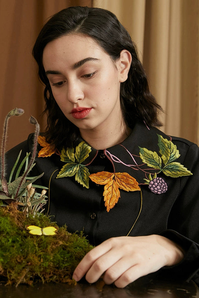 葉子和漿果刺繡領襯衫 B4459