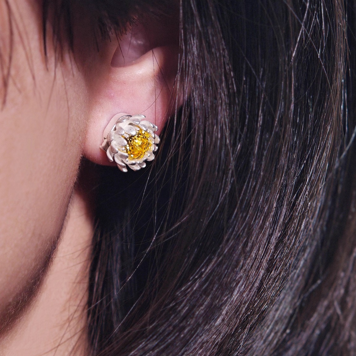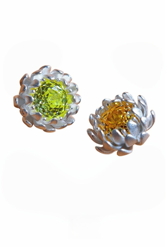 雛菊閃耀鋯石不對稱彩色耳環 B4465