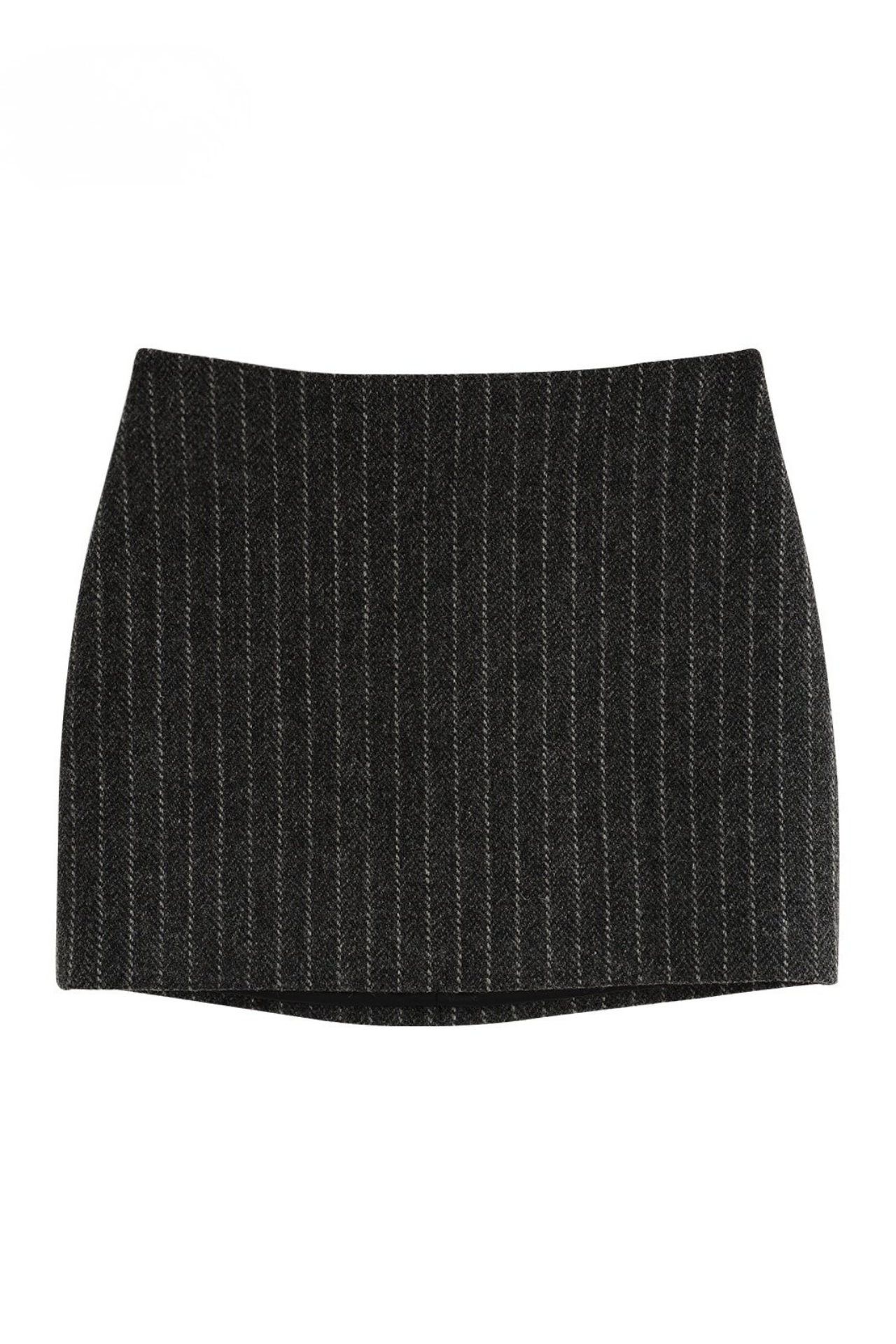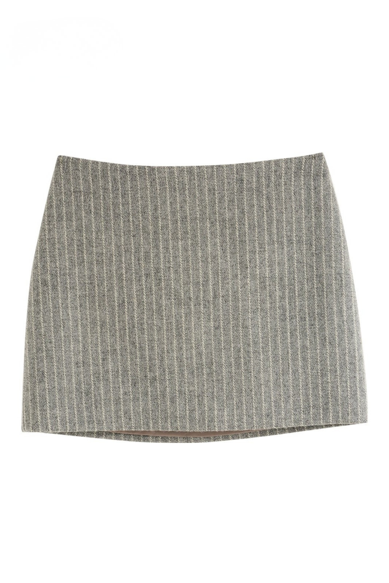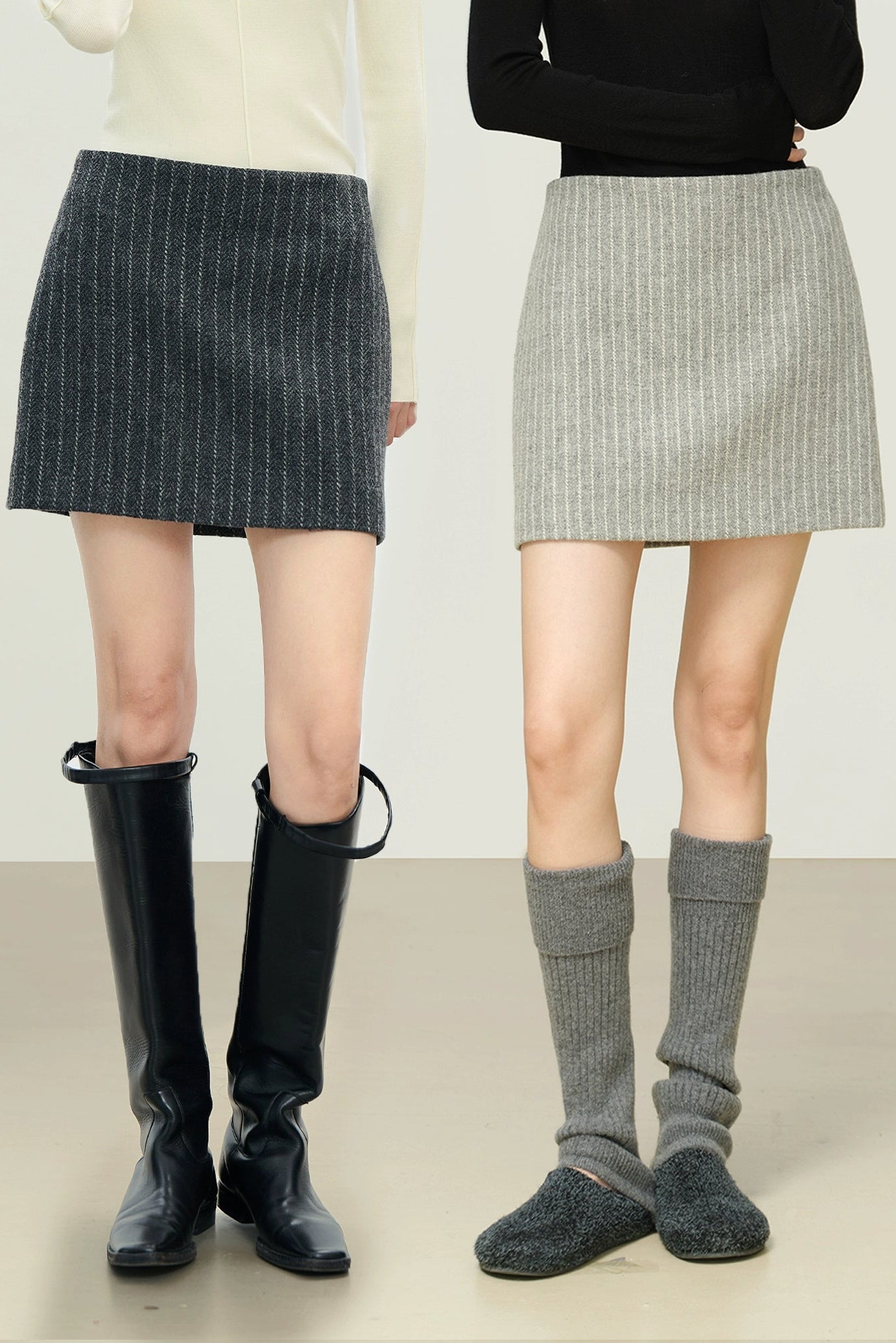 美麗諾羊毛粗呢條紋迷你裙 B4485