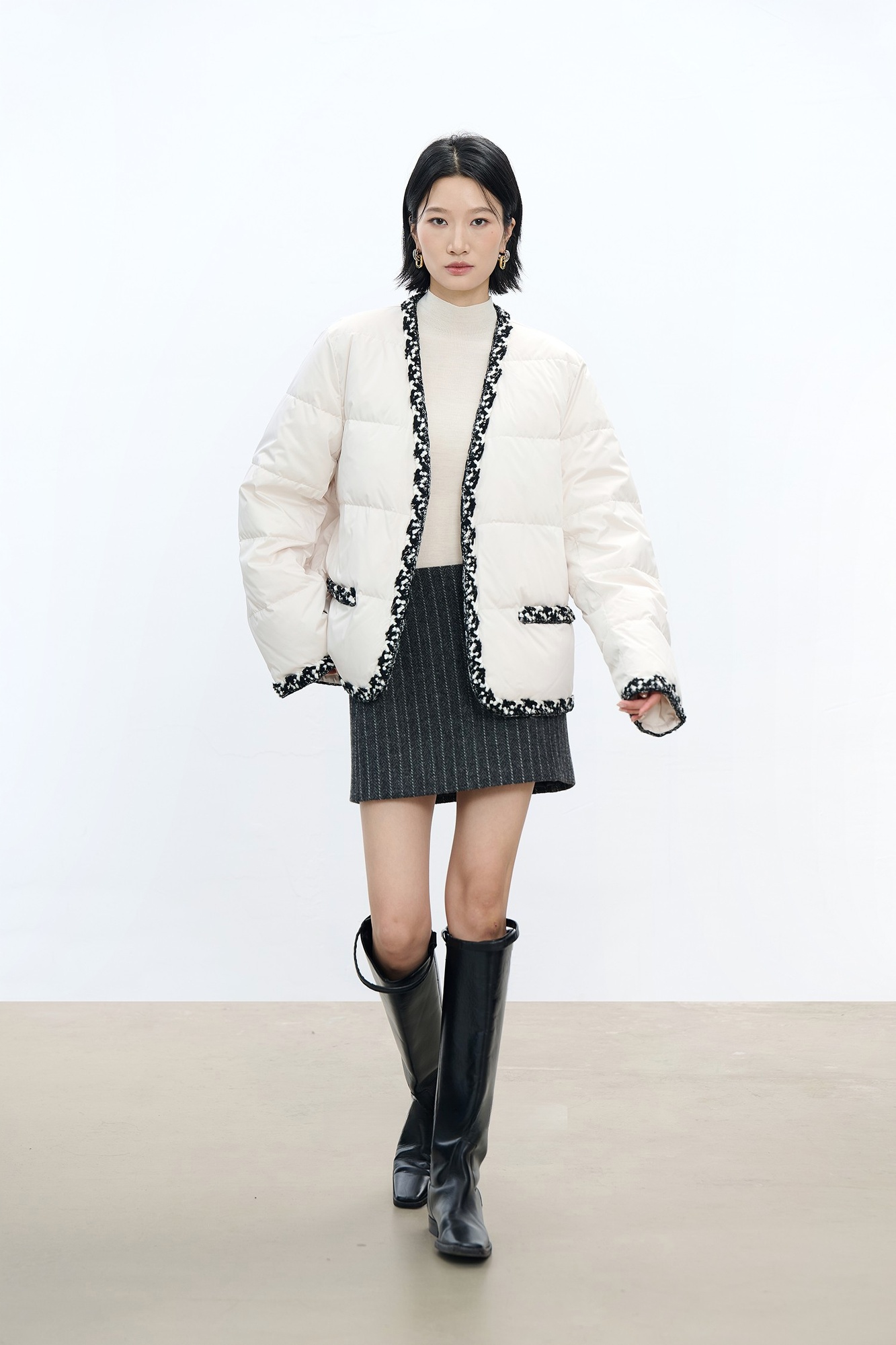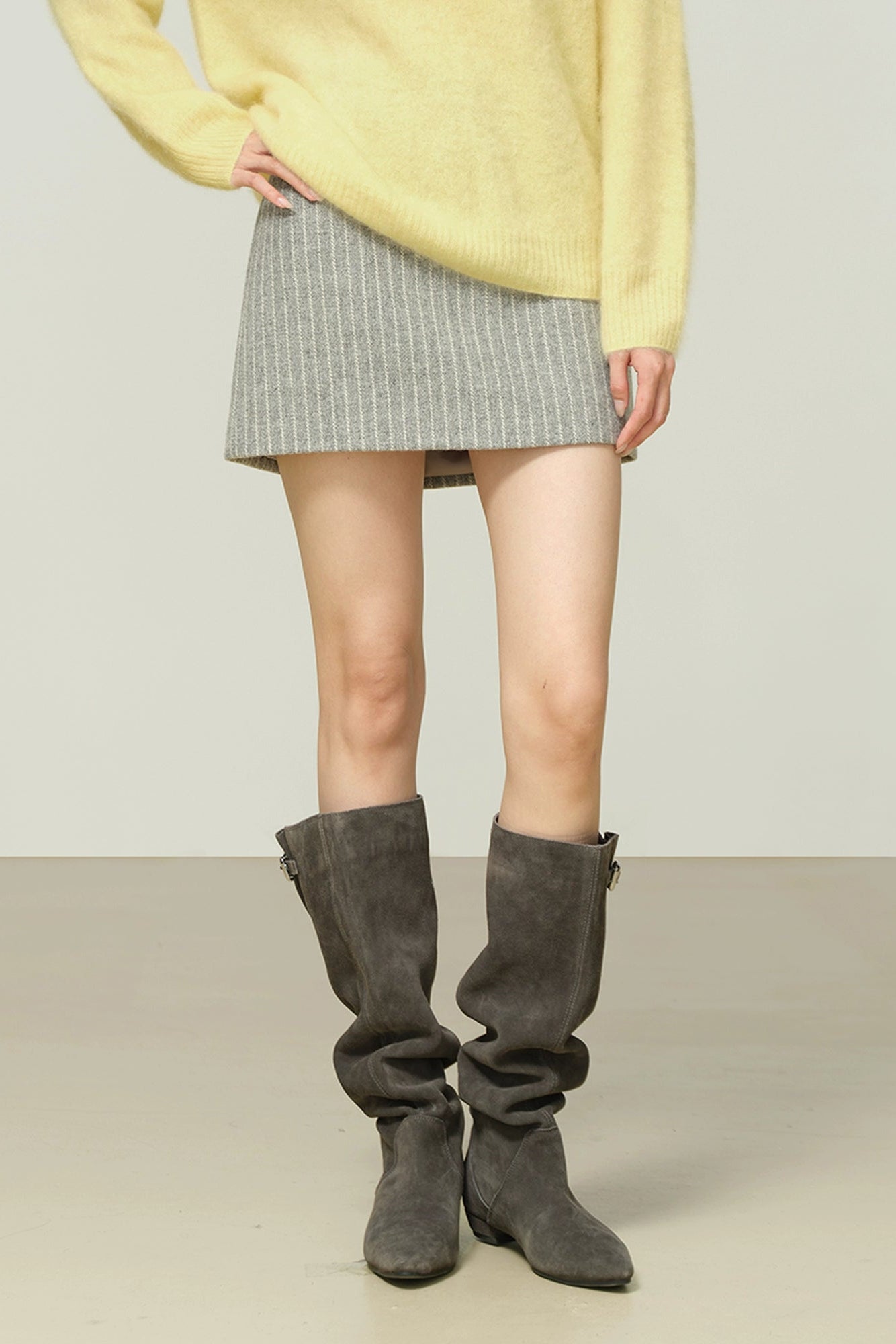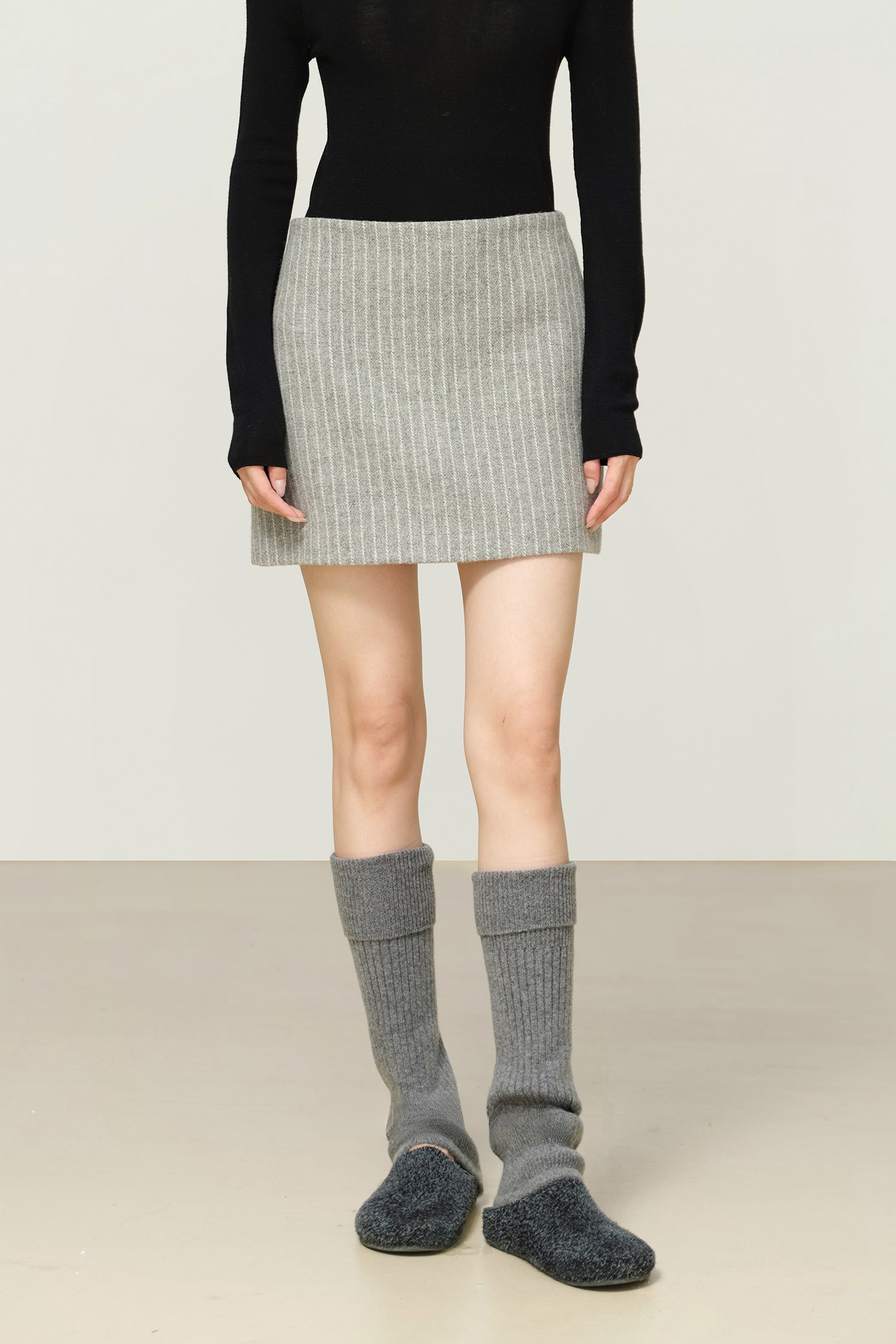 美麗諾羊毛粗呢條紋迷你裙 B4485