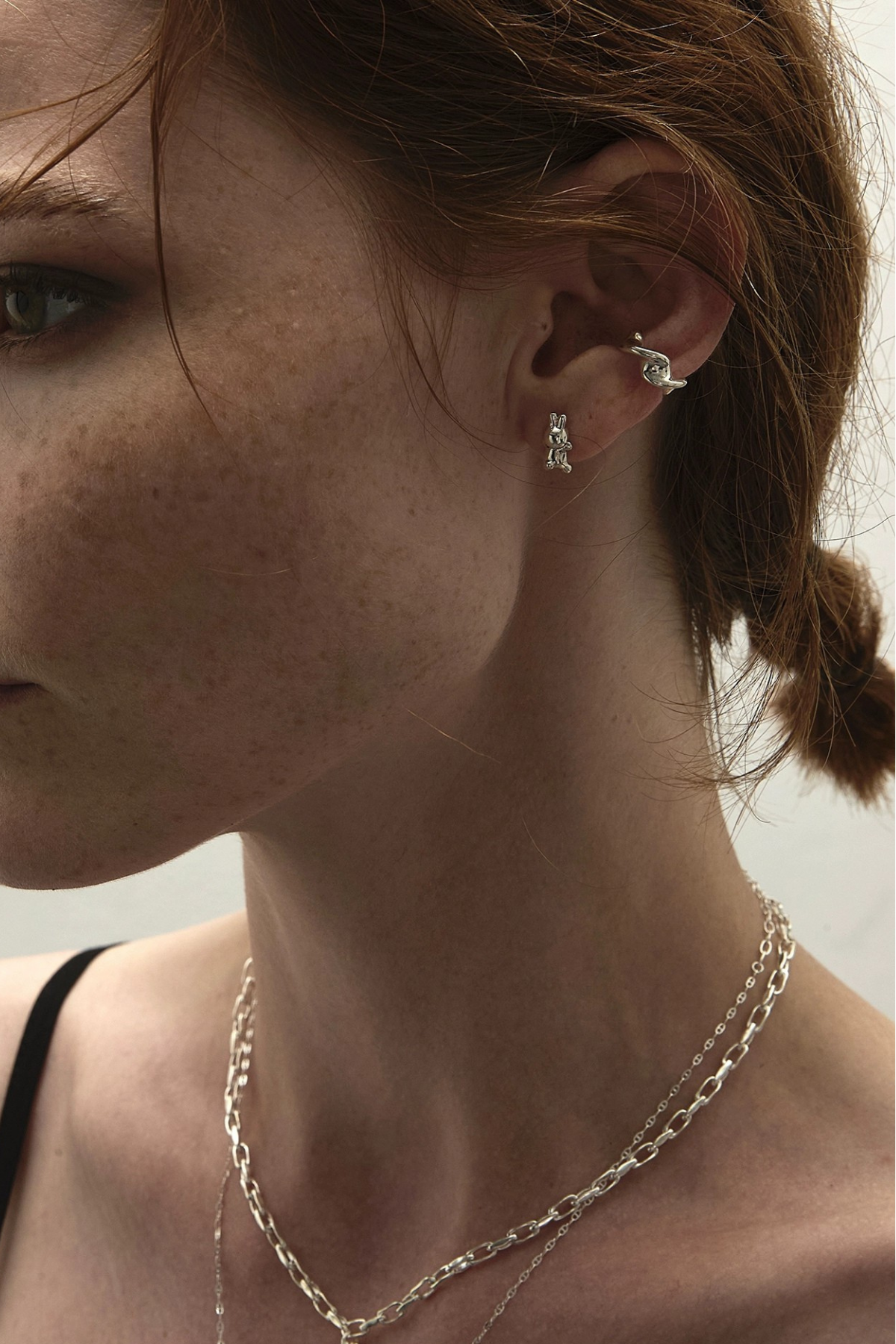 S925 不對稱兔子耳耳環和耳夾 B4497