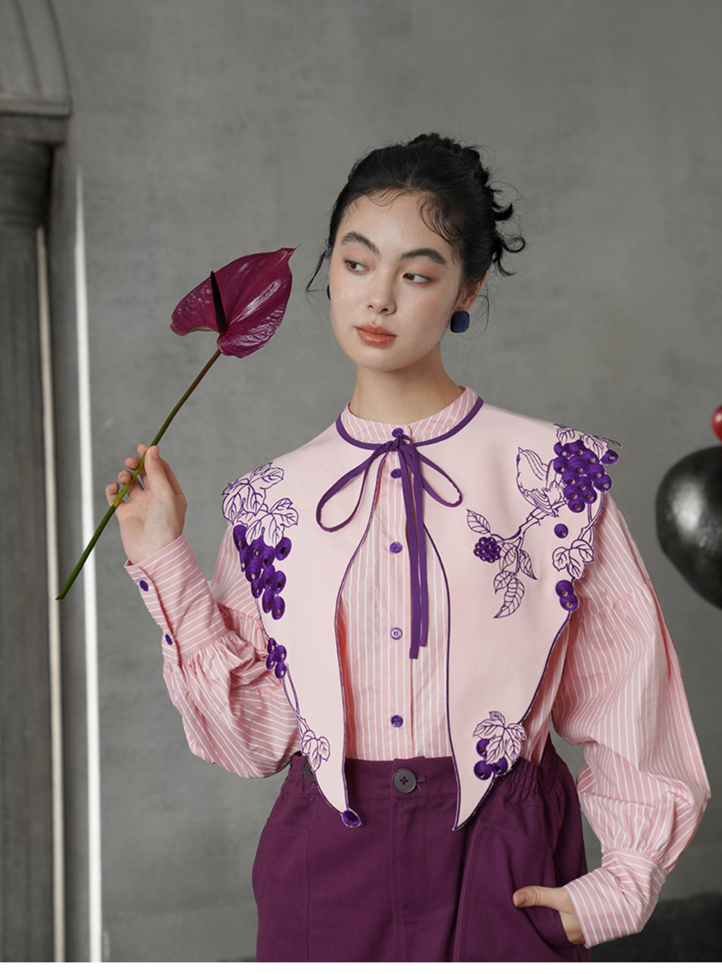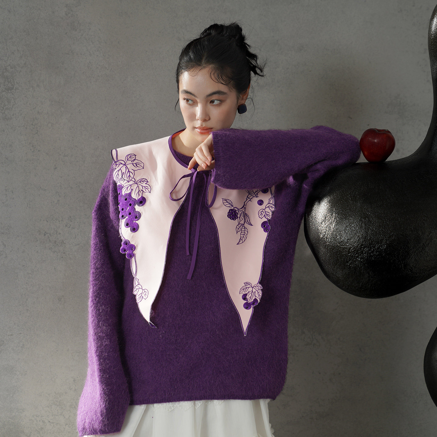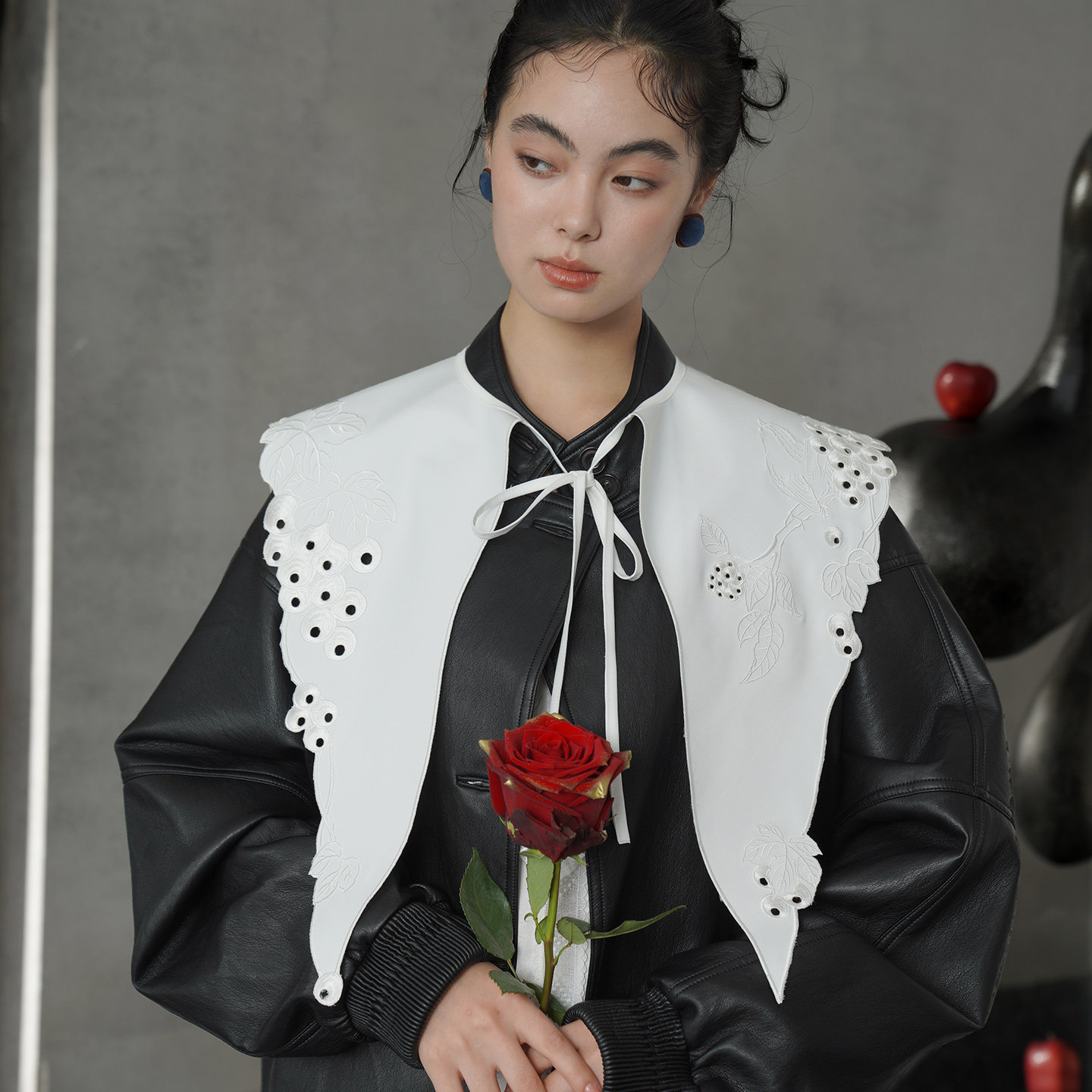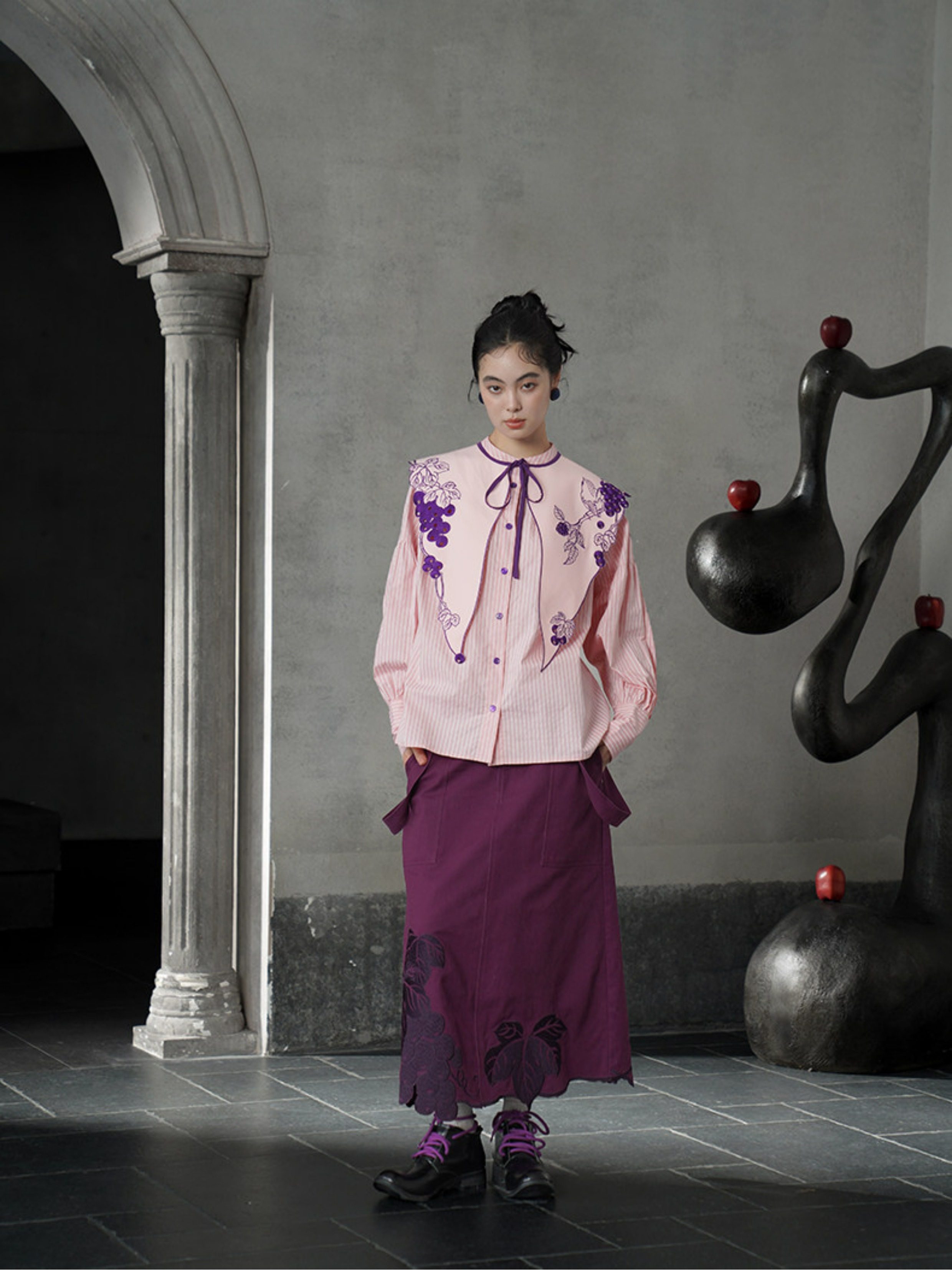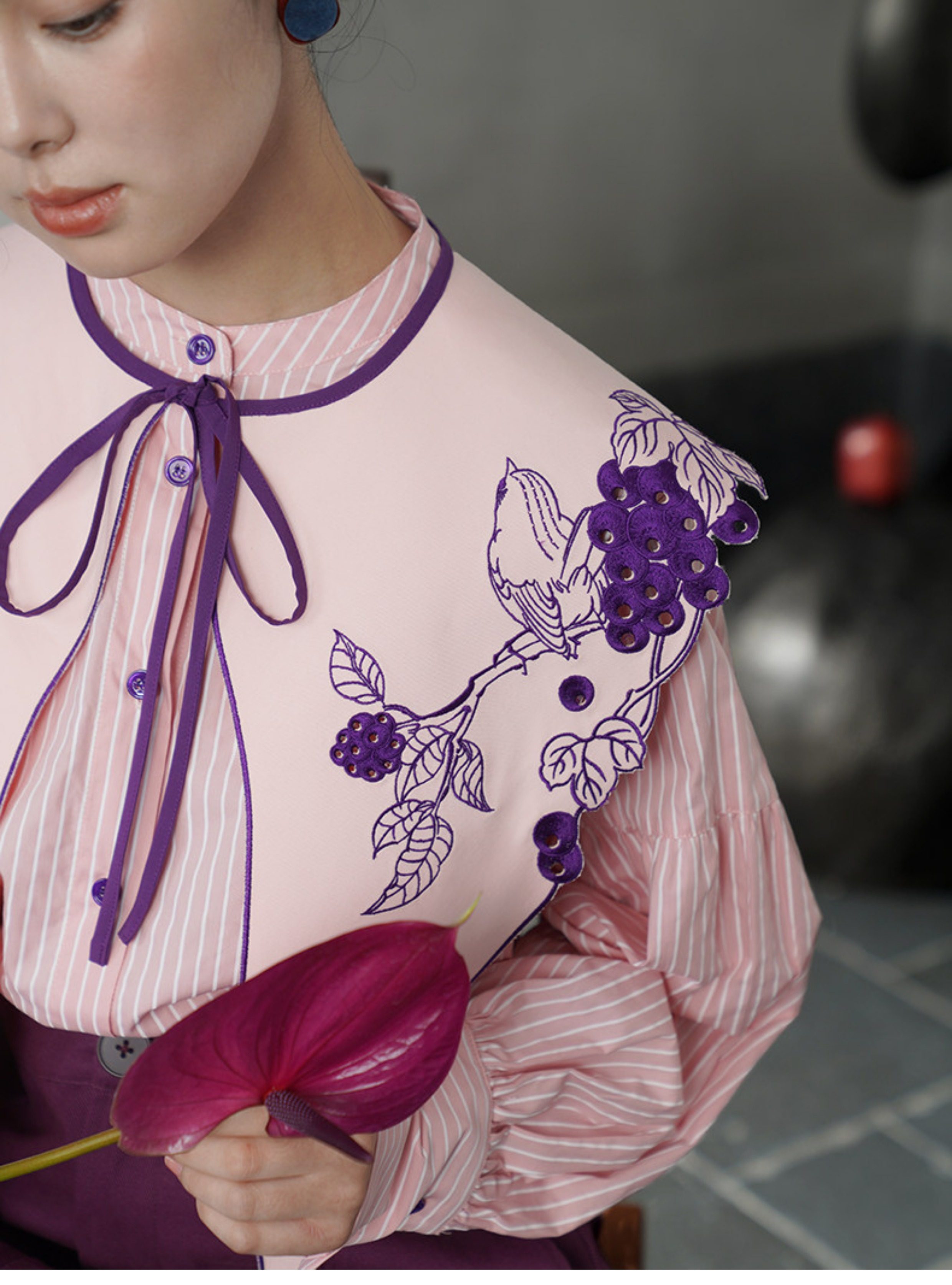 刺繡圖案融合了甜美與冷峻的意象。