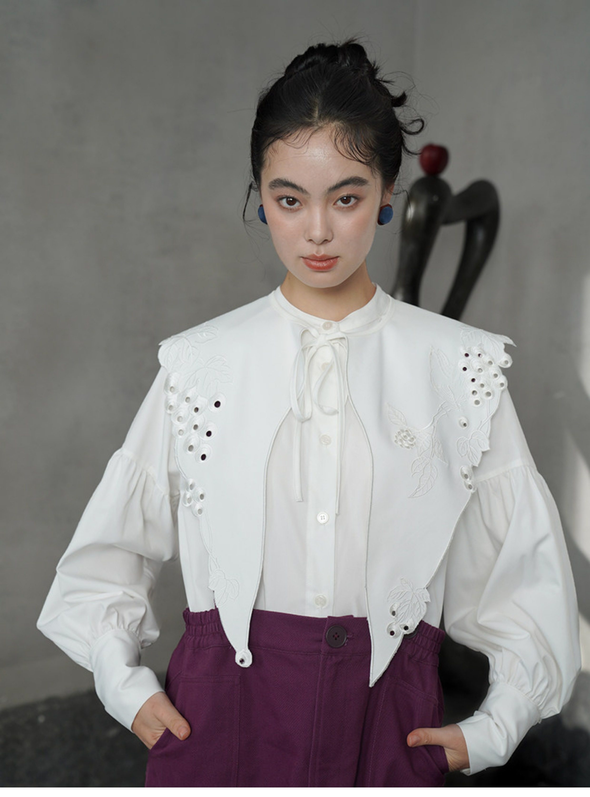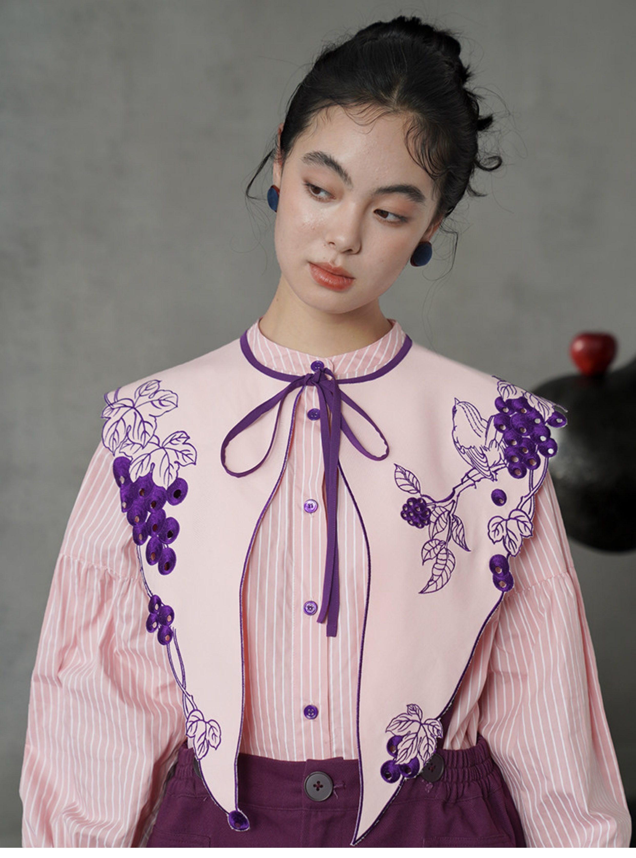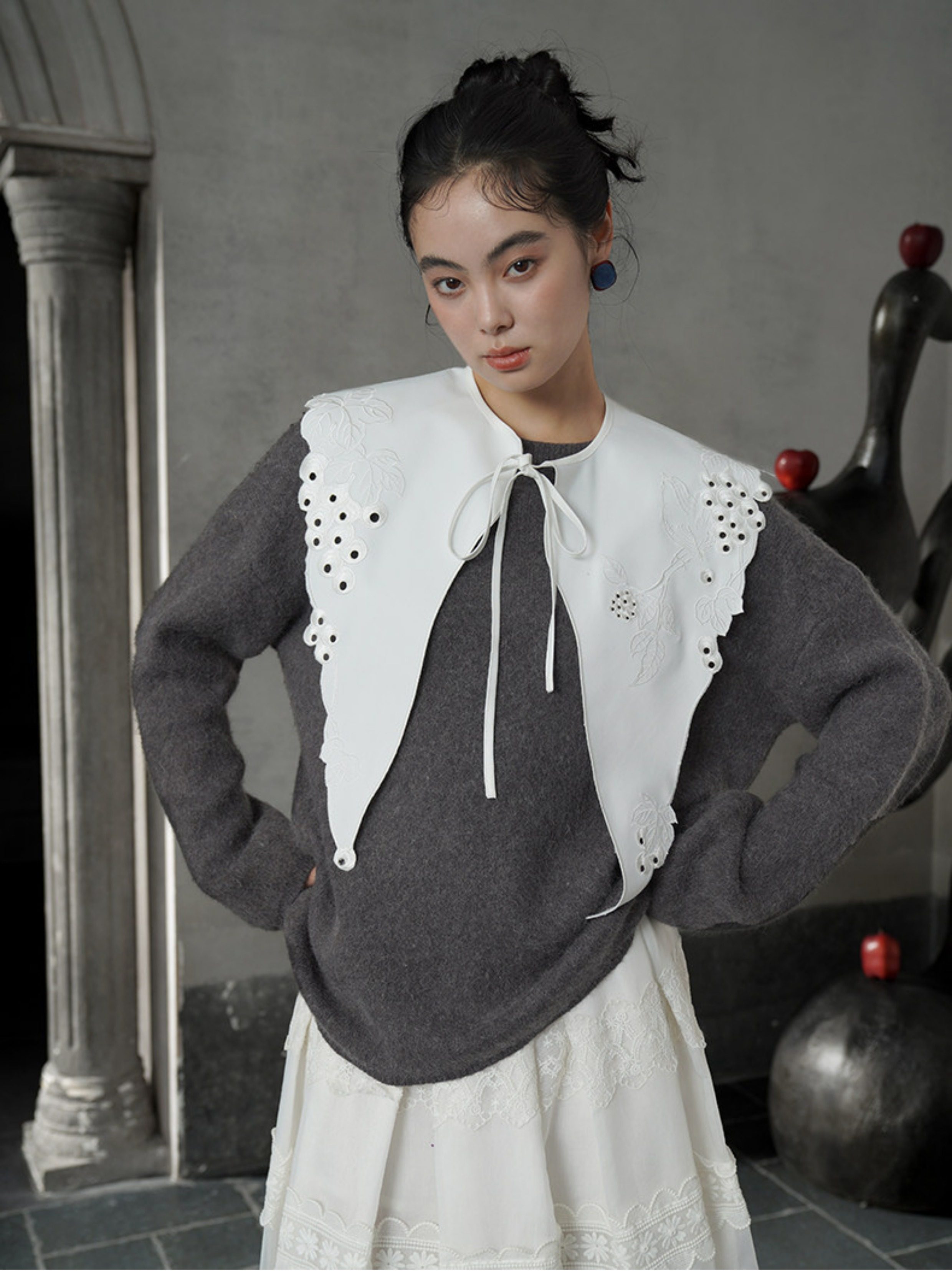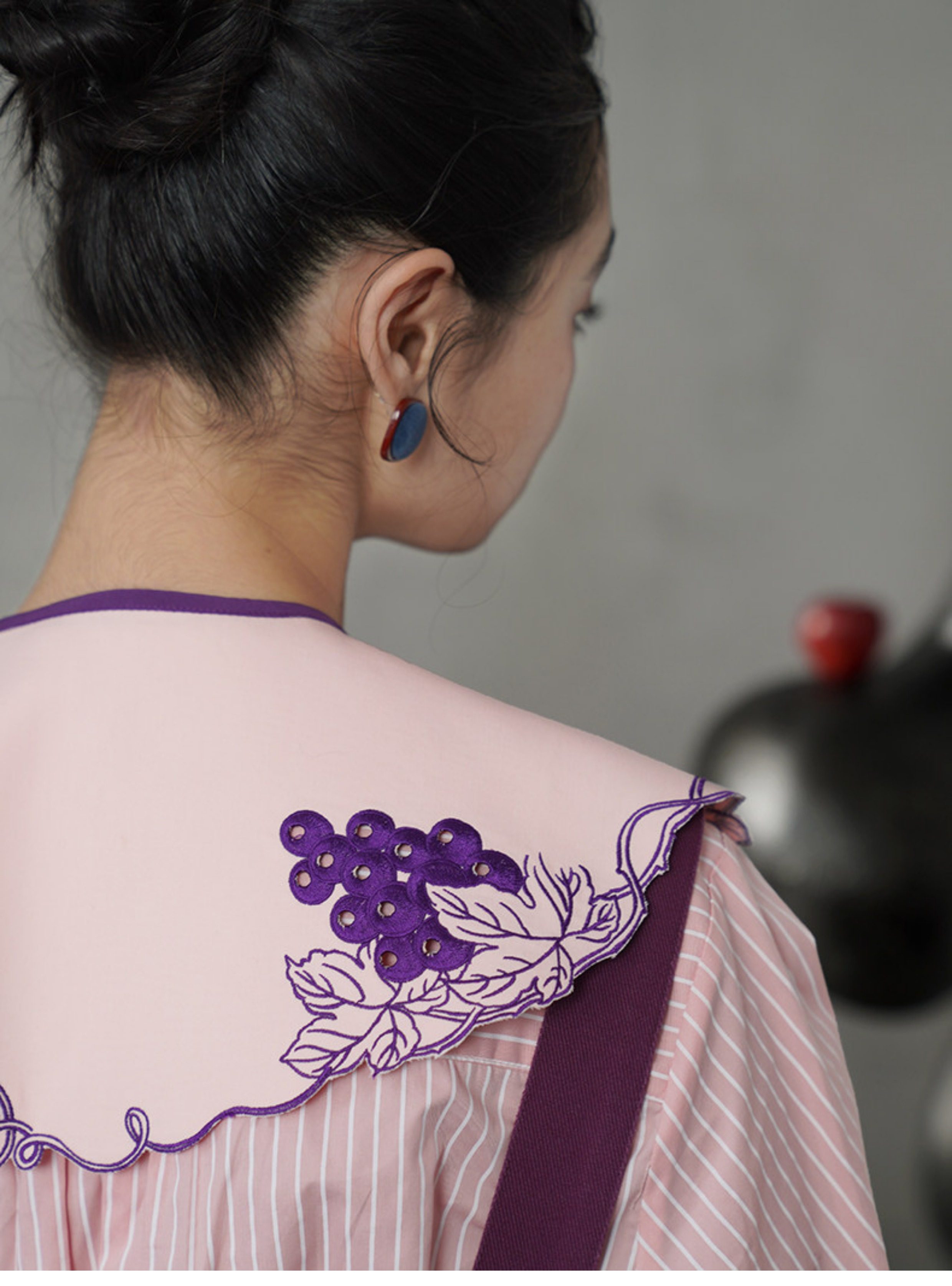 葡萄藤刺繡假領 B4612