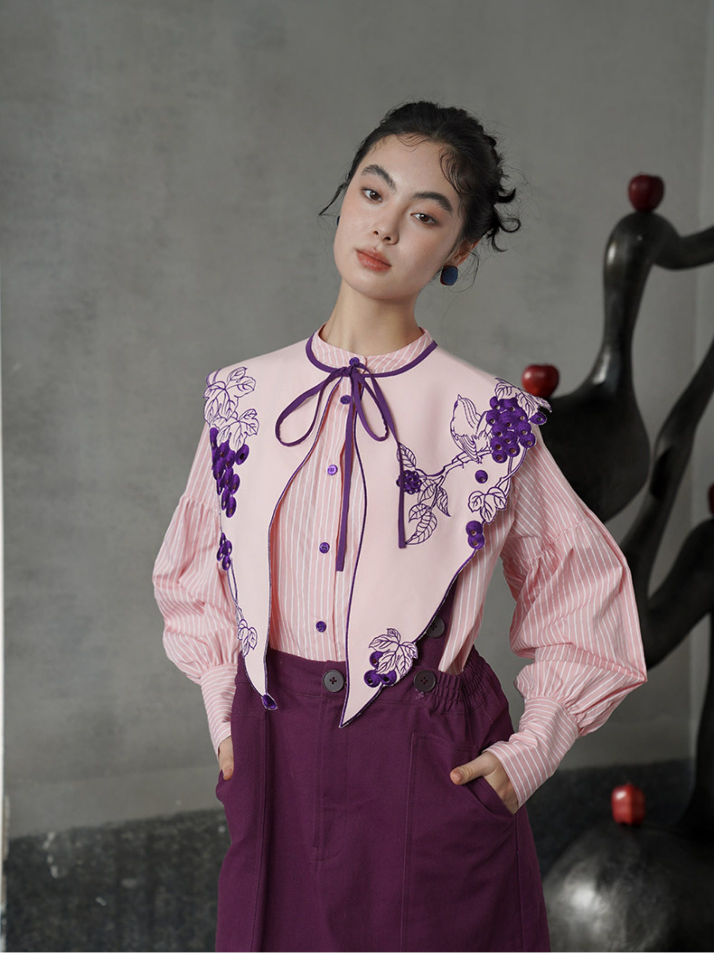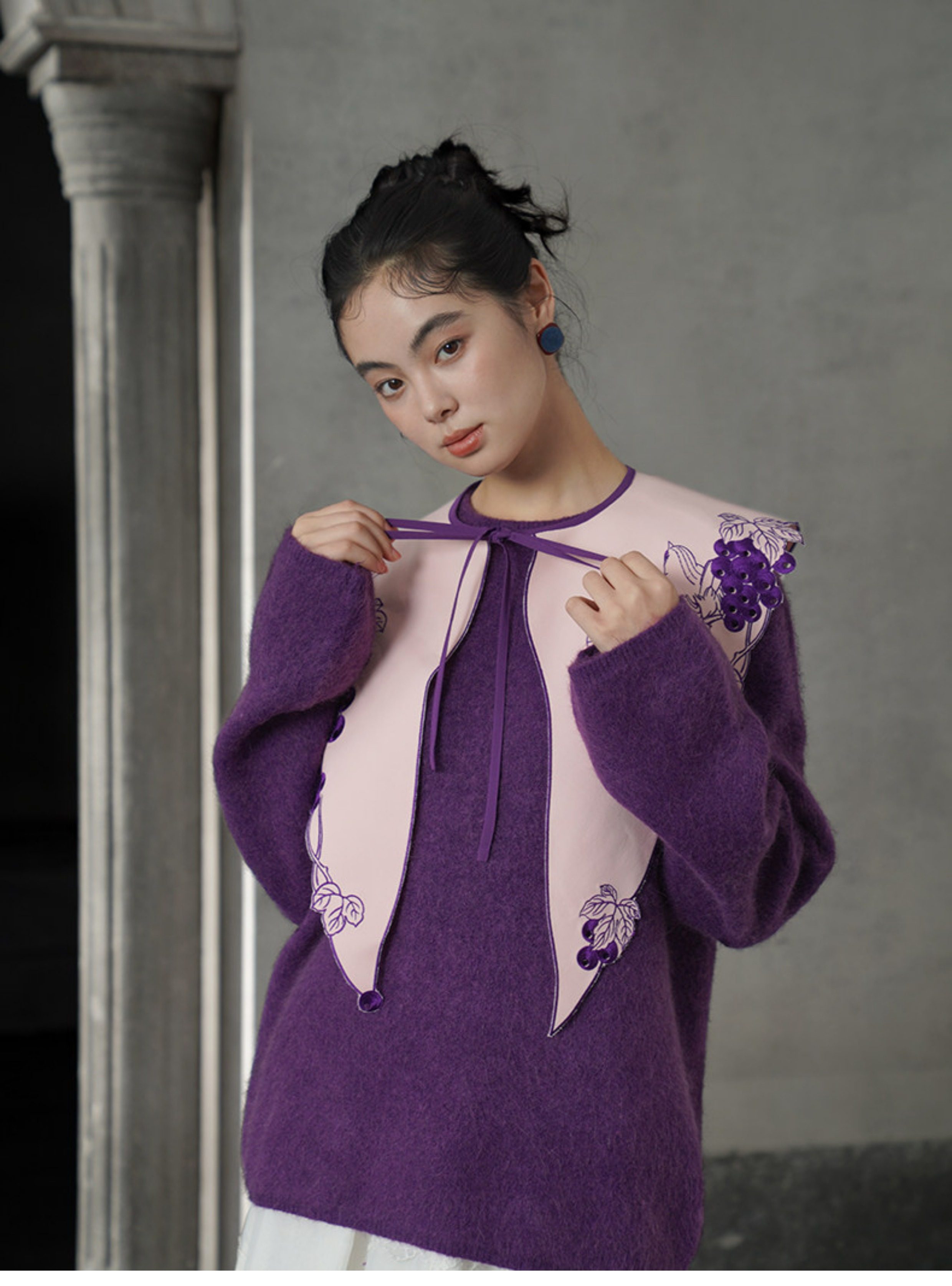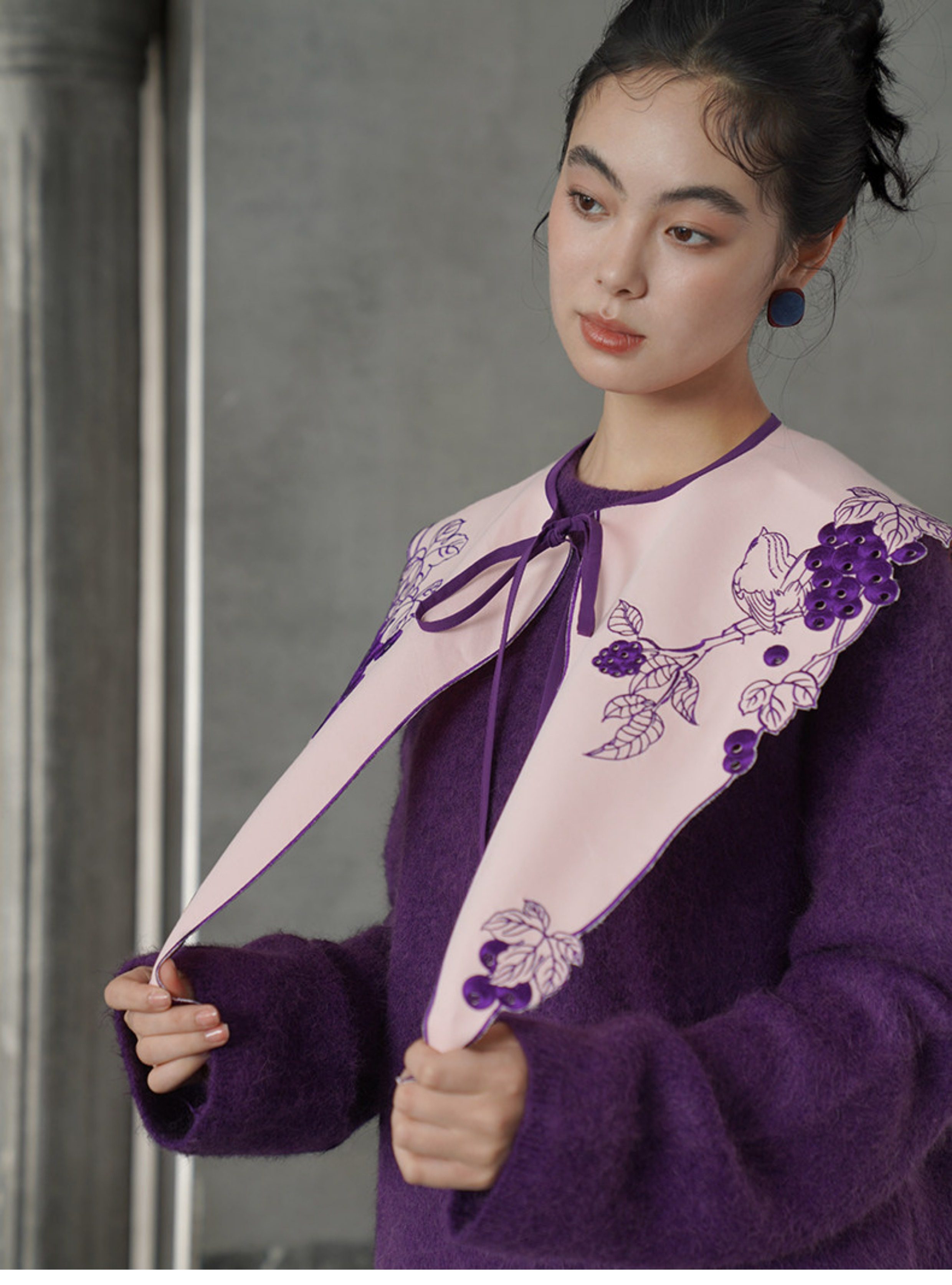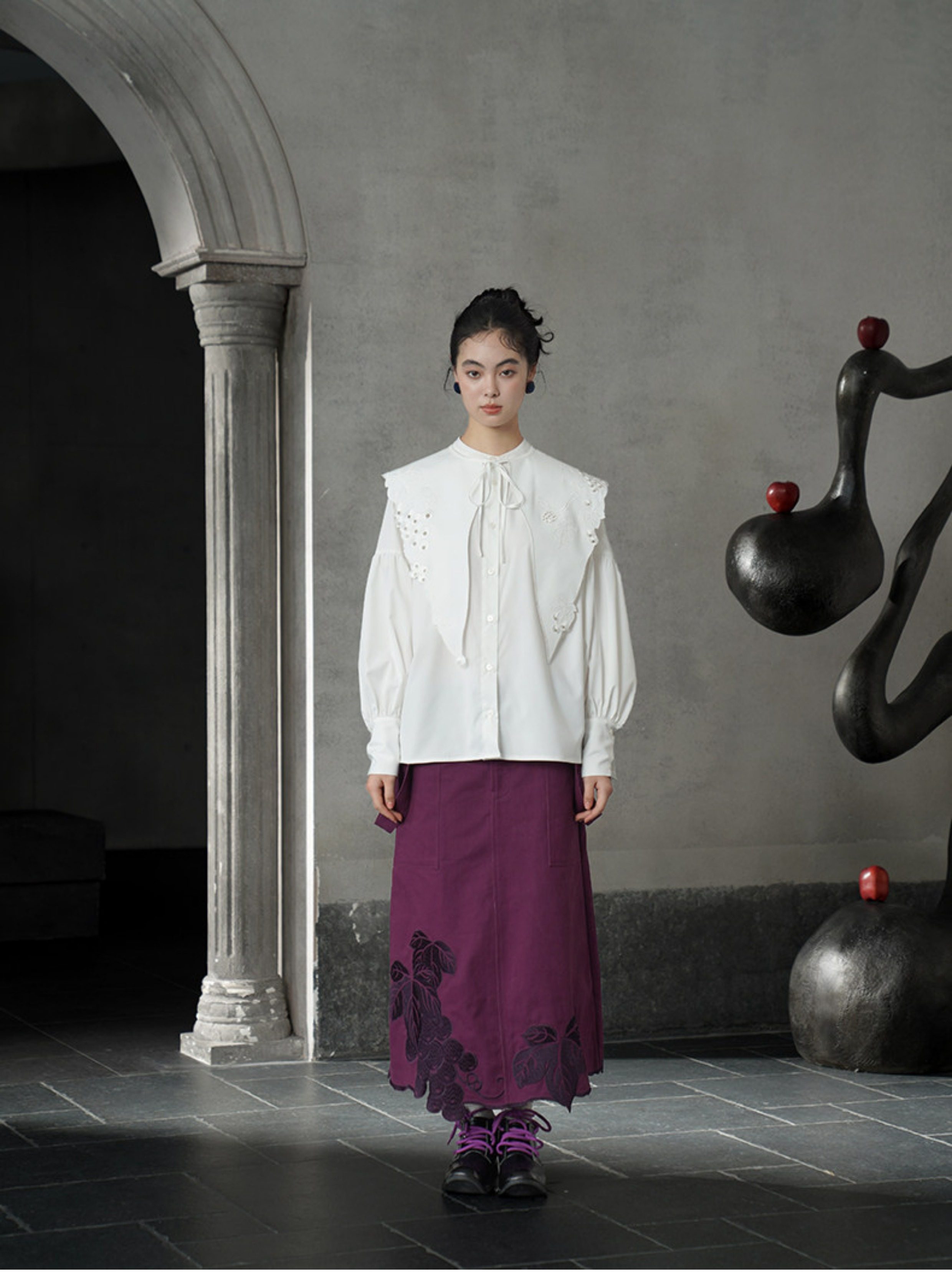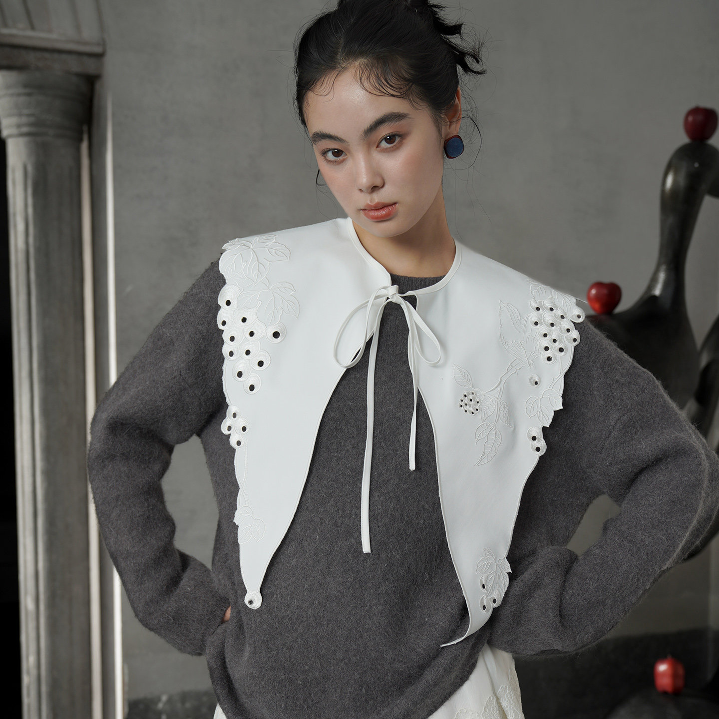 葡萄藤刺繡假領 B4612