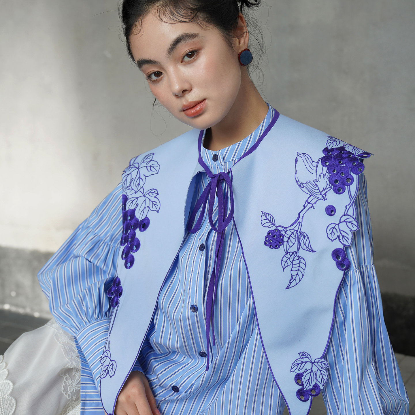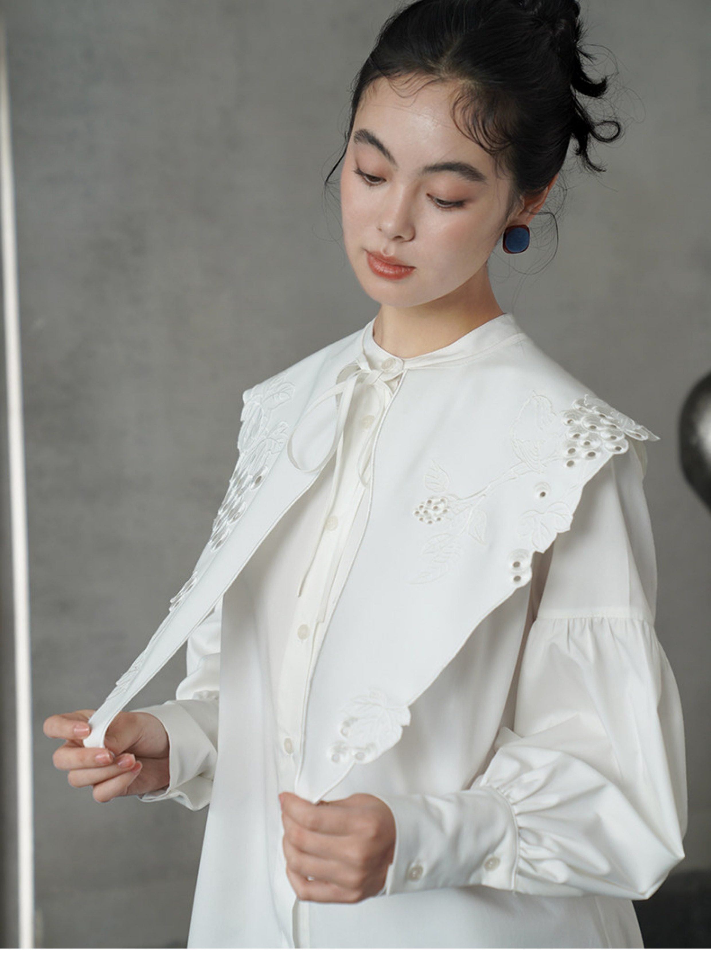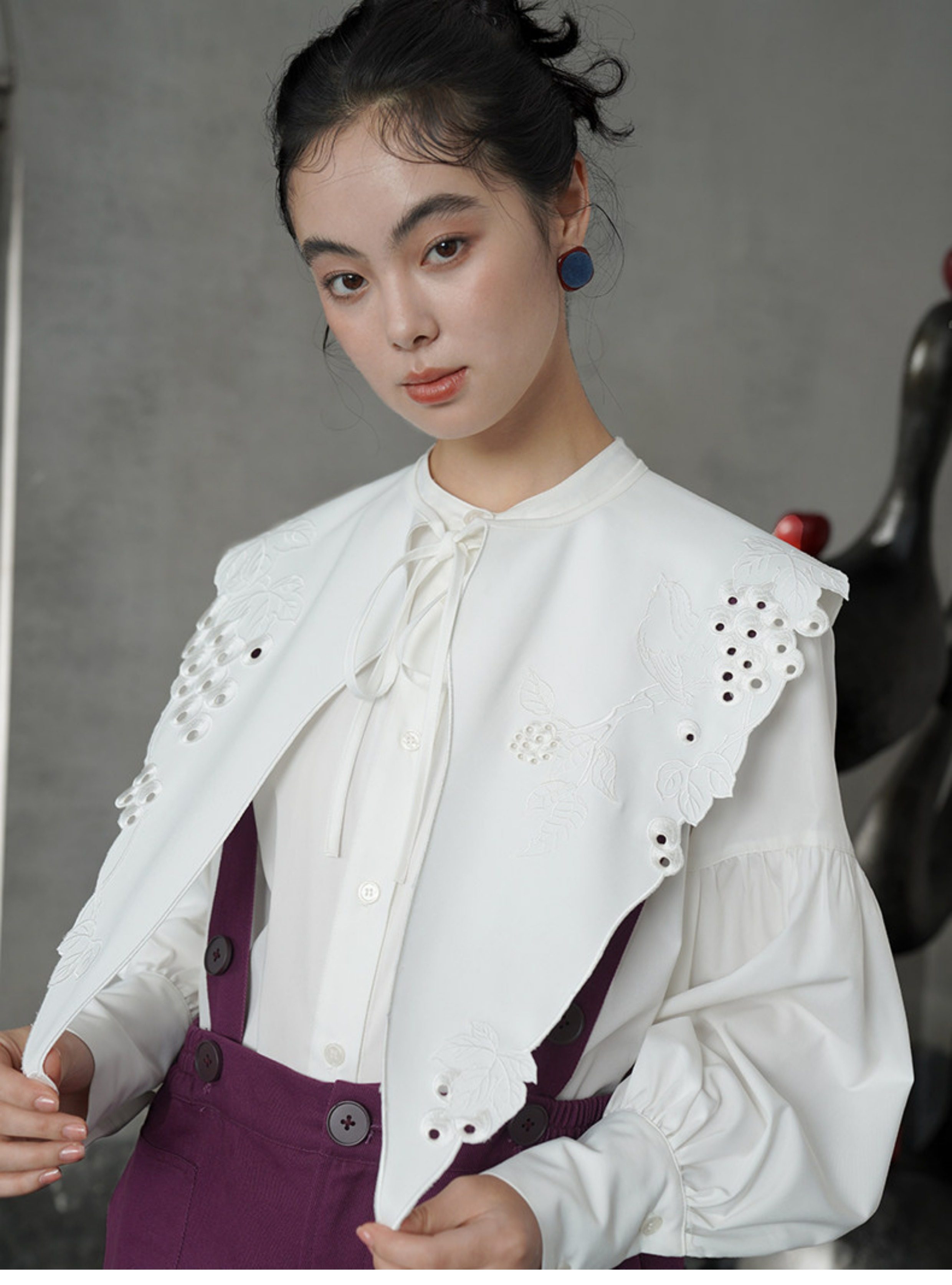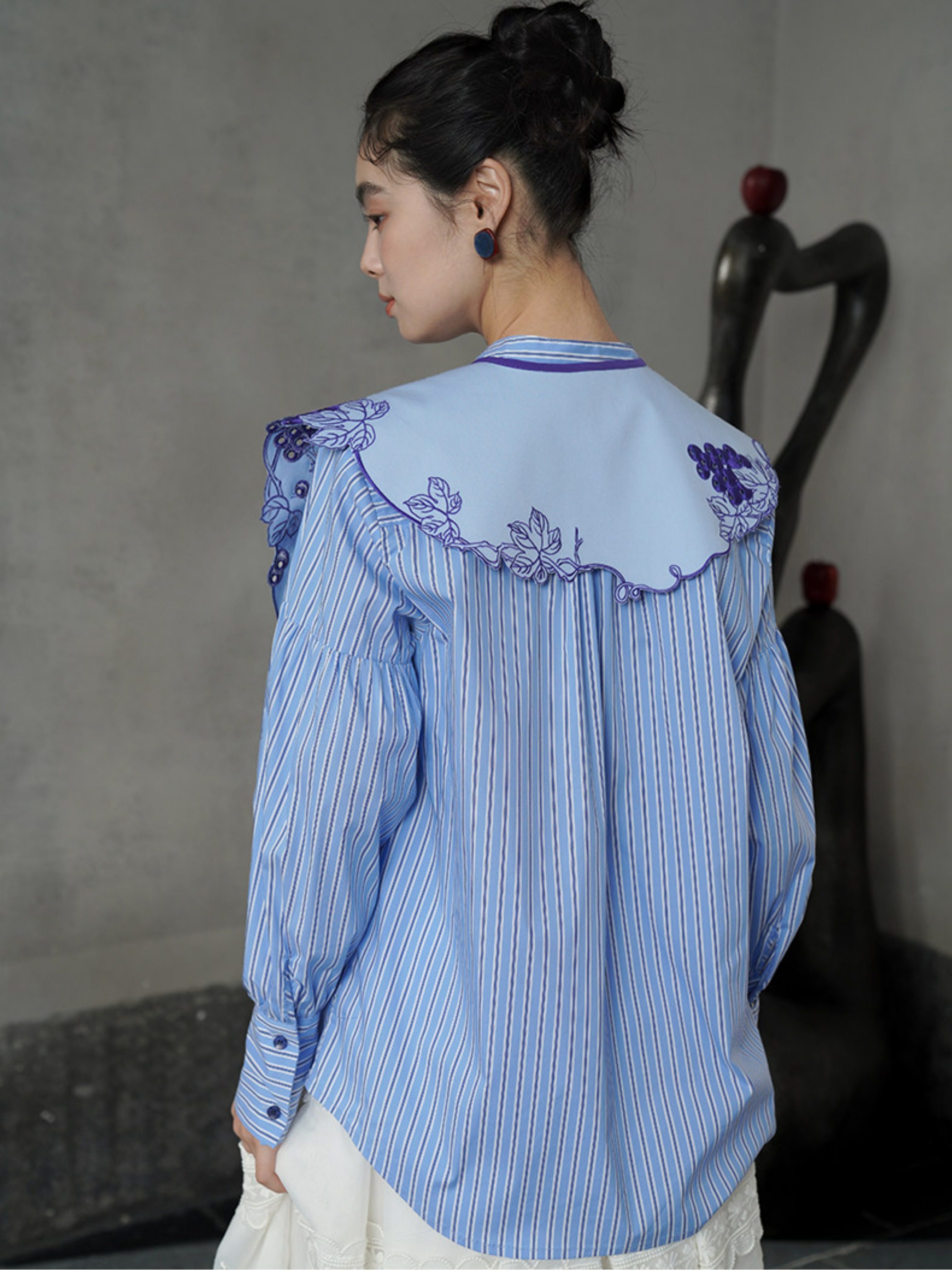 藍色刺繡假領預購商品:請預留15天出貨時間
