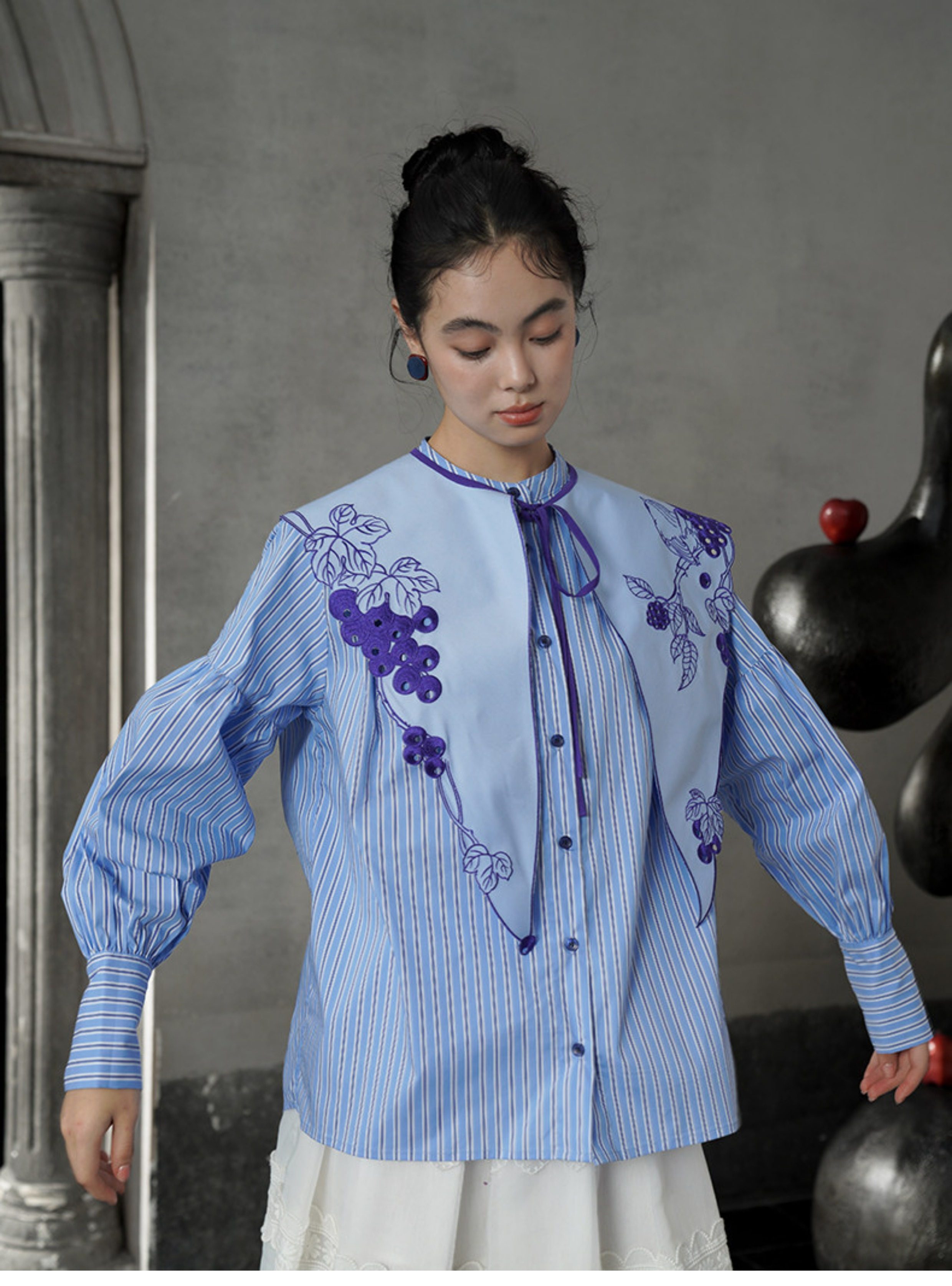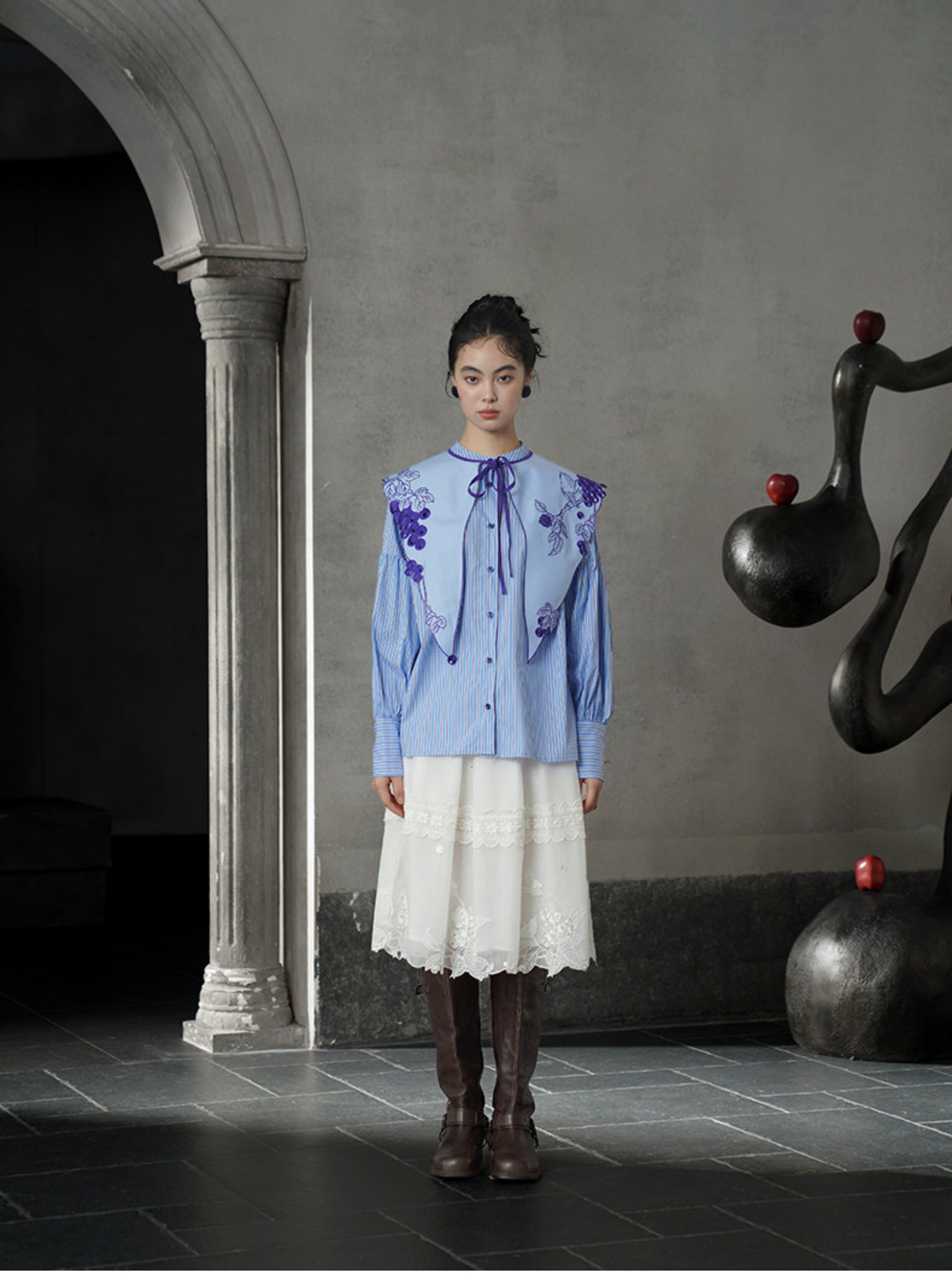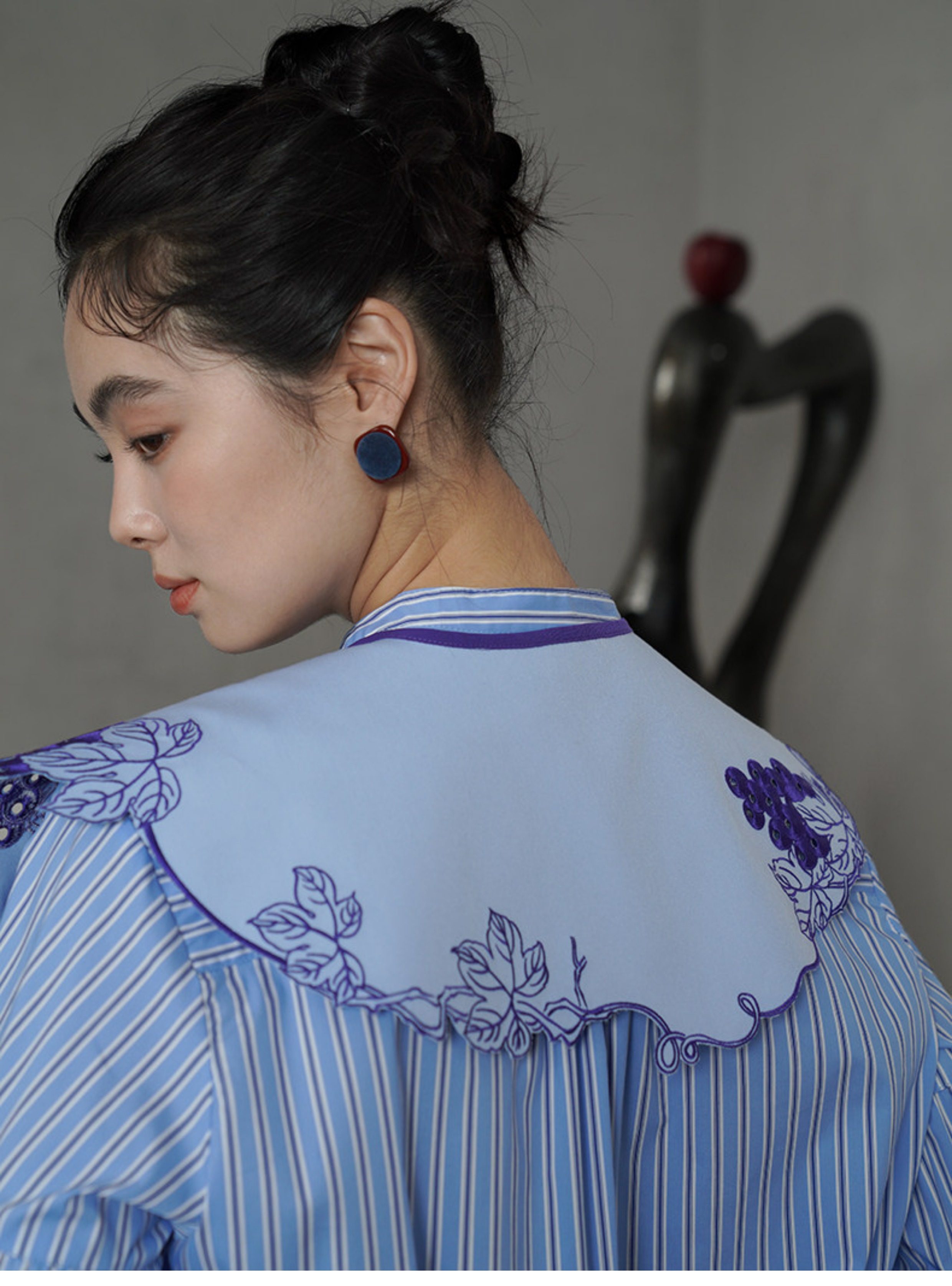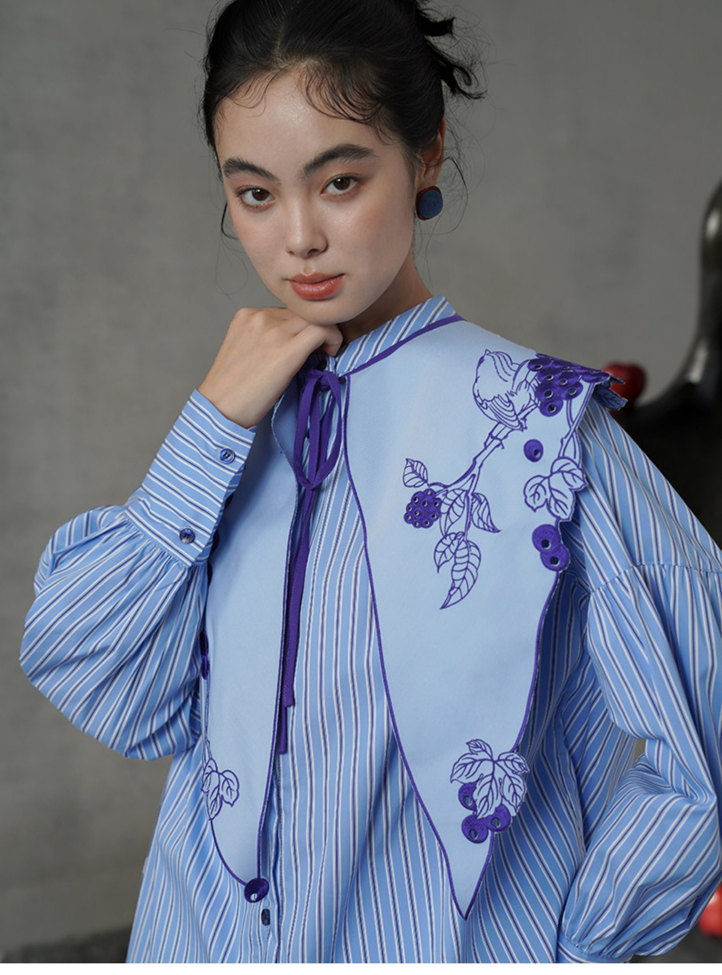 藍色刺繡假領預購商品:請預留15天出貨時間