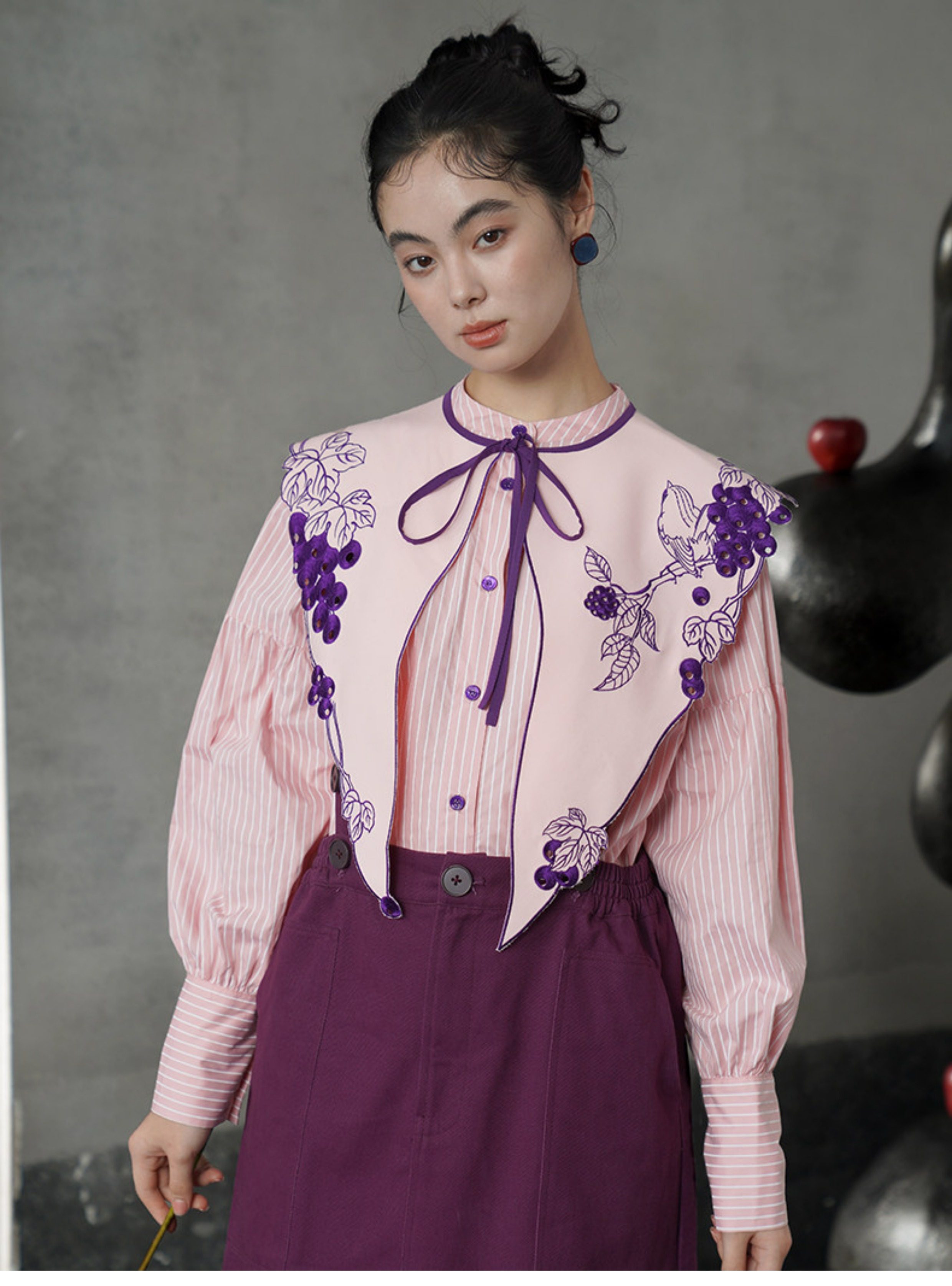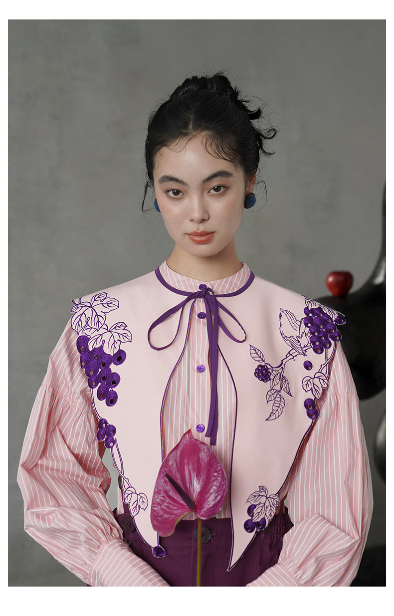 少女粉紅襯衫 - 襯衫 + 葡萄紫 B4614
